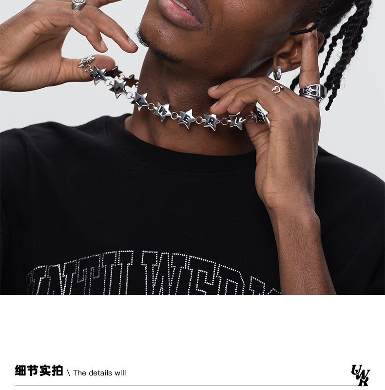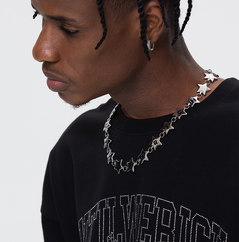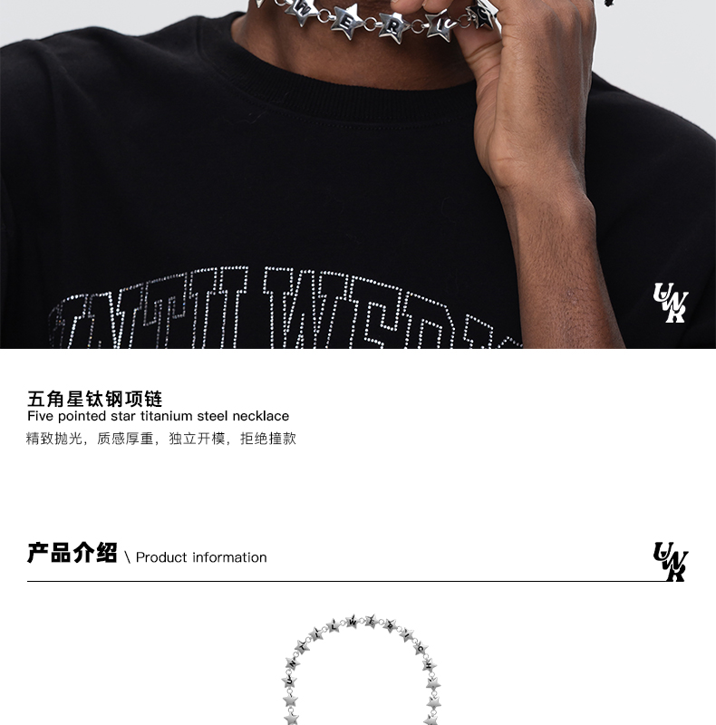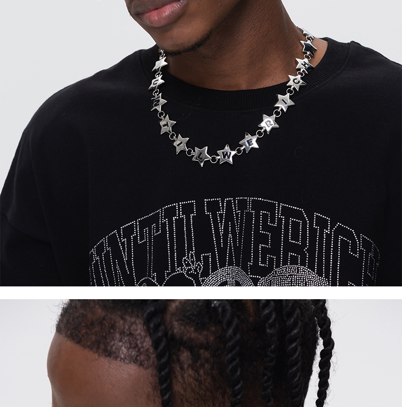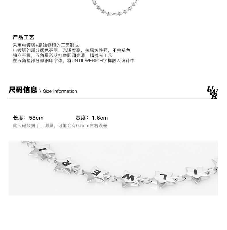 UNTILWERICH Five Star Necklace Letter Titanium Steel Necklace