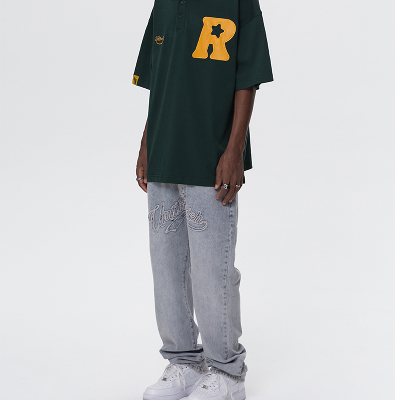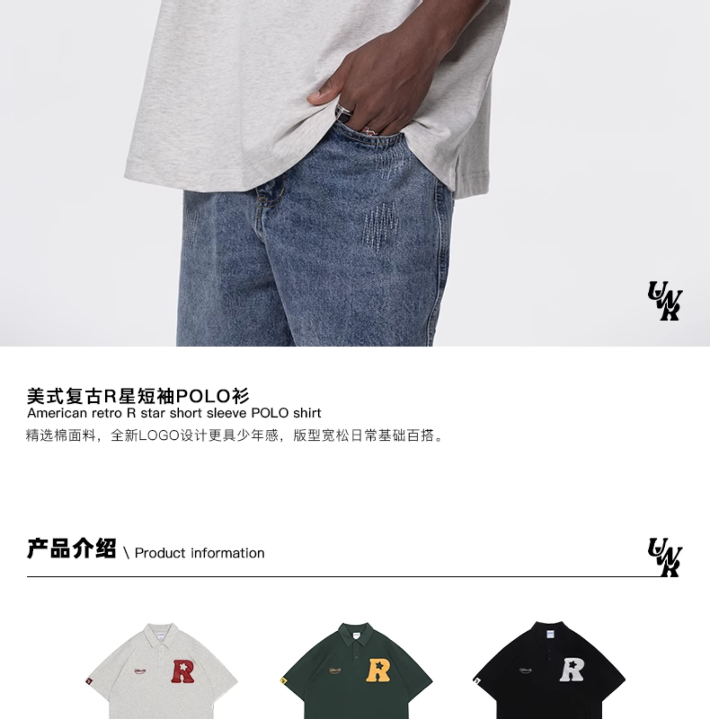 UNTILWERICH Vintage Polo Shirt Lapel Embroidered Tee