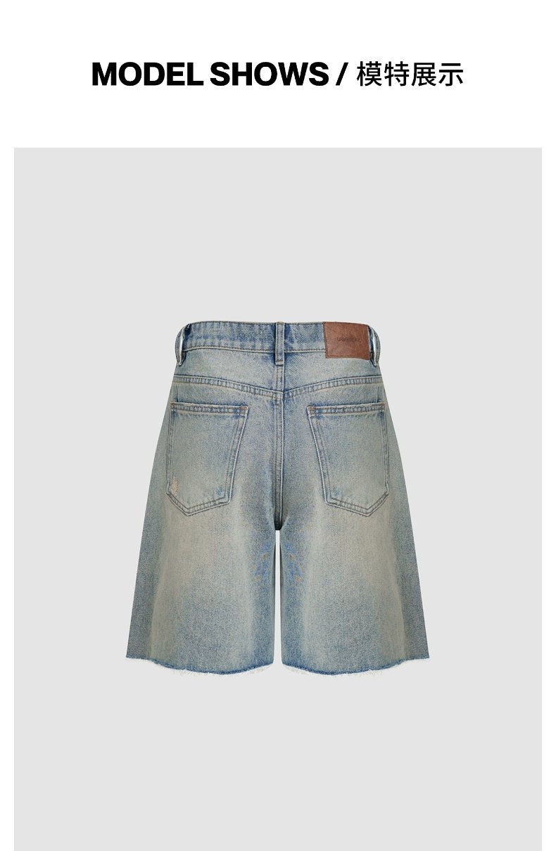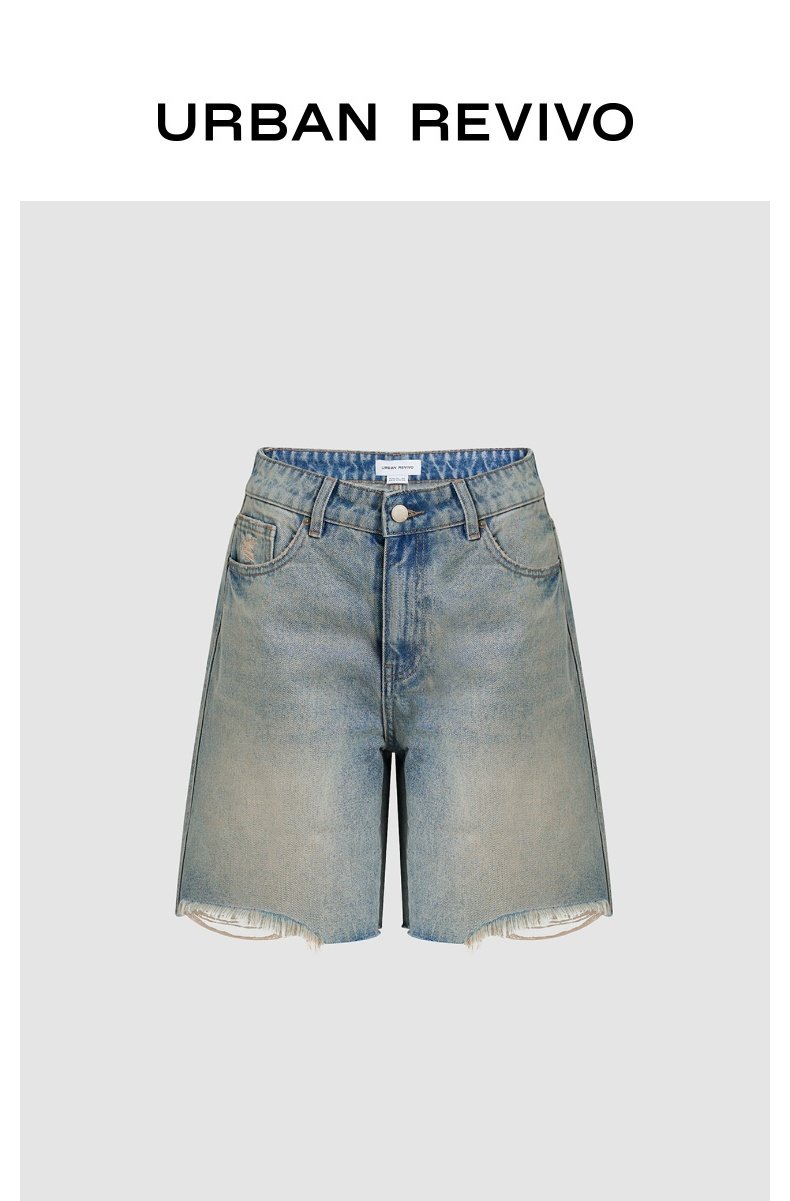 URBAN REVIVO Ancient Washed Beard Bermuda Denim Shorts