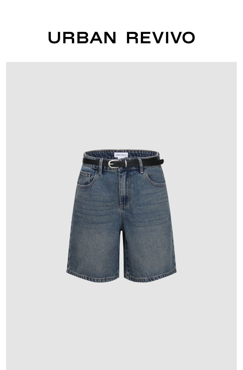 URBAN REVIVO Cat Whisker Washed Belt Denim Shorts