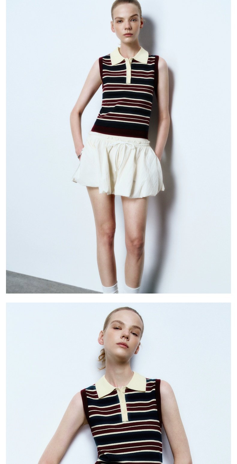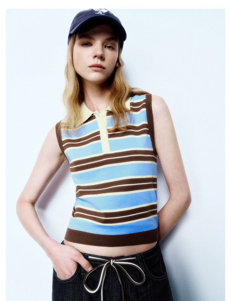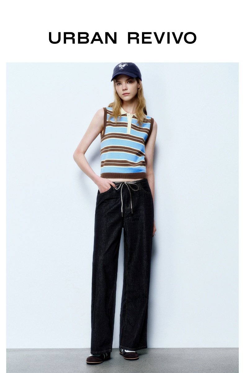URBAN REVIVO College Contrast Striped Button Sleeveless Knitted Sweater