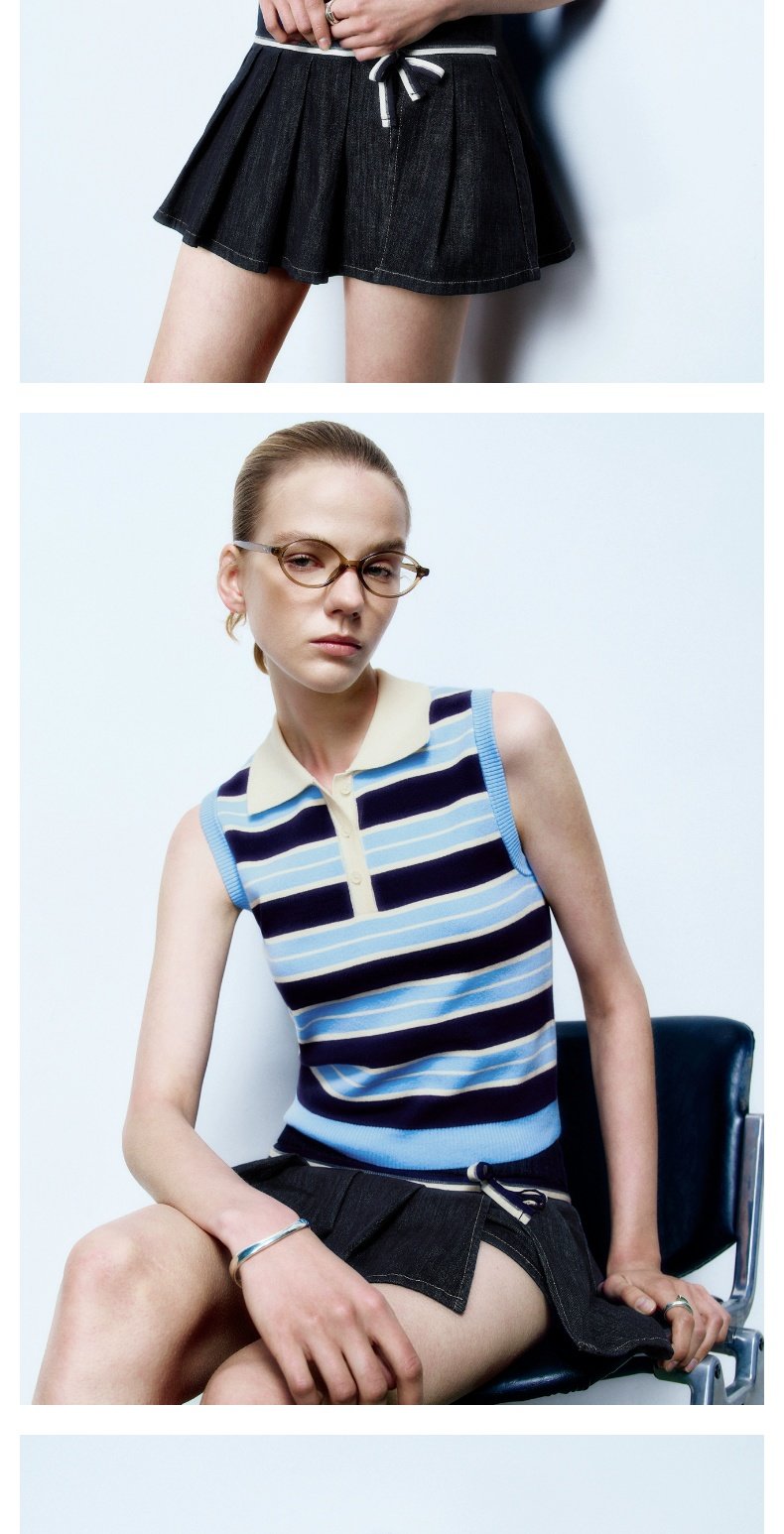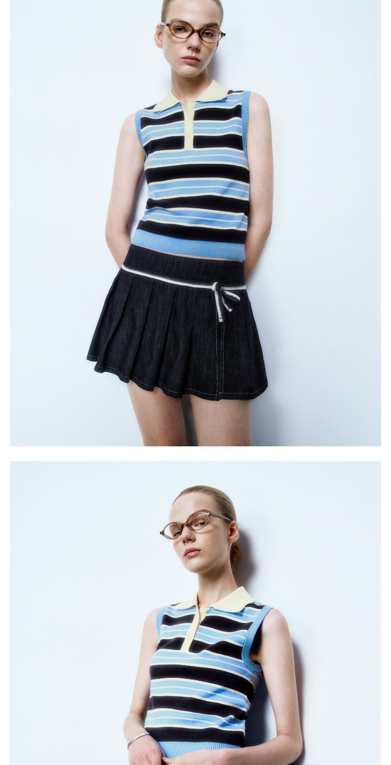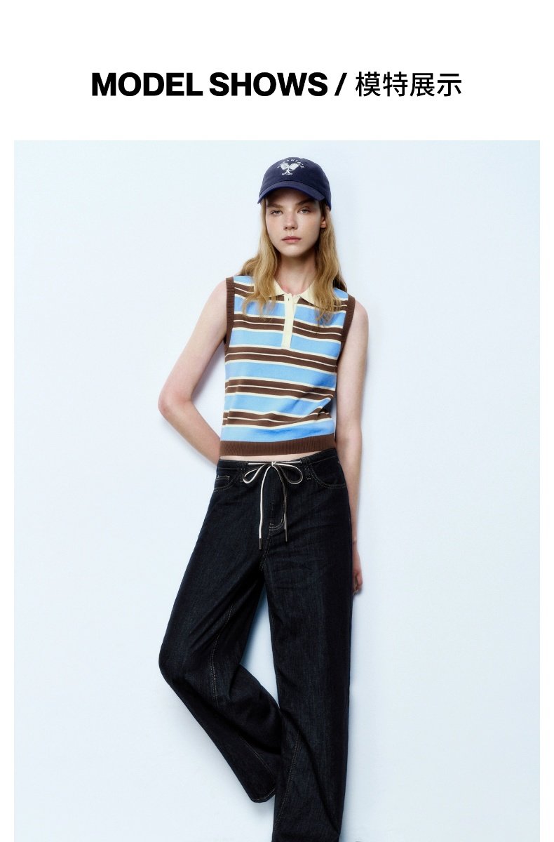 URBAN REVIVO College Contrast Striped Button Sleeveless Knitted Sweater