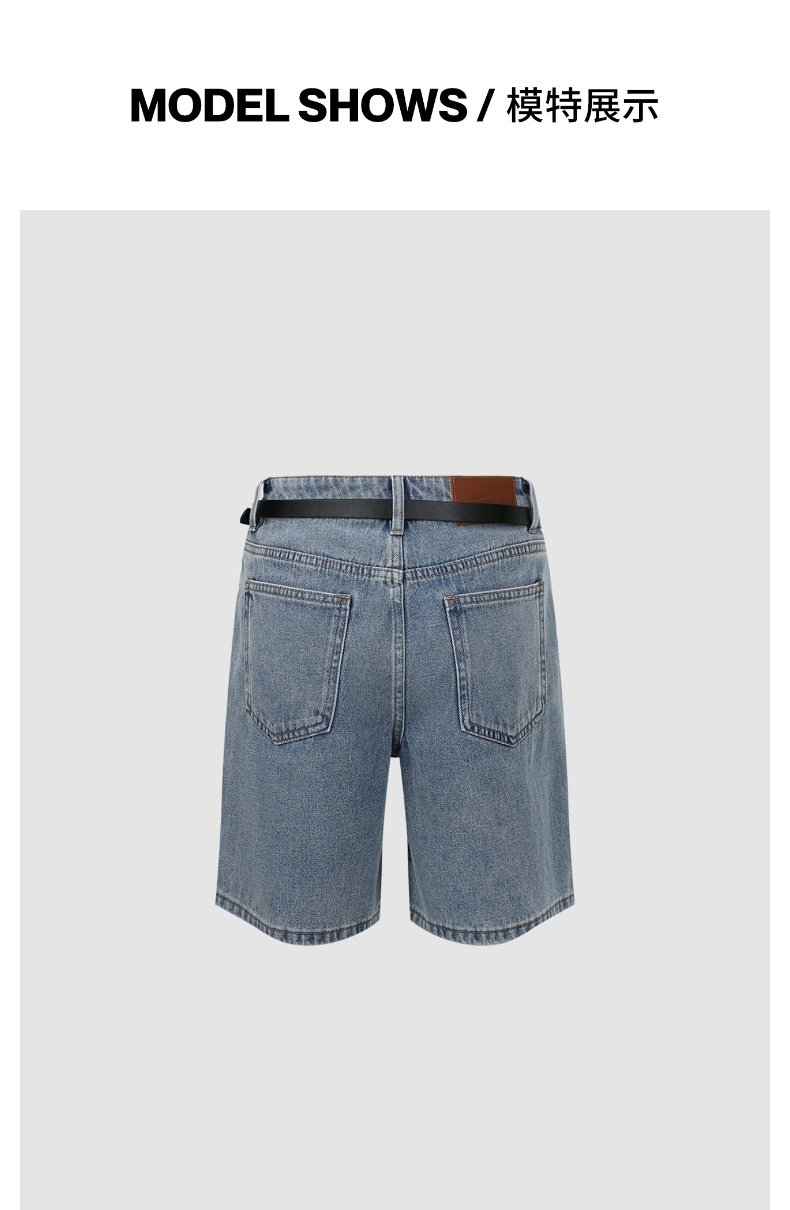 URBAN REVIVO Retro Cat Whisker Washed Belt Denim Shorts
