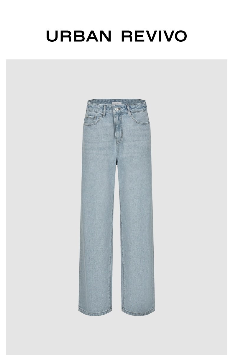 URBAN REVIVO Wave Hipster Retro Washed Pussy Beard Wide Leg Jeans