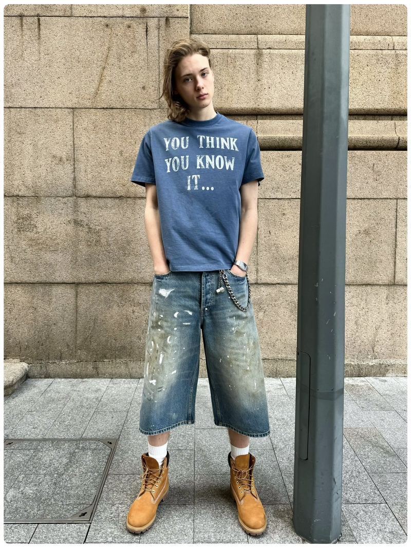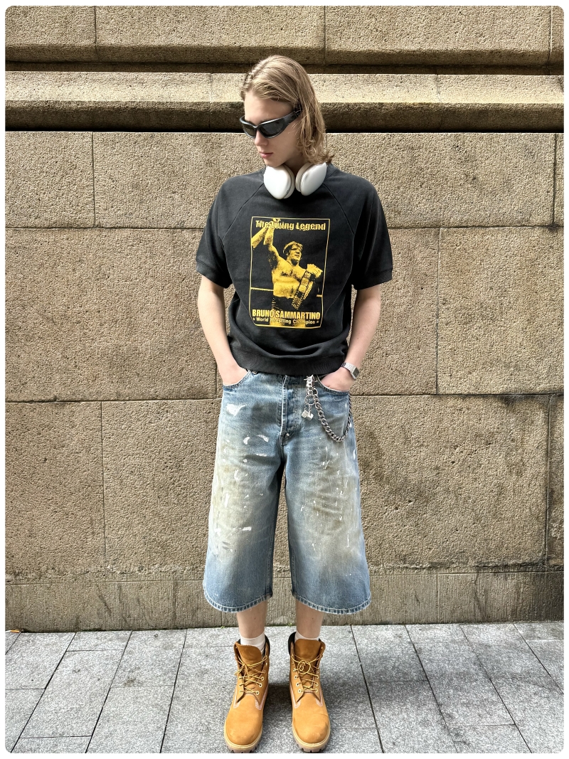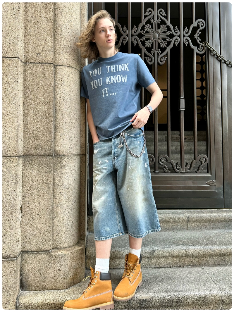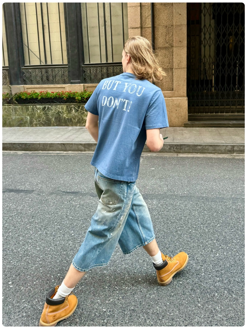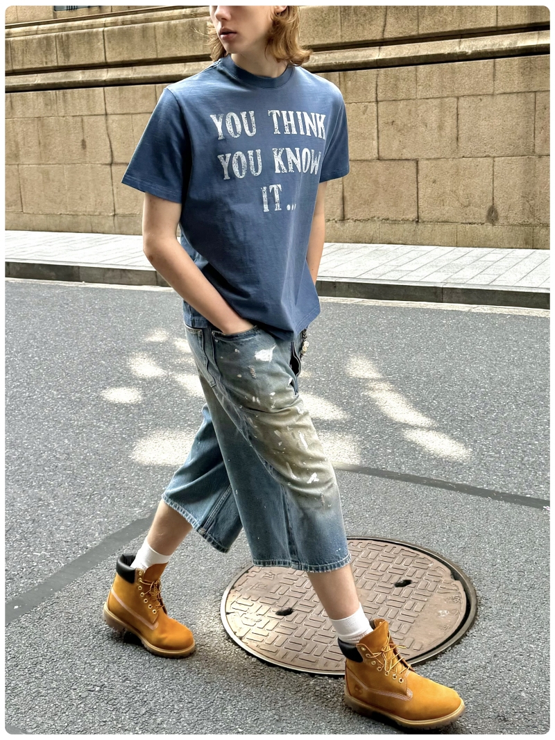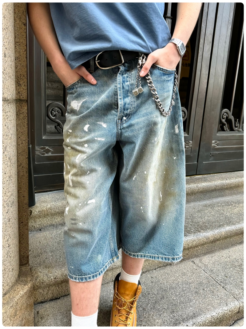 VLABMADE Old Ink Splashing A-shaped Wide-leg Loose Denim Pants