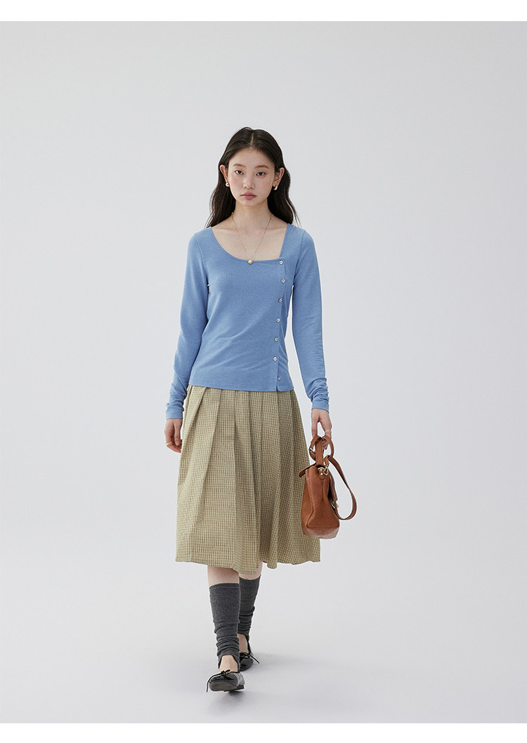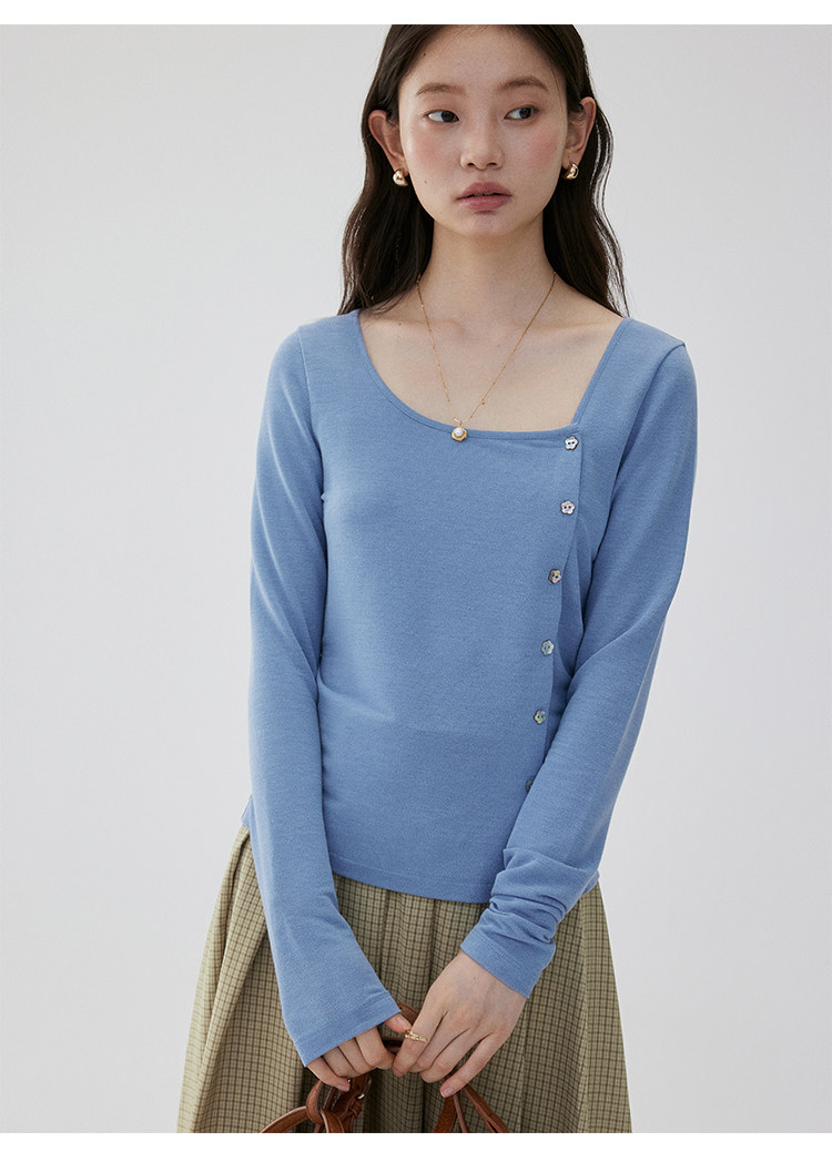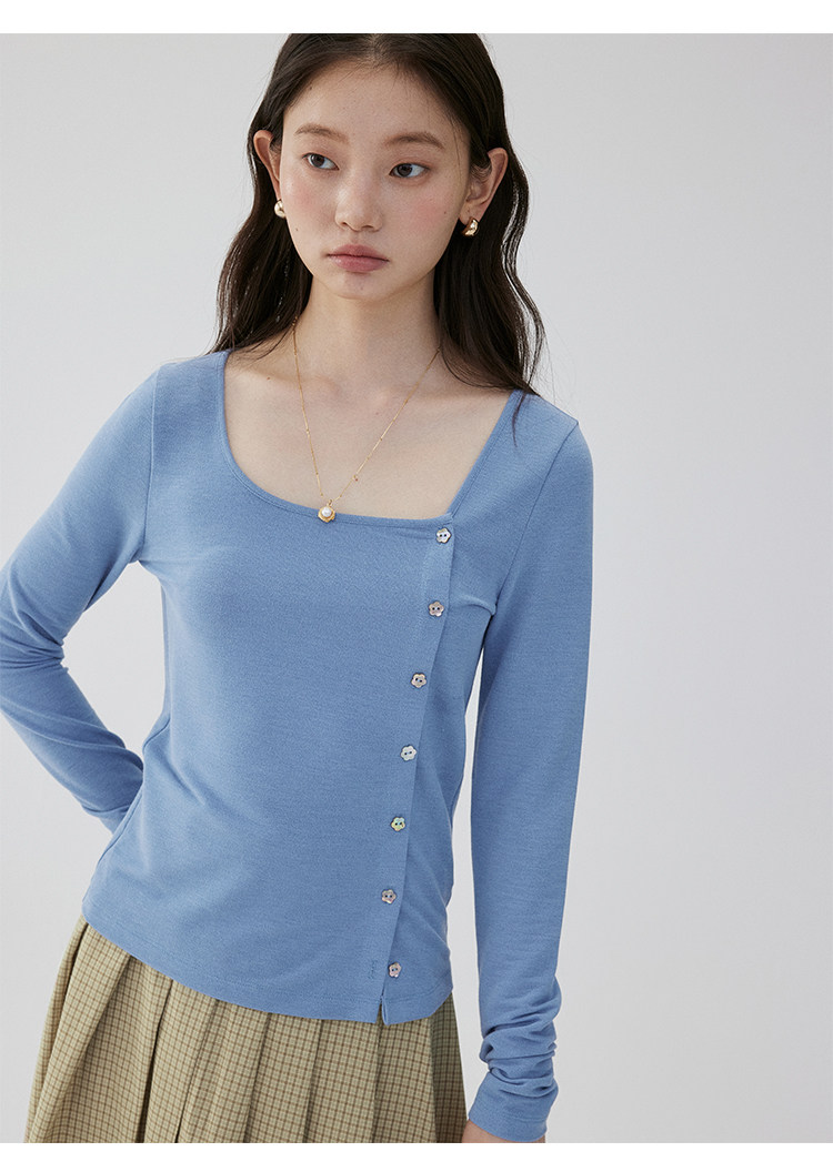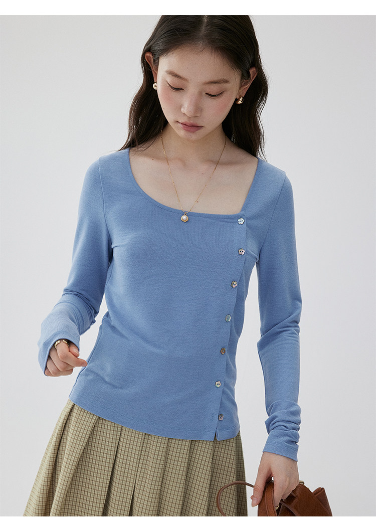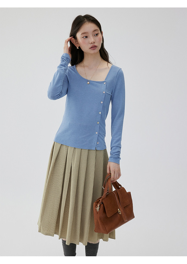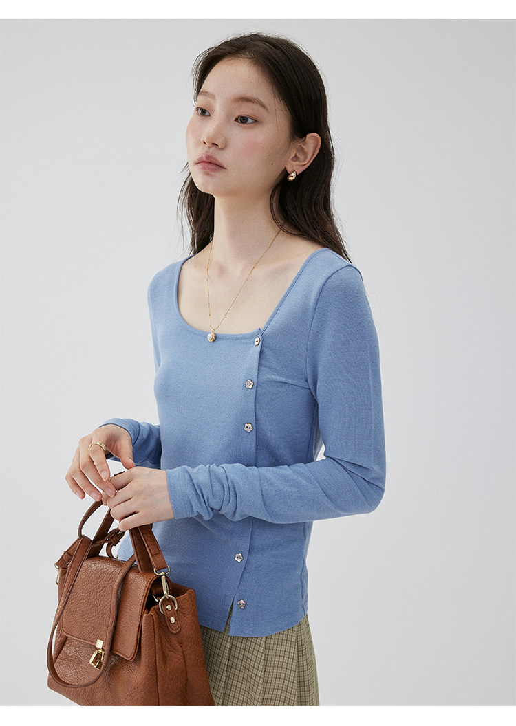 VOOE Versatile Casual and Thin Diagonal Buckle Long Sleeve