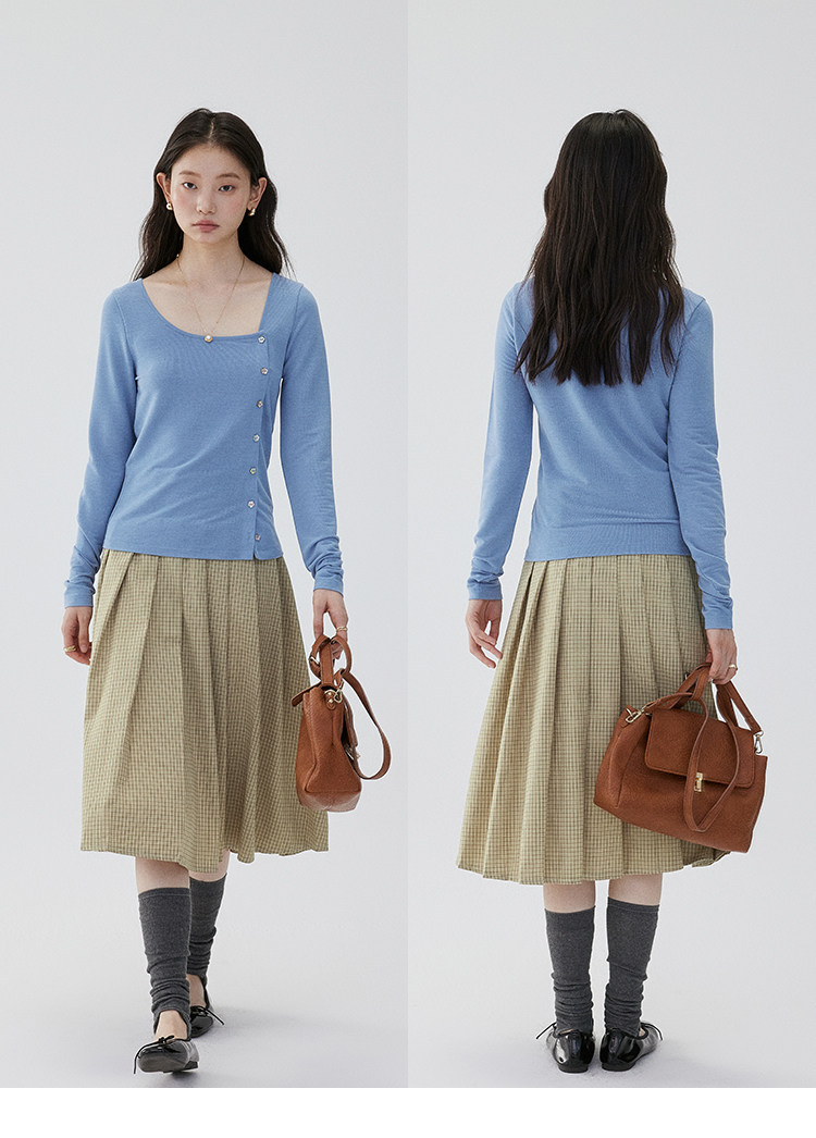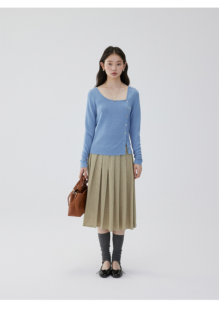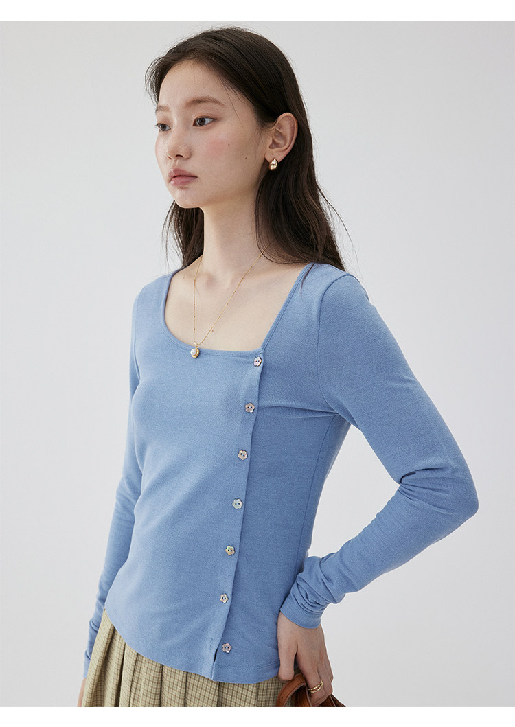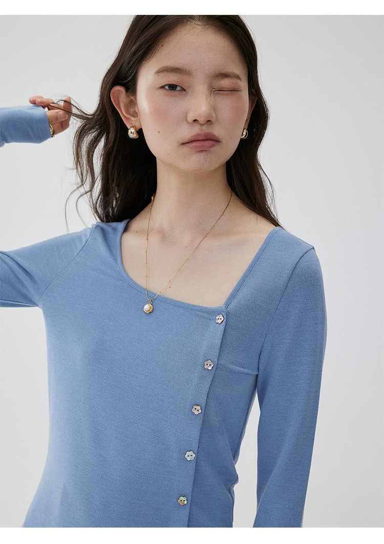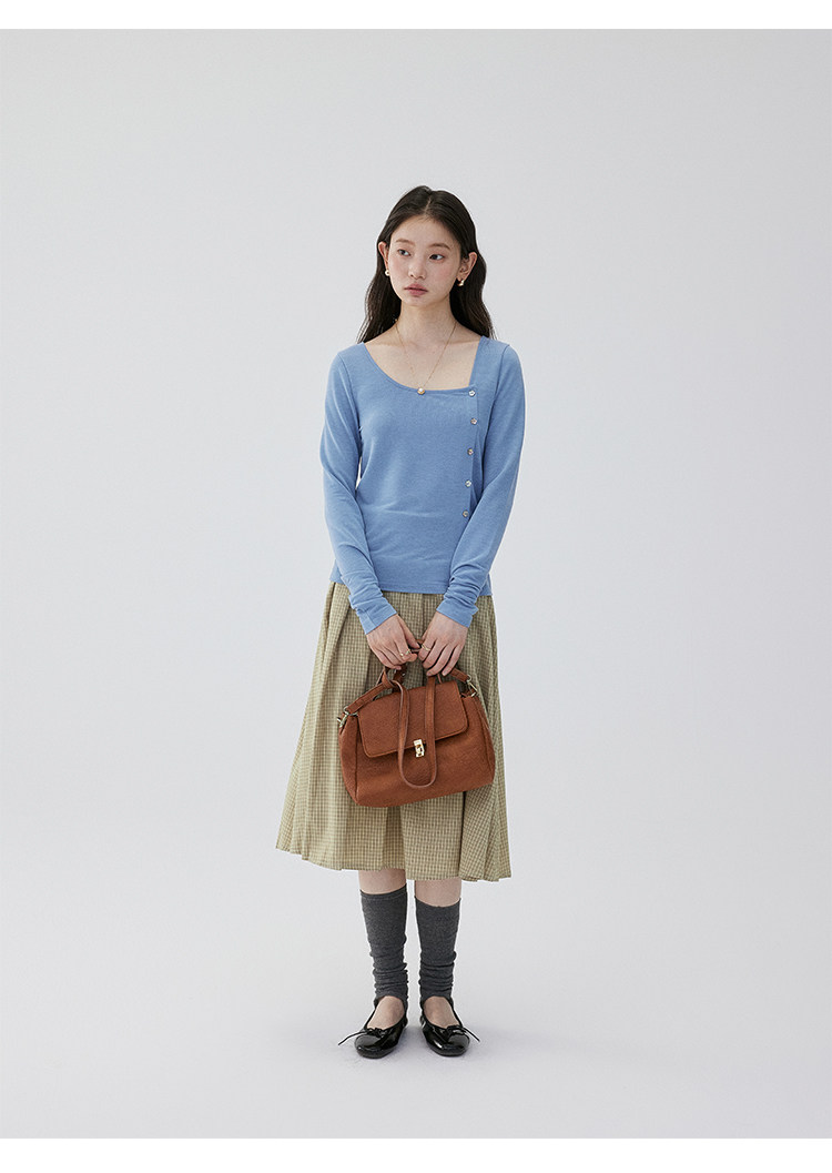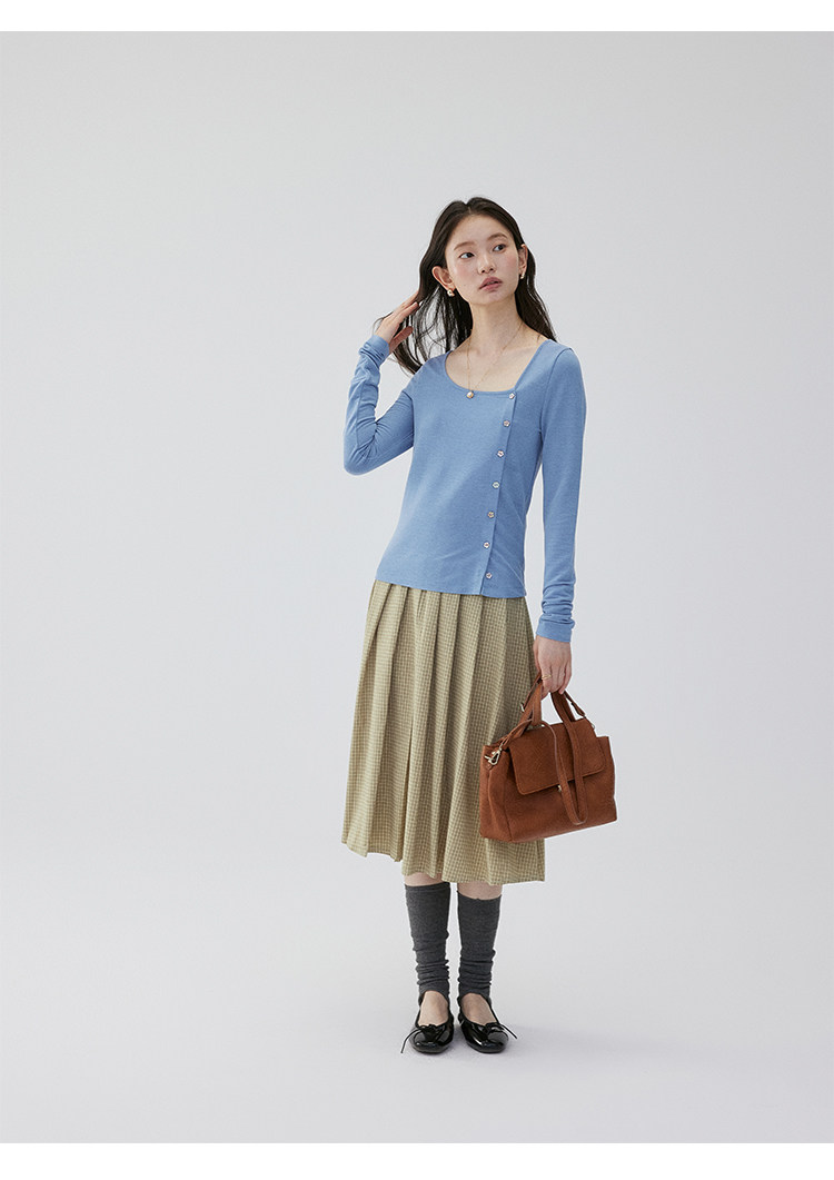VOOE Versatile Casual and Thin Diagonal Buckle Long Sleeve