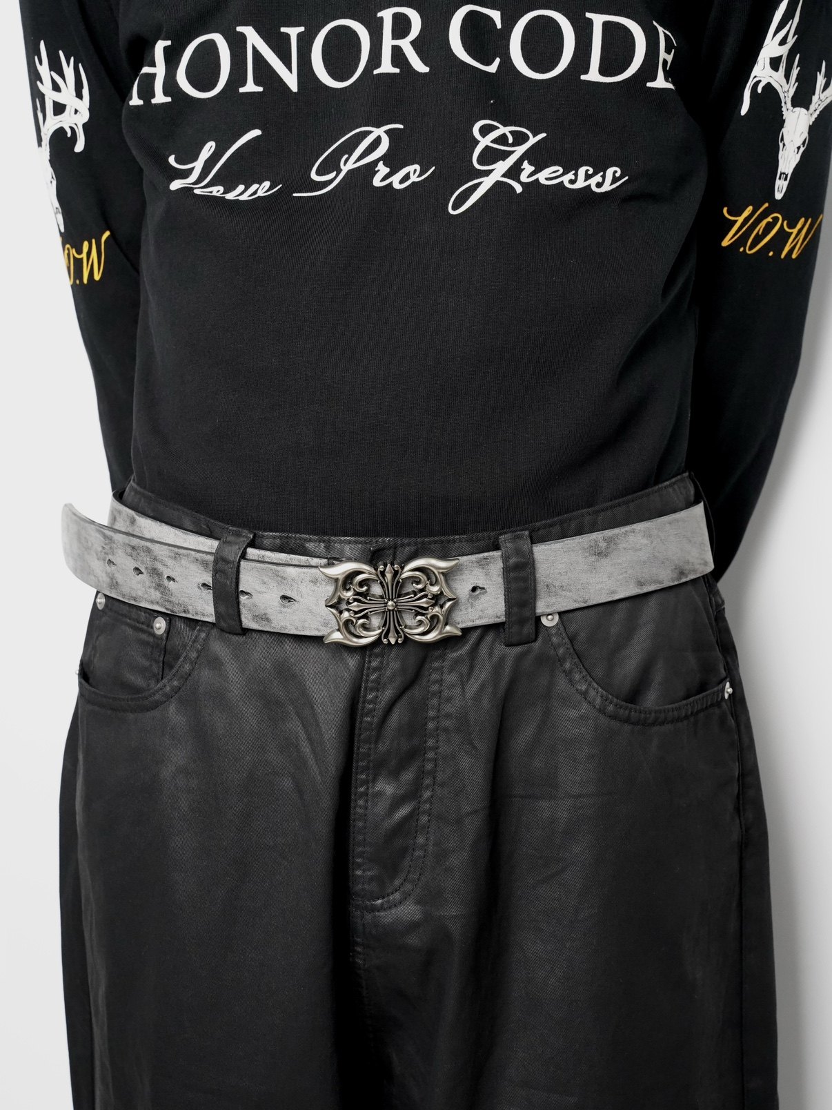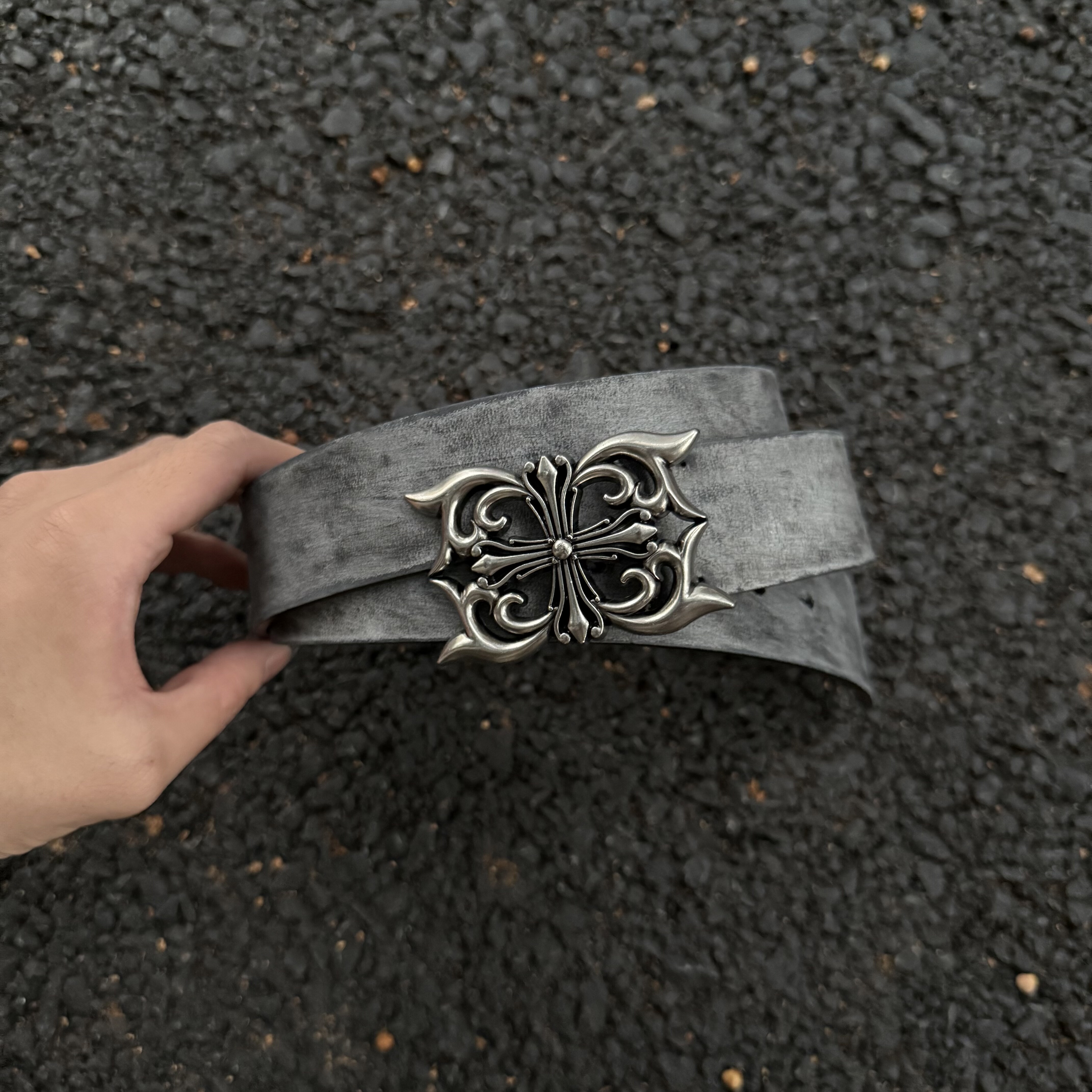 VOWPROGRESS Butterfly Carved Cowhide Belt