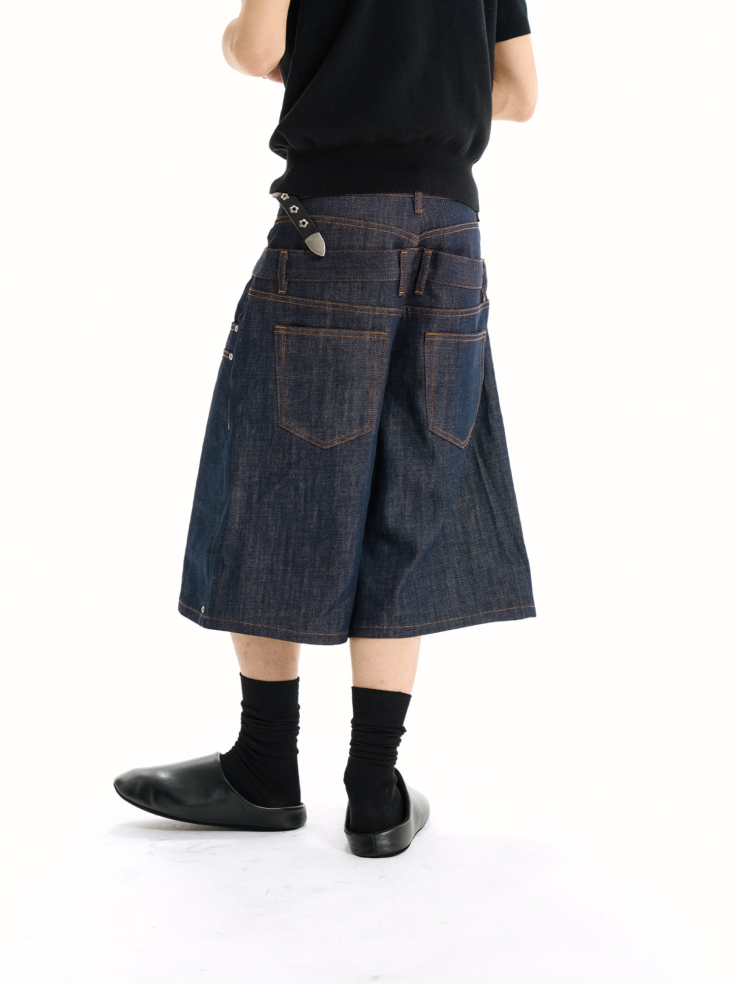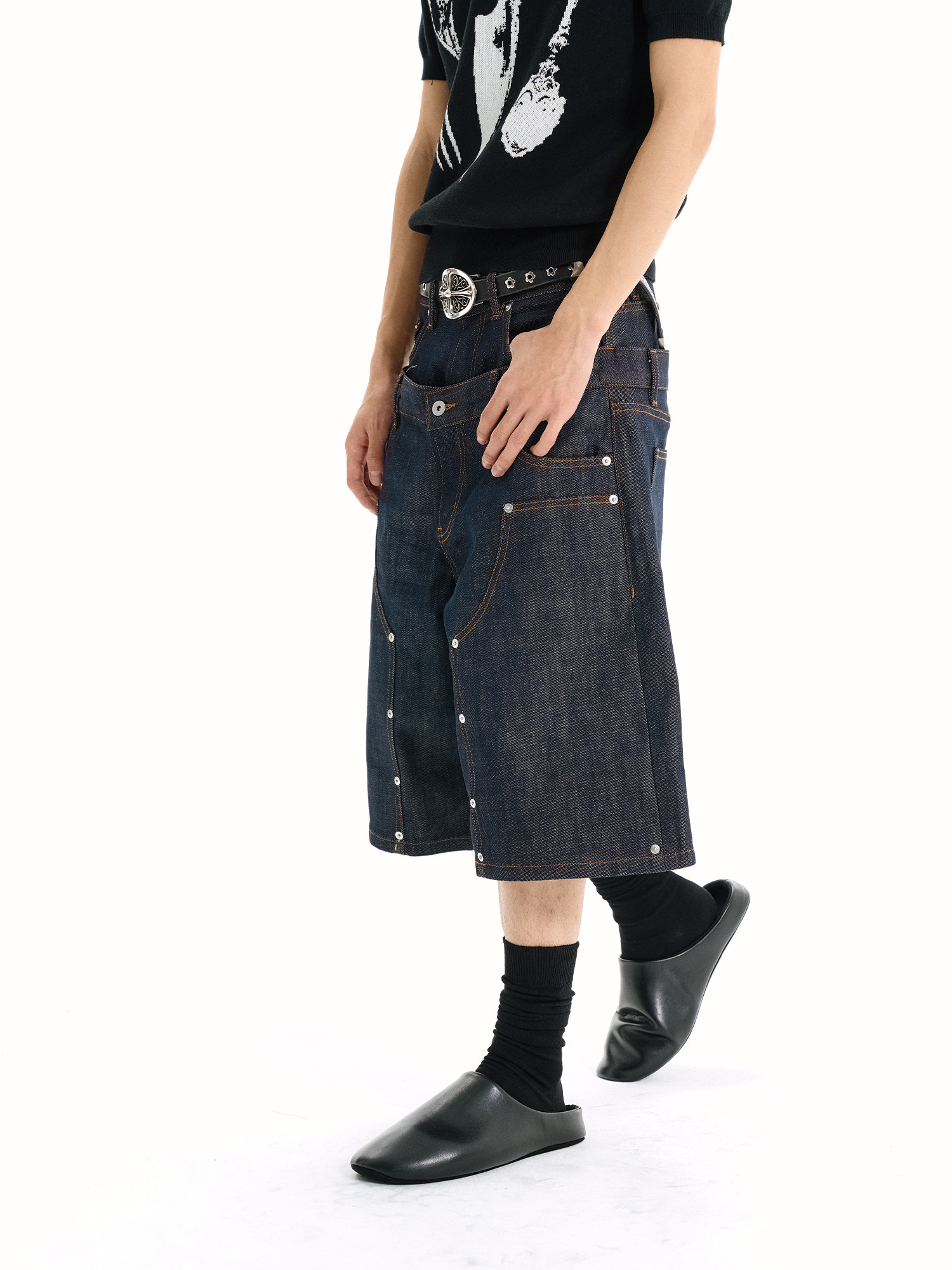 WANNA LAB Original Denim Logging A Word Six or Seven Point Short Trousers
