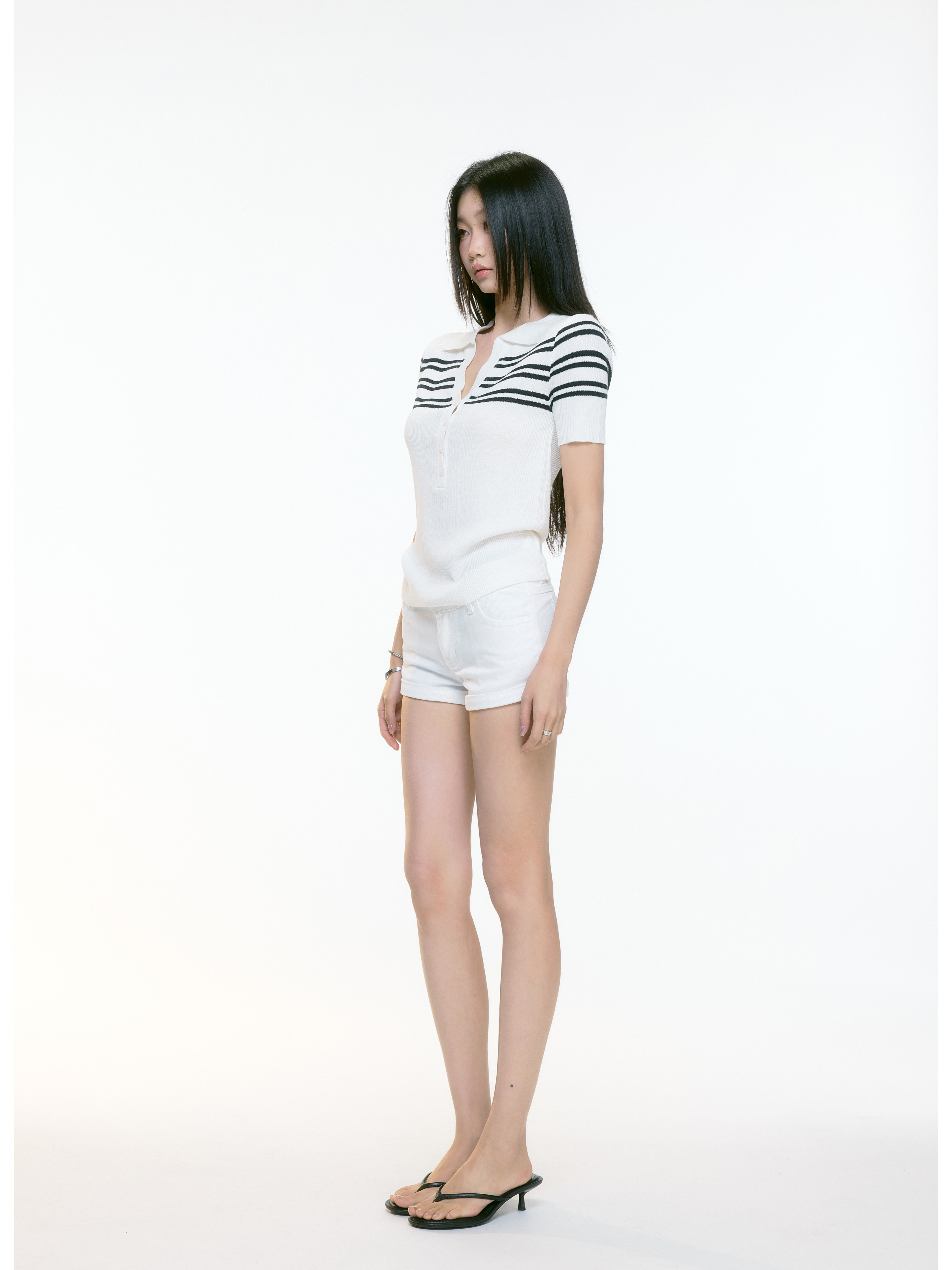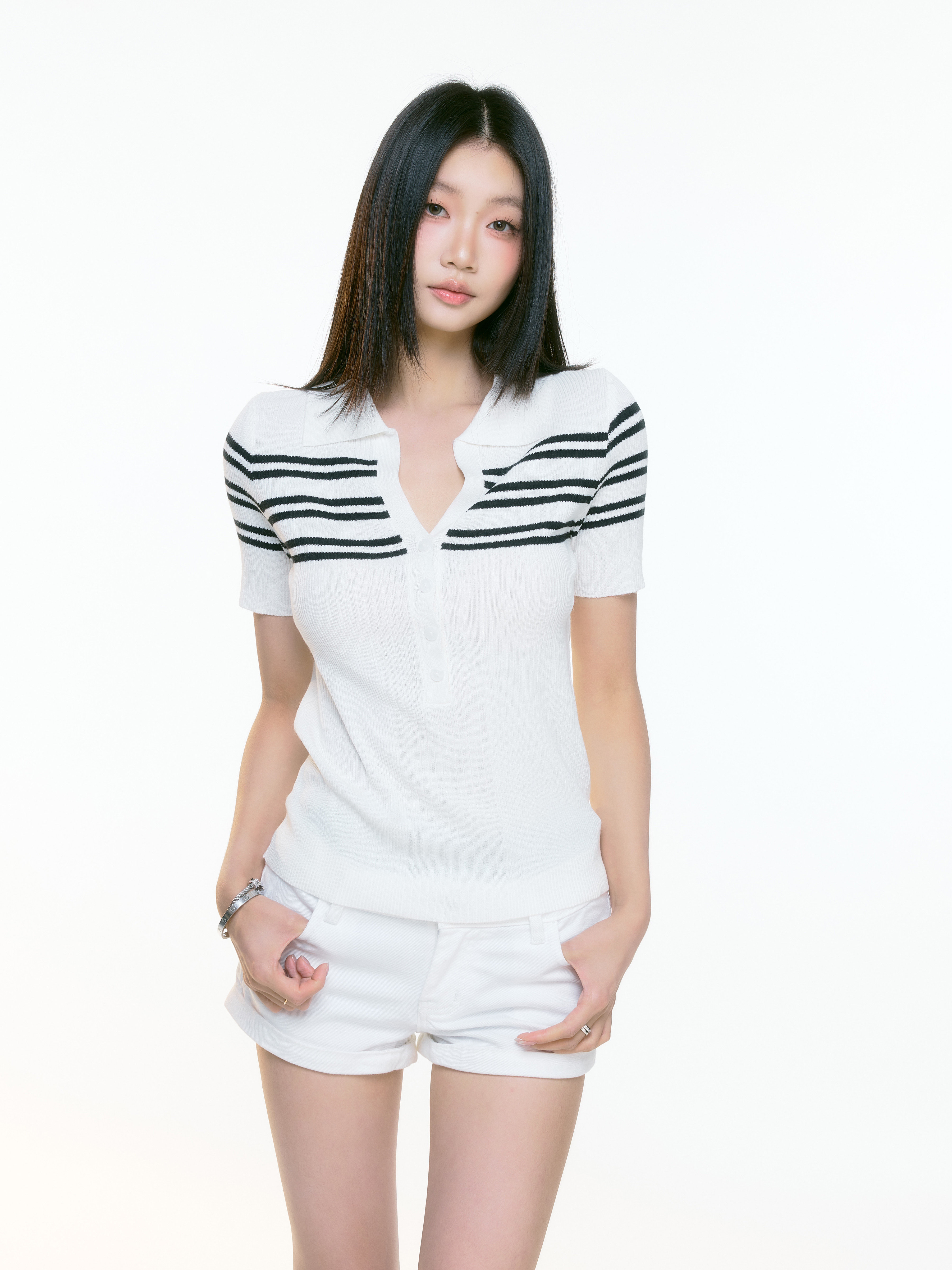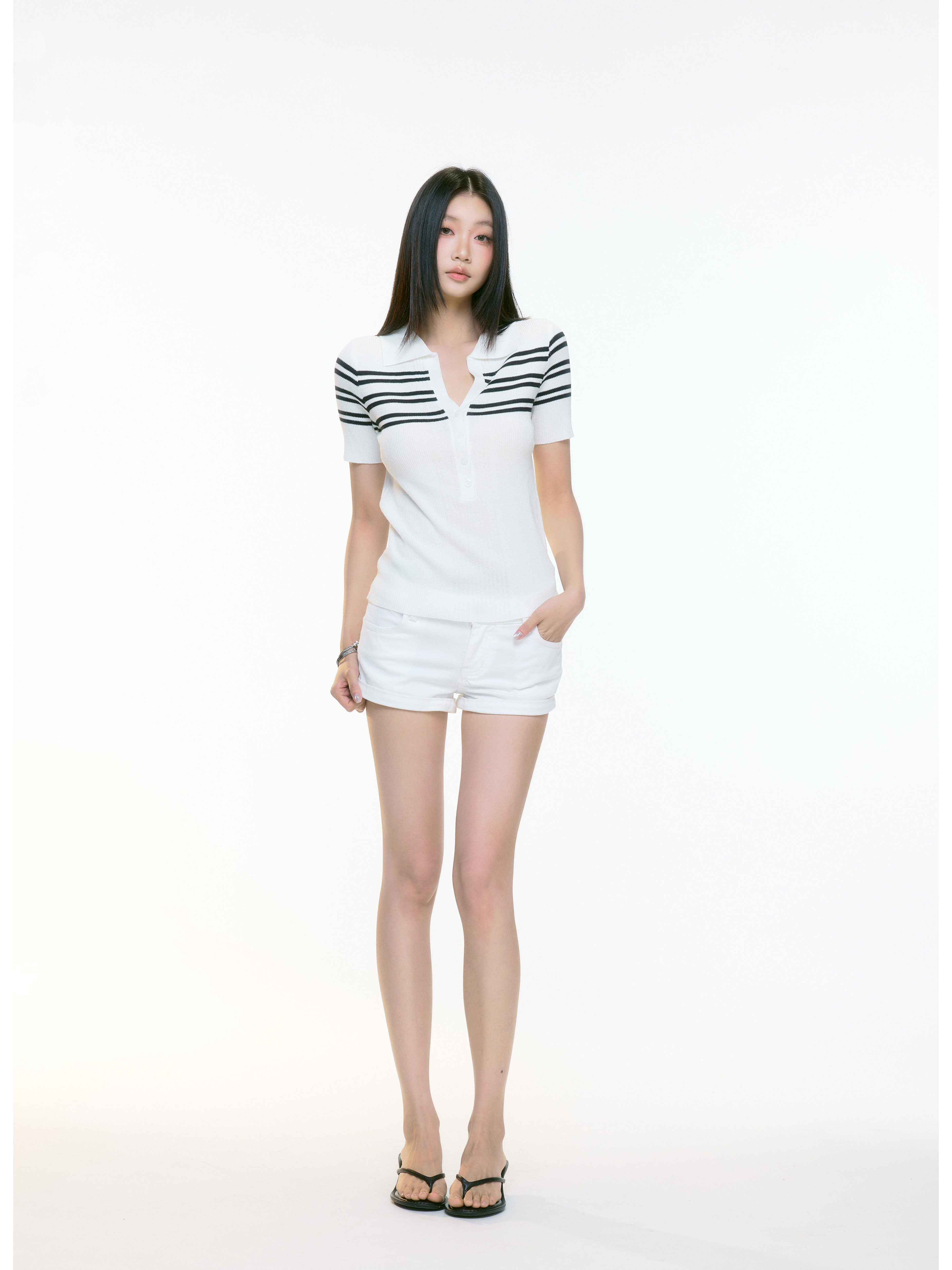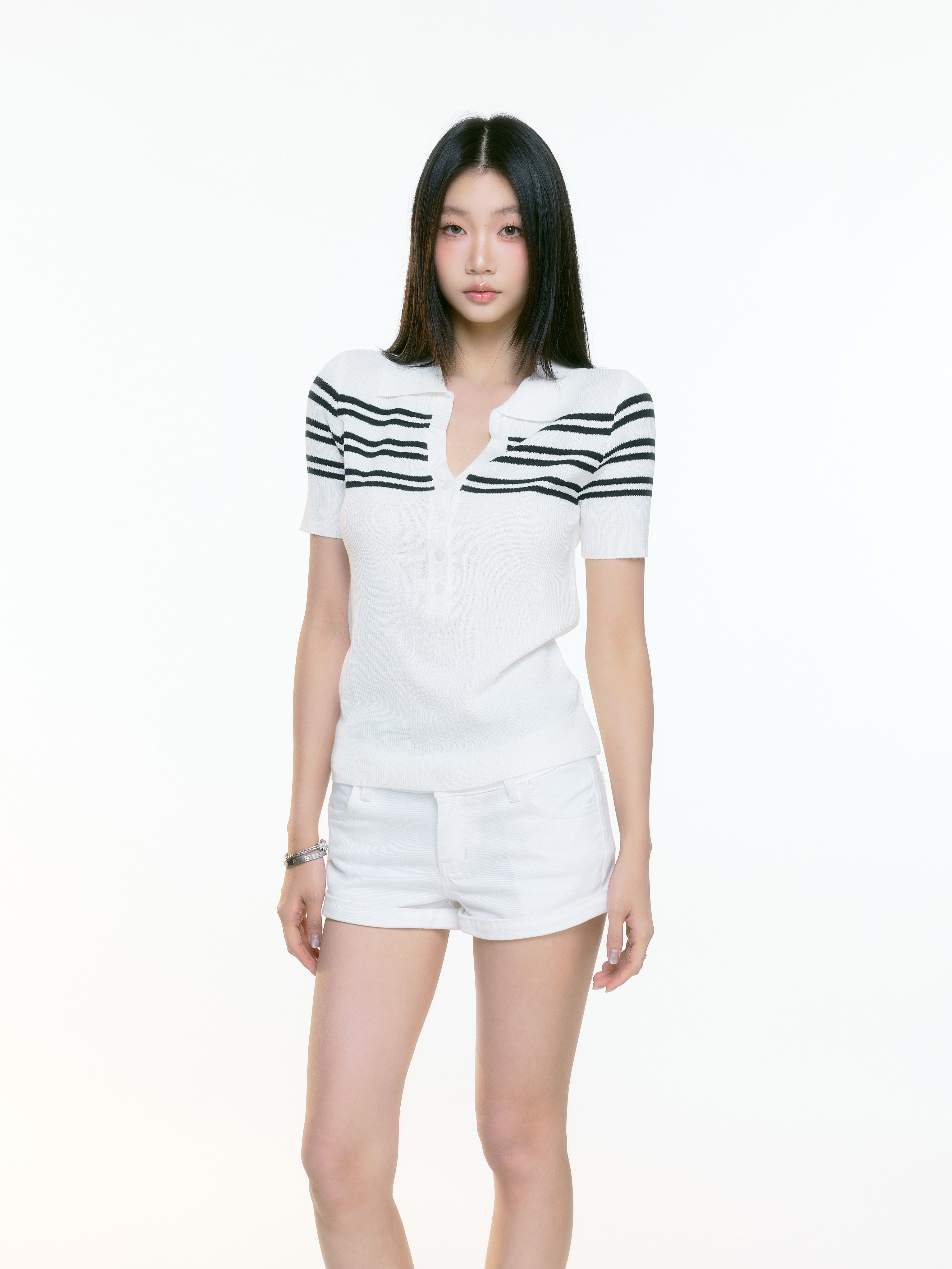 WITHMIN Knitted Slim and Thin Front Shoulder Tee