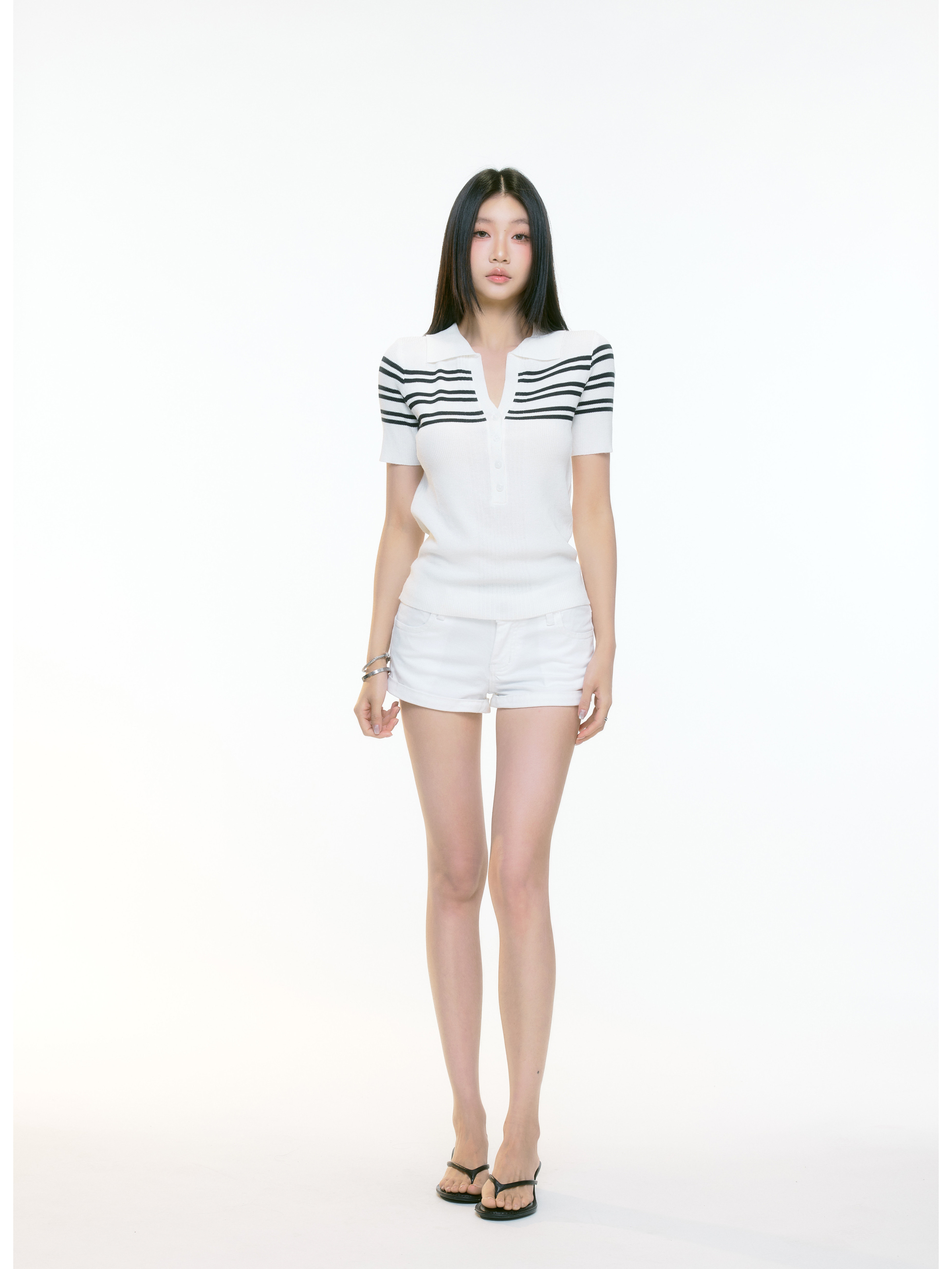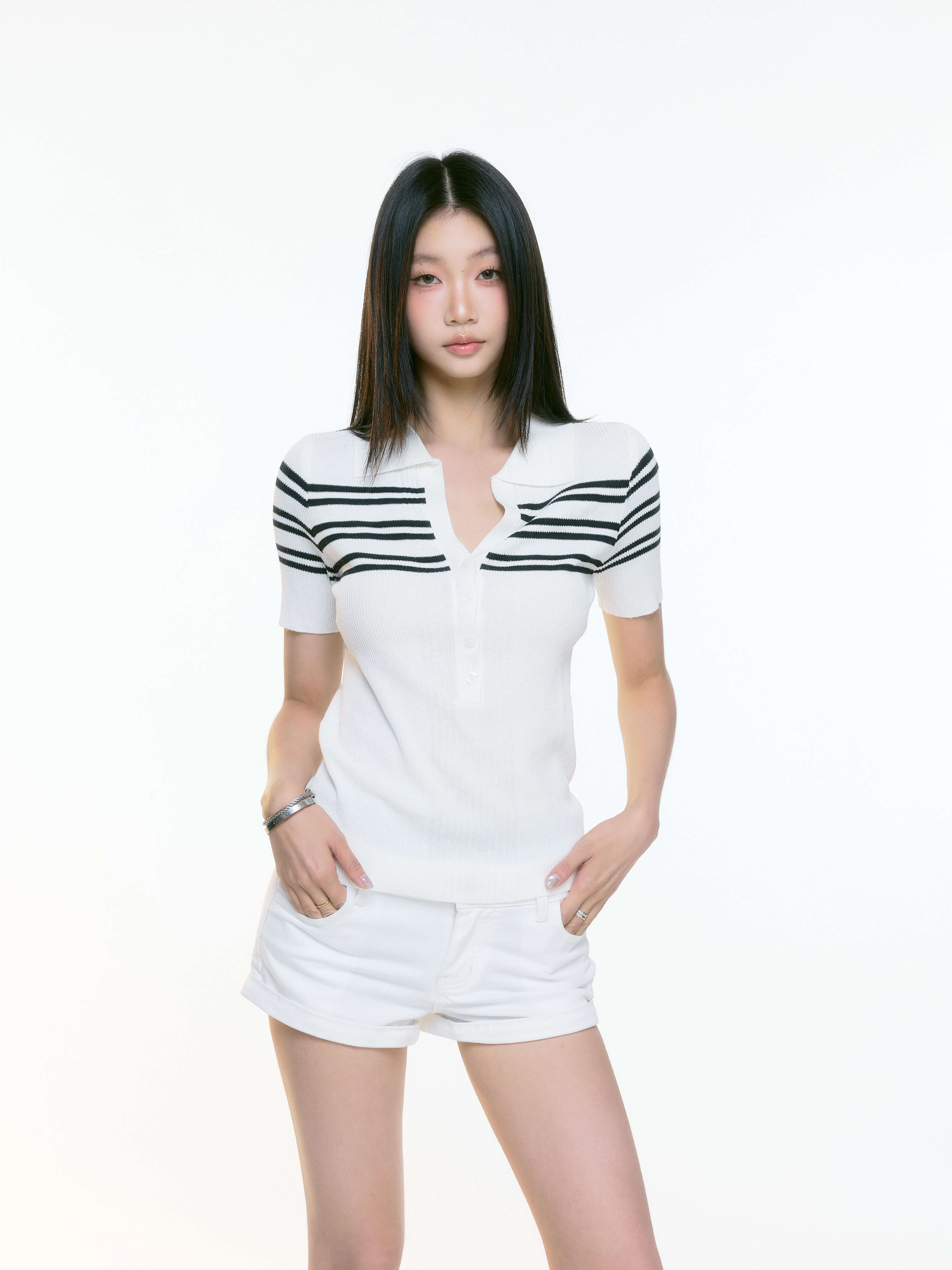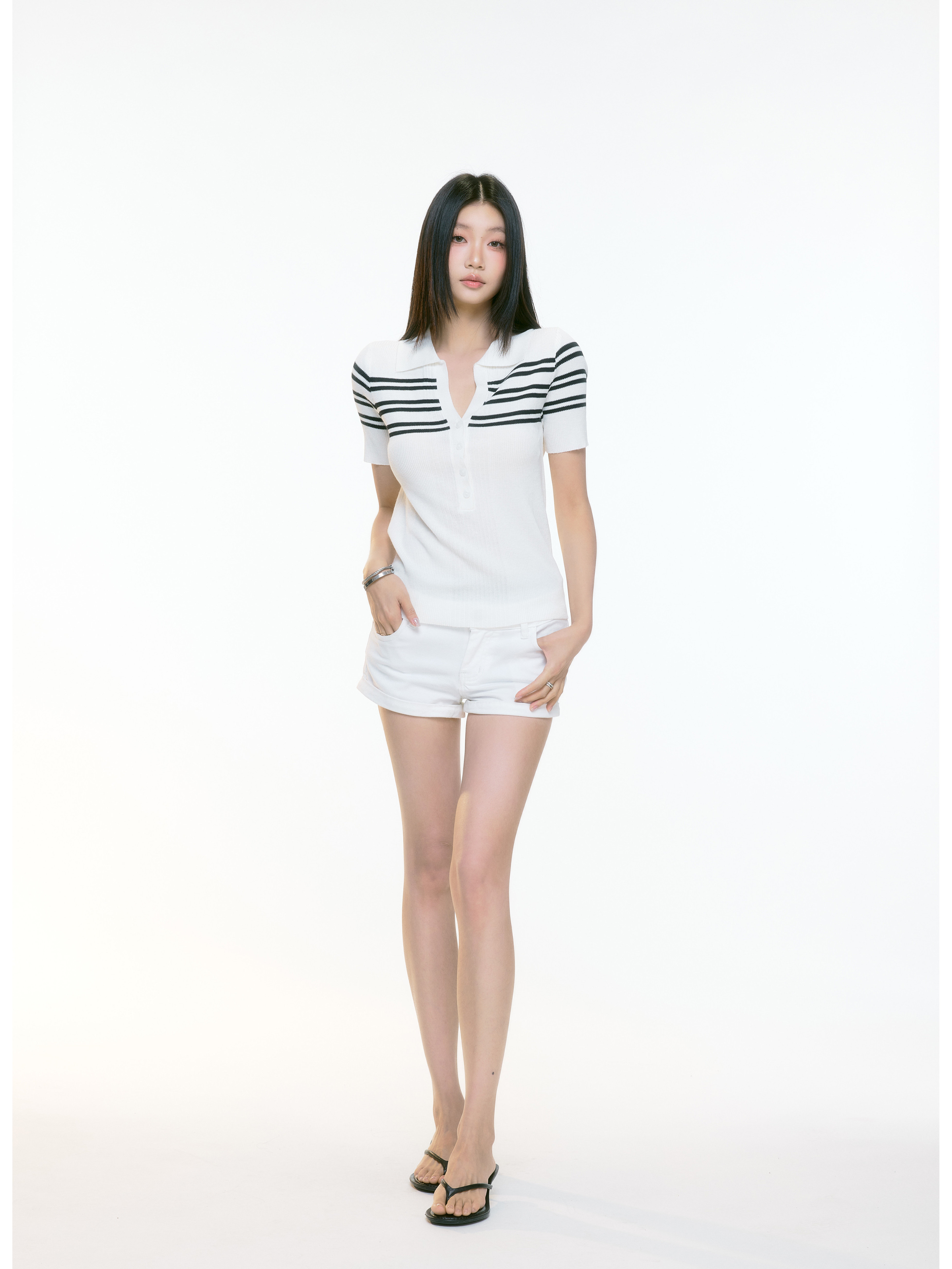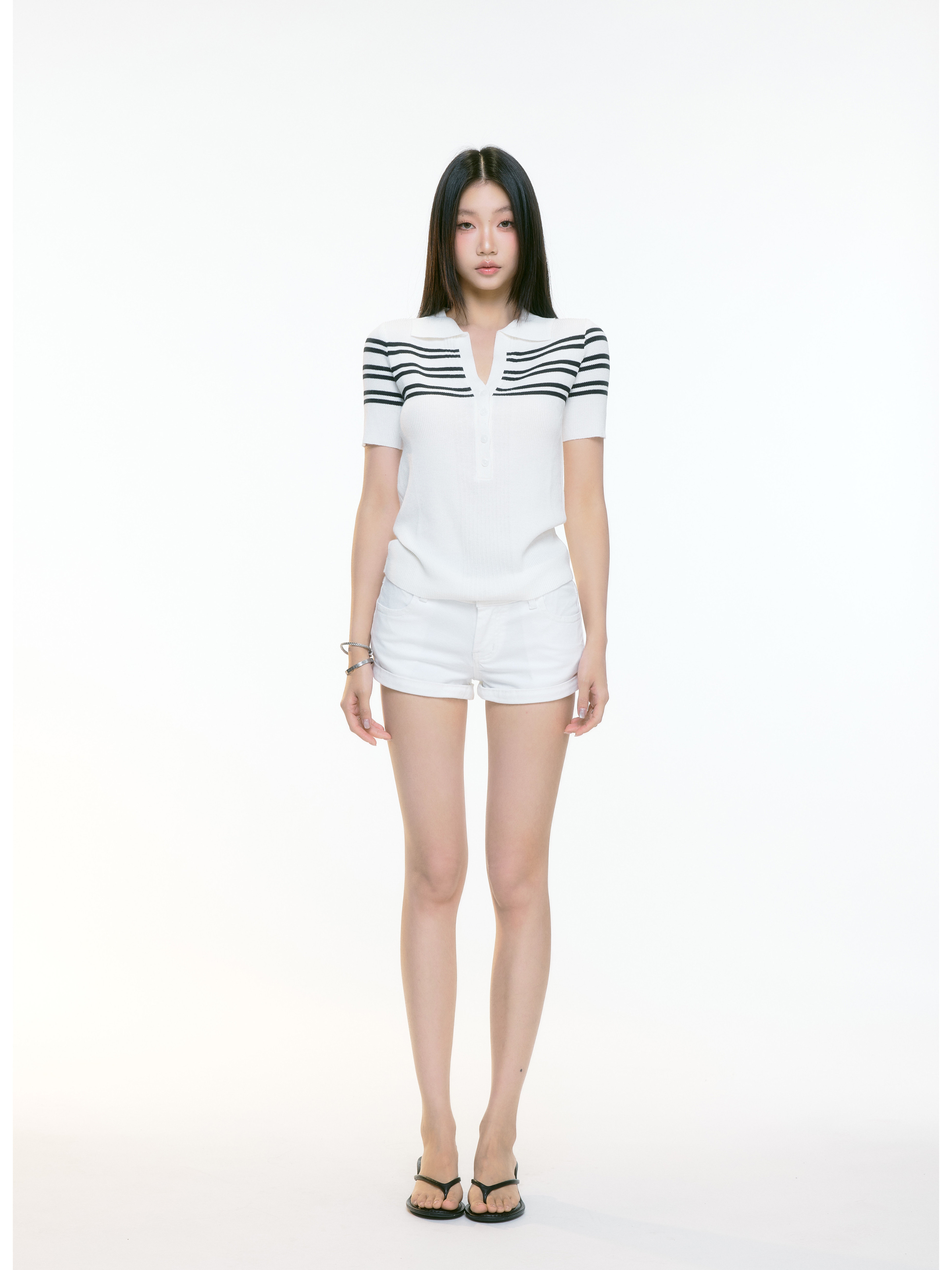 WITHMIN Knitted Slim and Thin Front Shoulder Tee