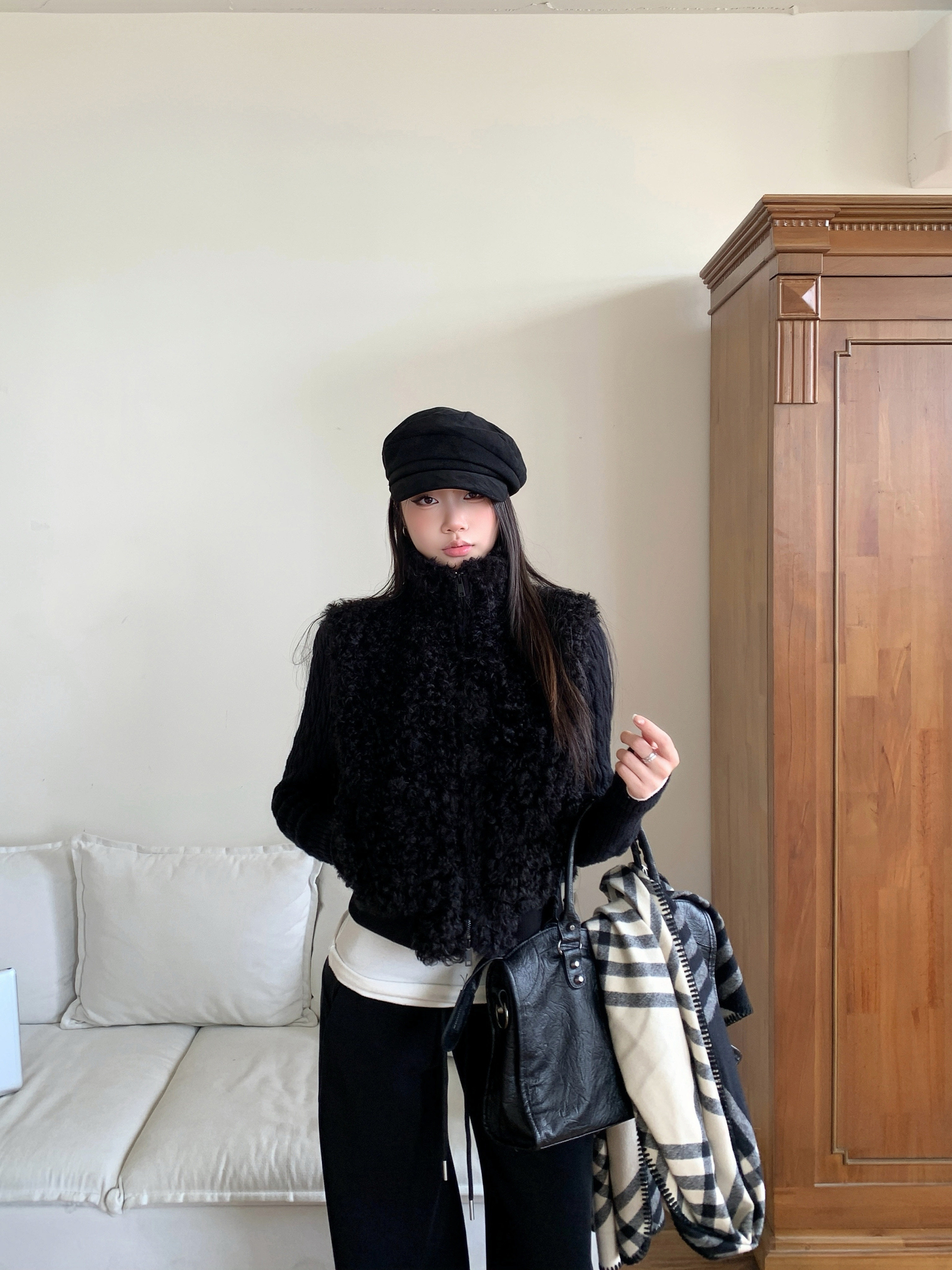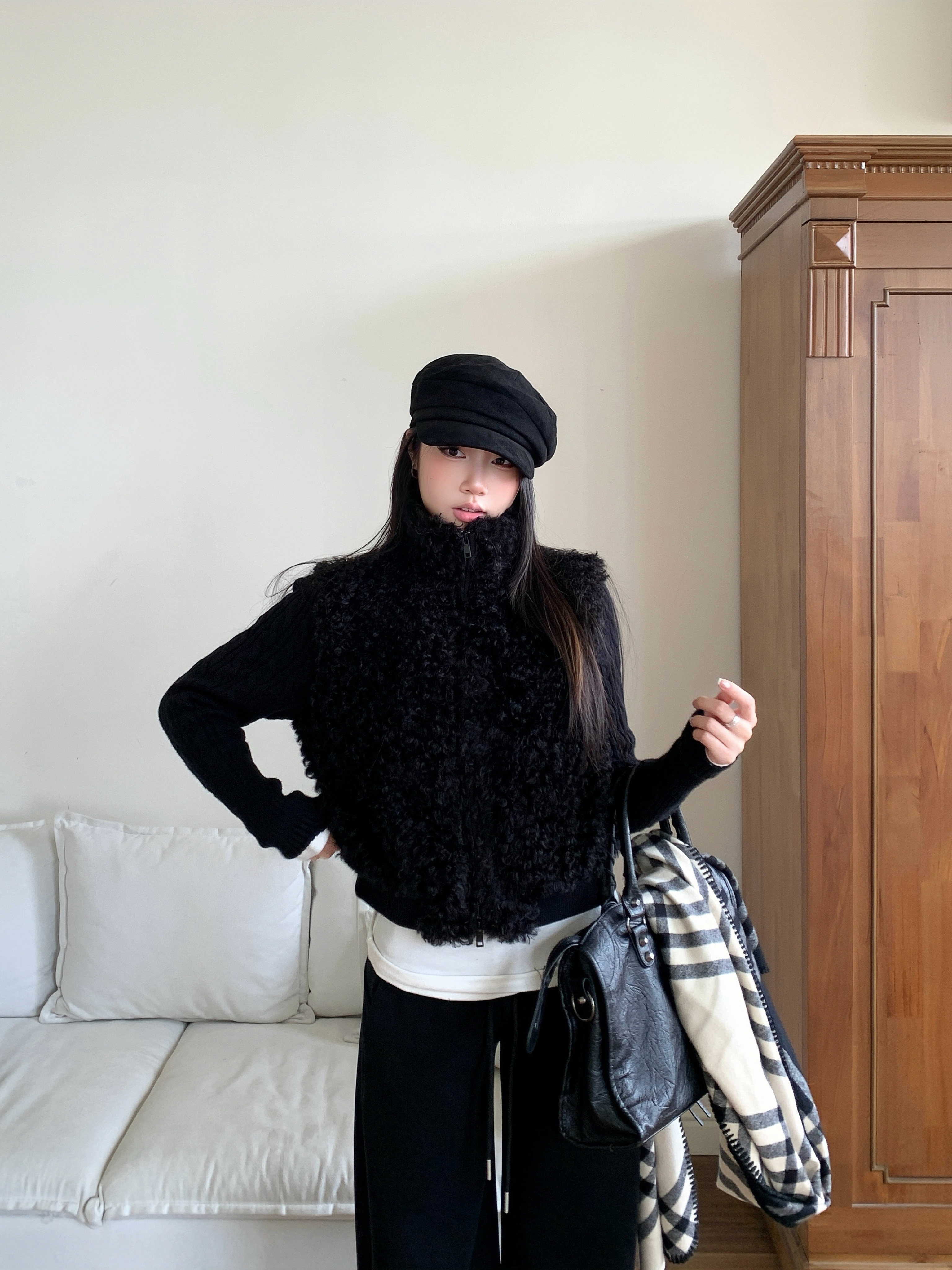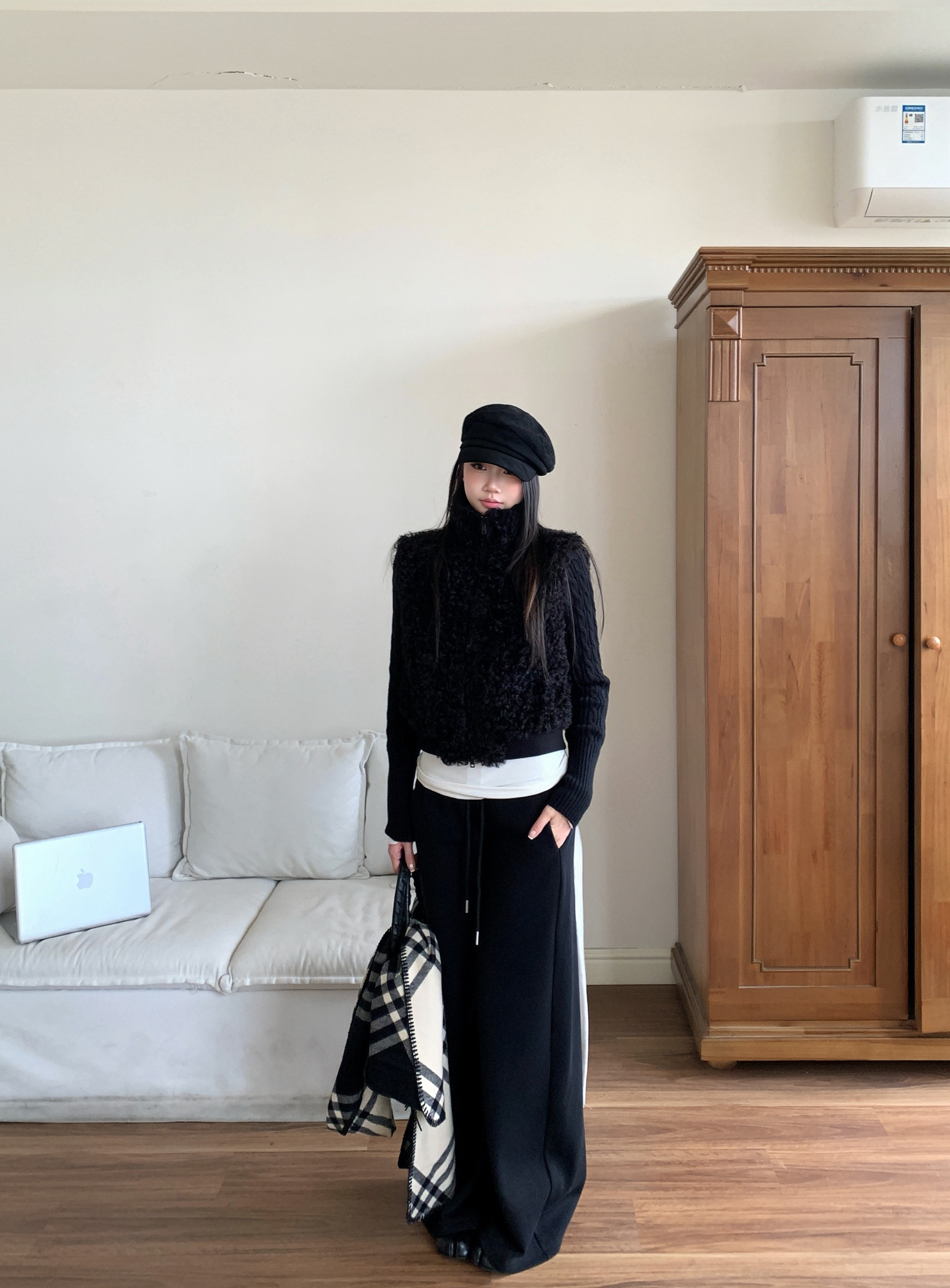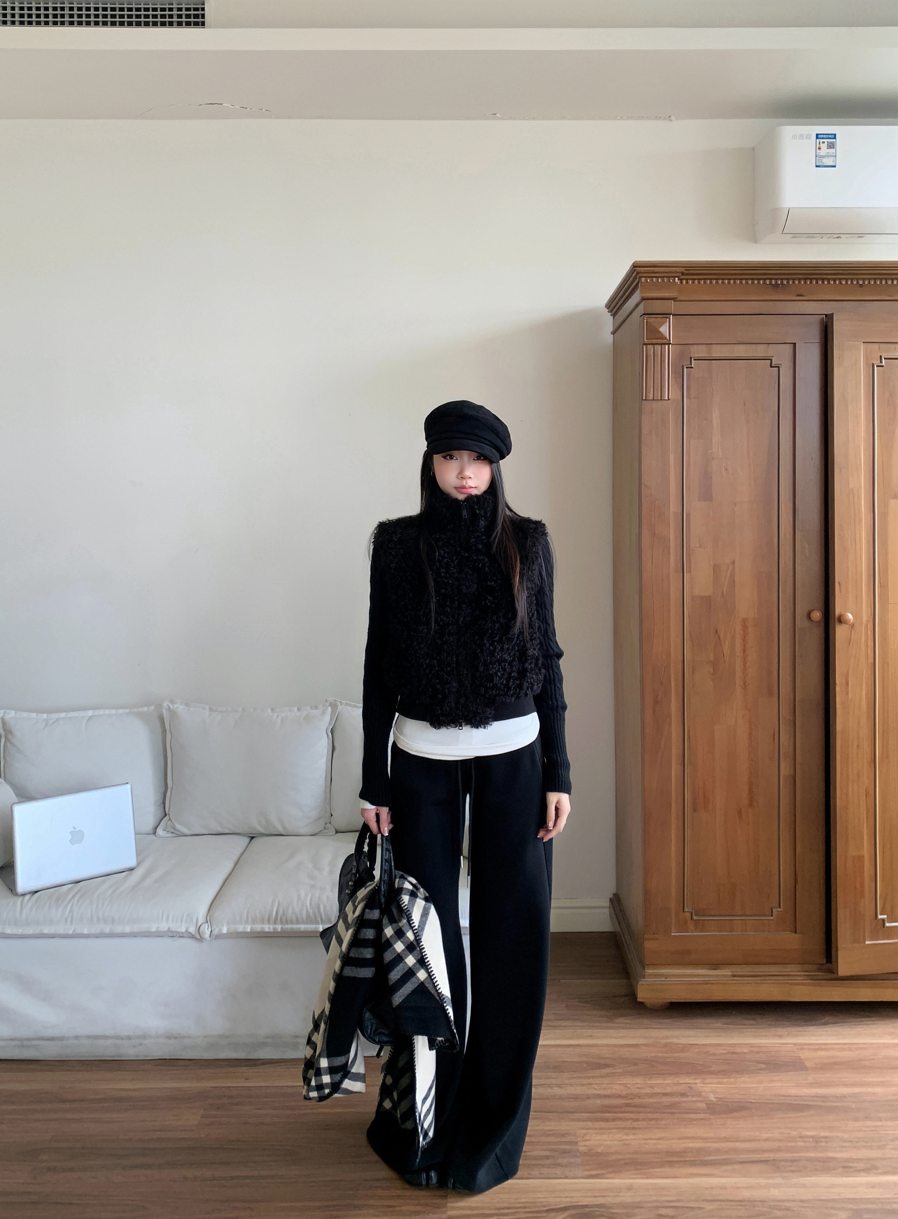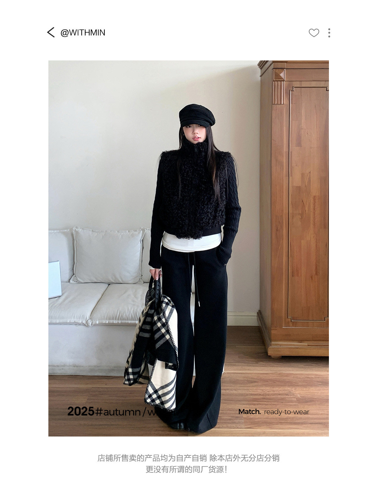 WITHMIN Low-rise Loose-fitting Fleece Straight-leg Wide-leg Pants