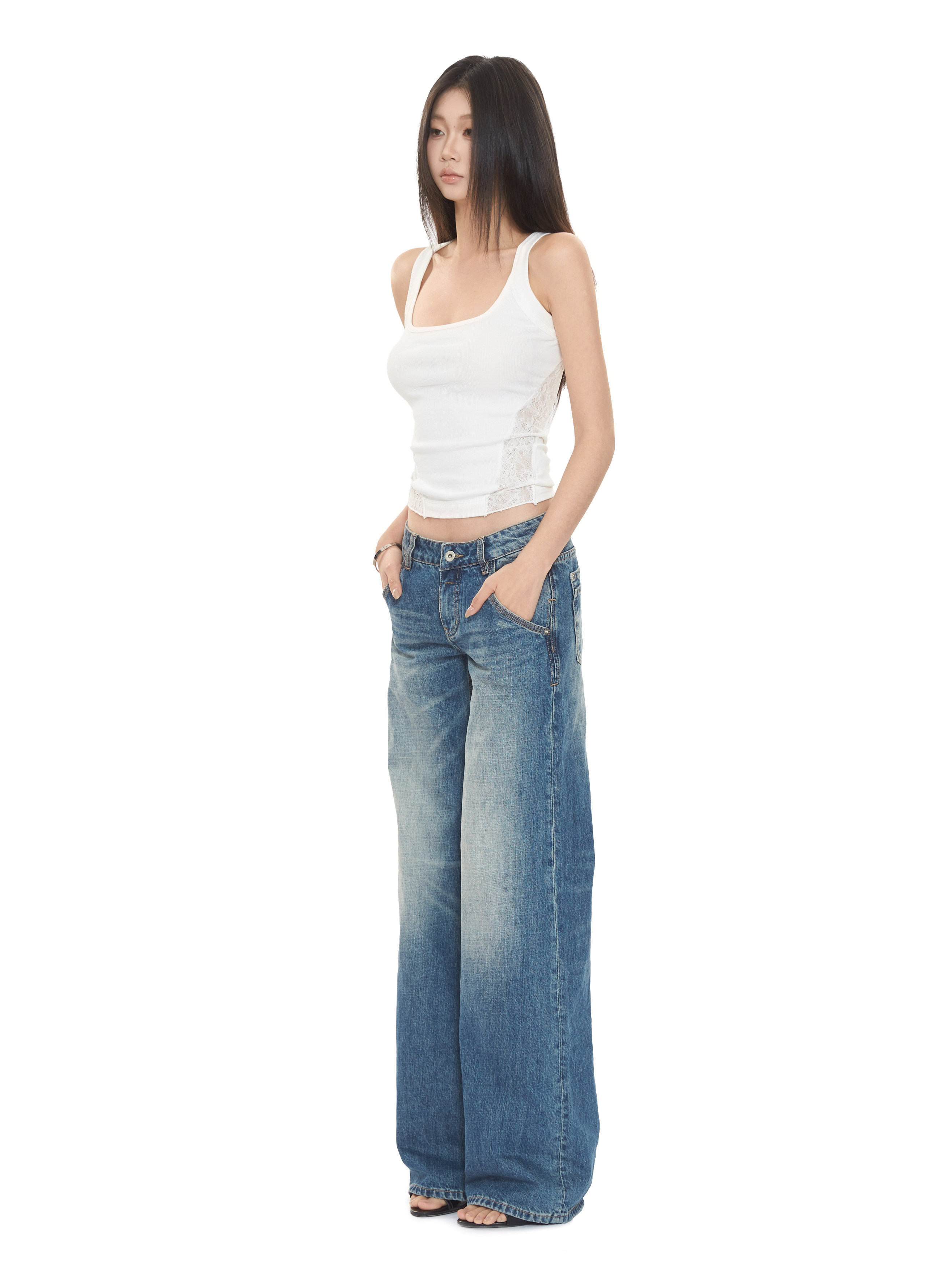 WITHMIN Low Waist Slack Skinny Straight Jeans