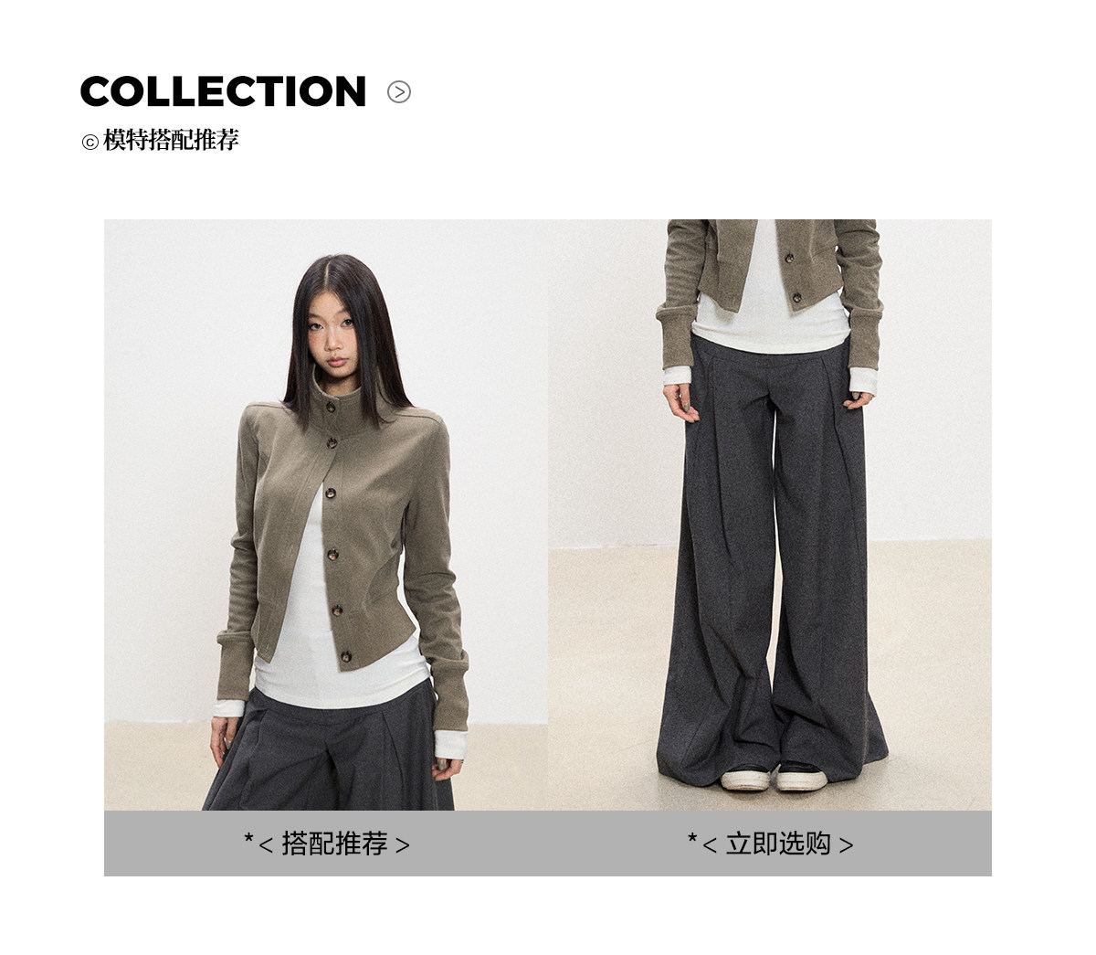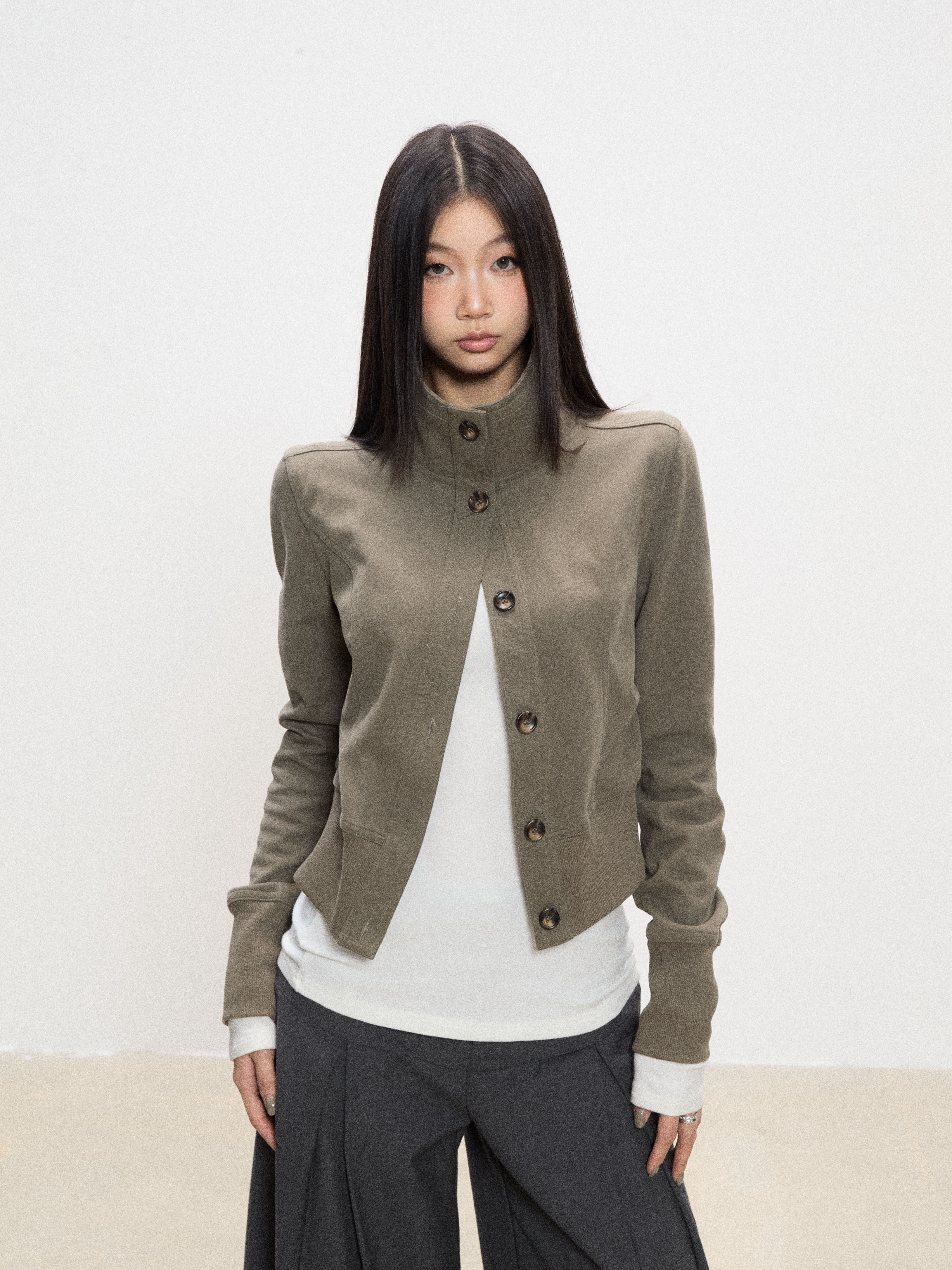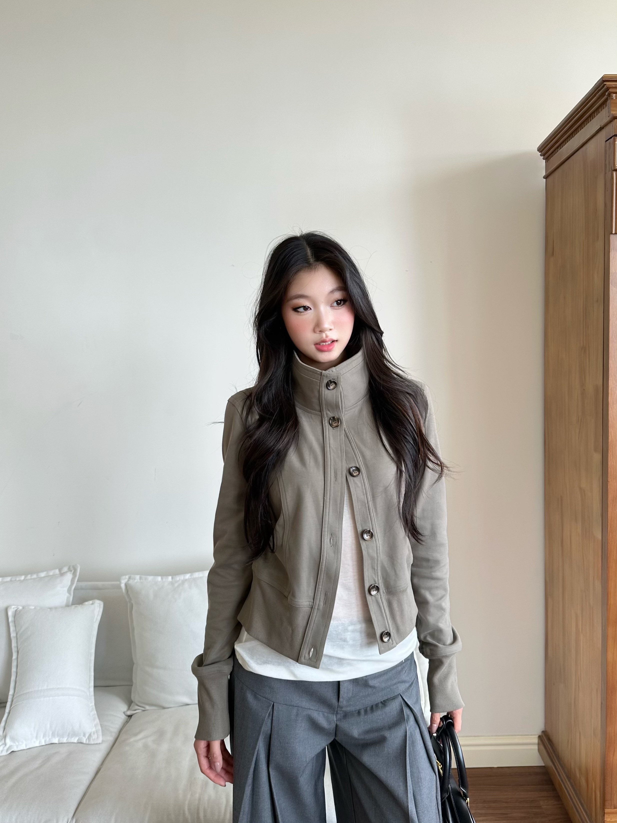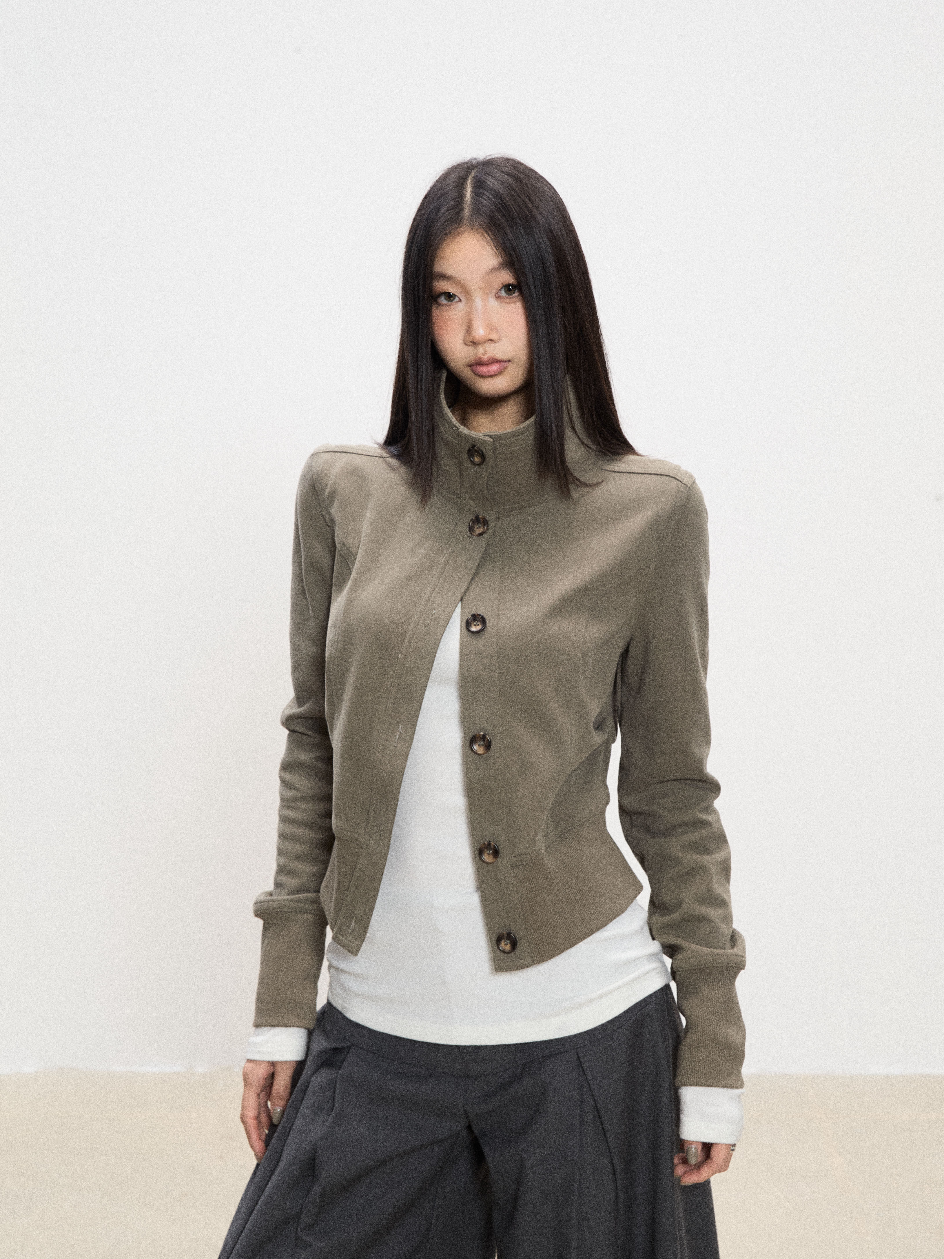 WITHMIN Slim Short Casual Versatile High Neck Long Sleeve