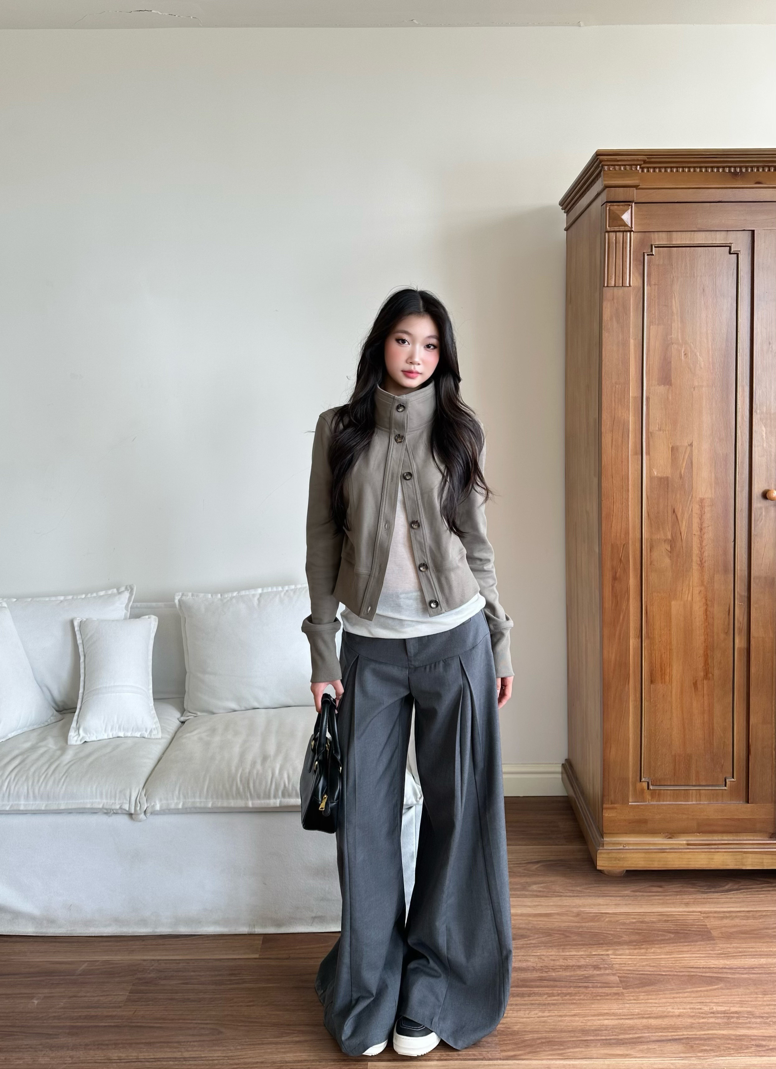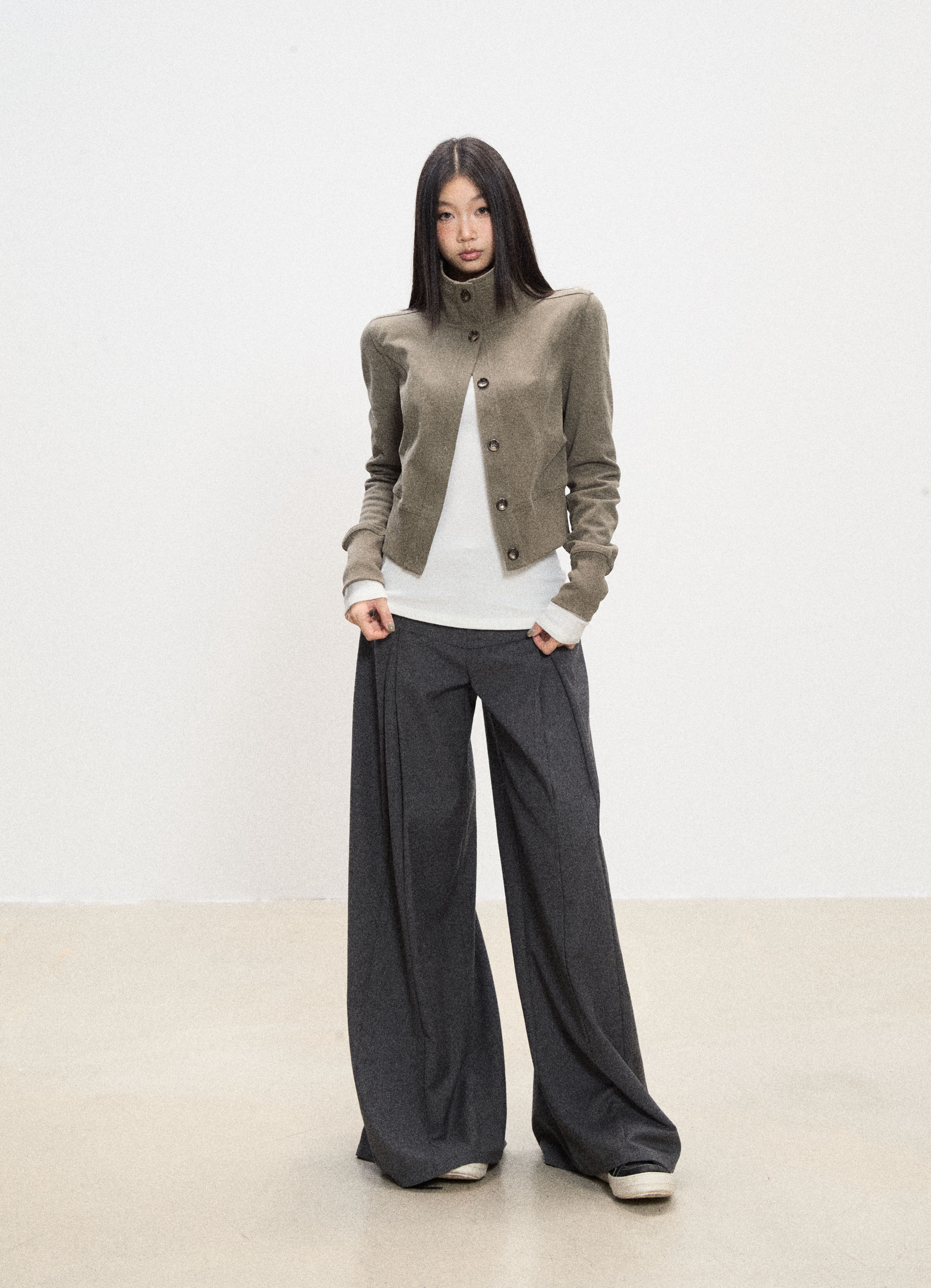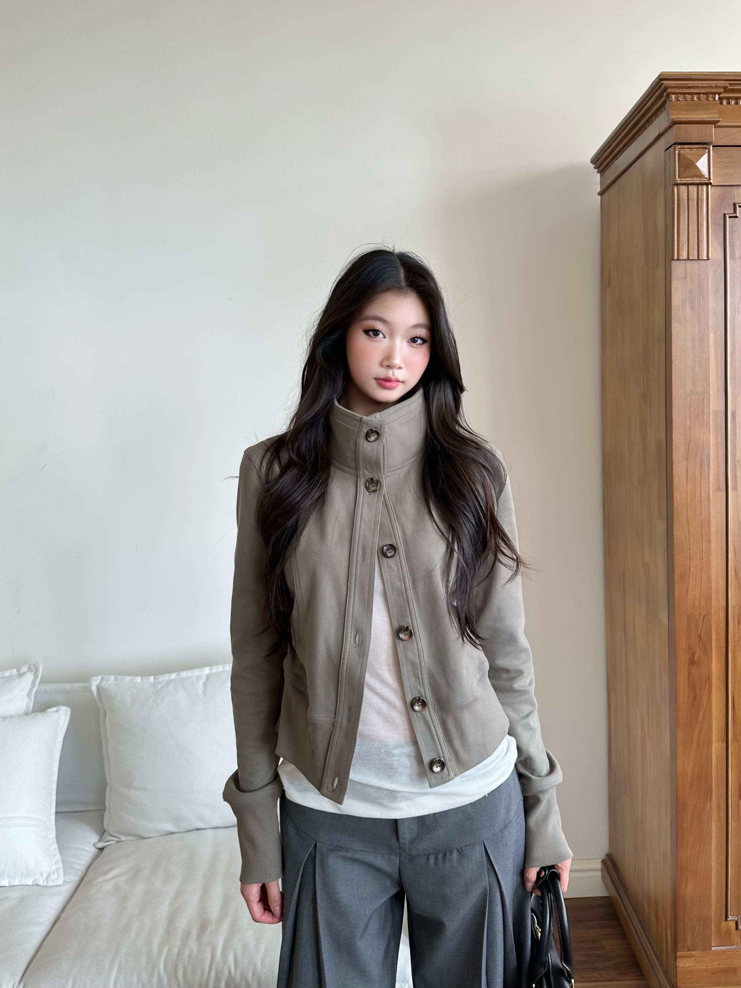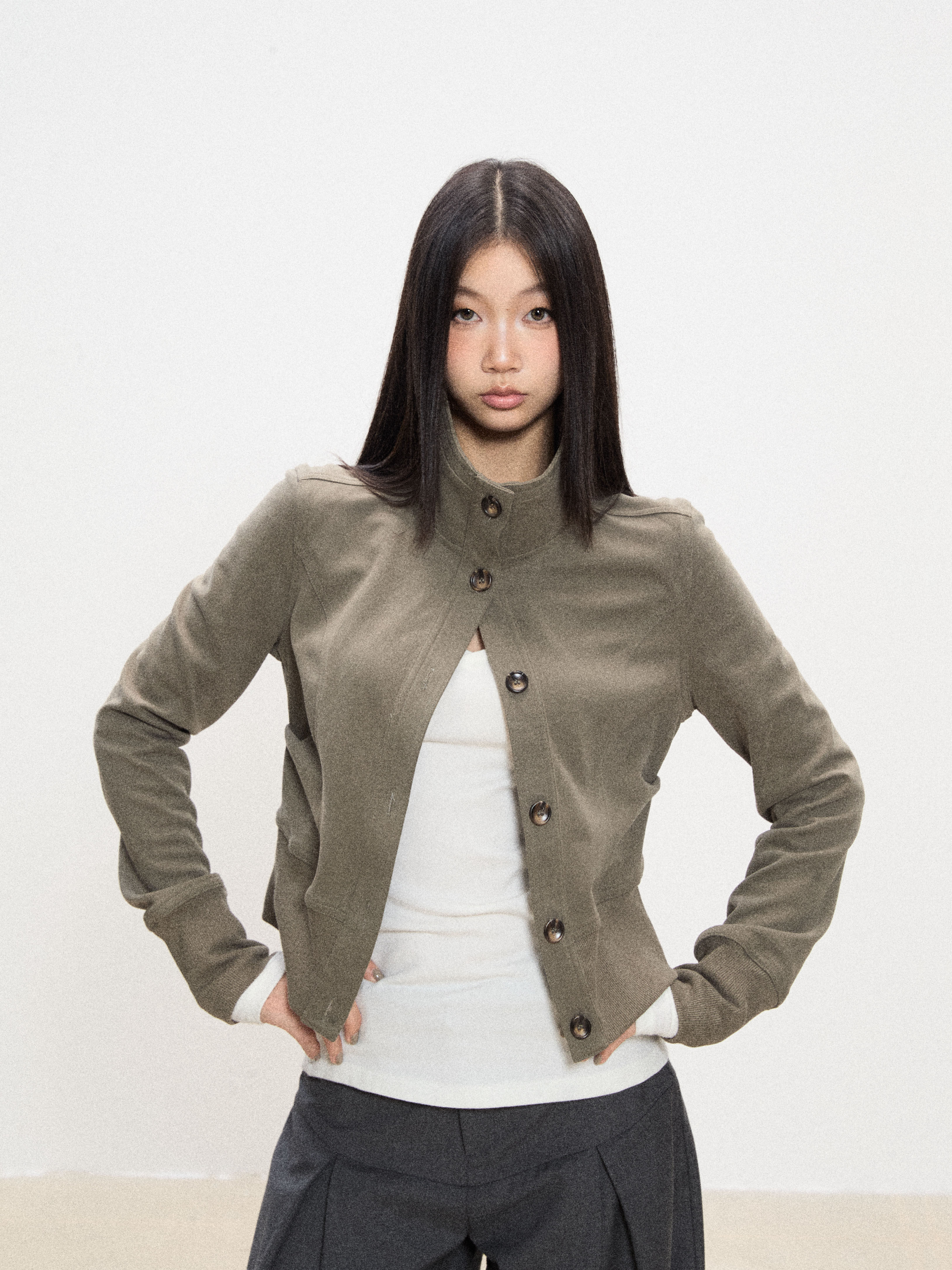 WITHMIN Slim Short Casual Versatile High Neck Long Sleeve