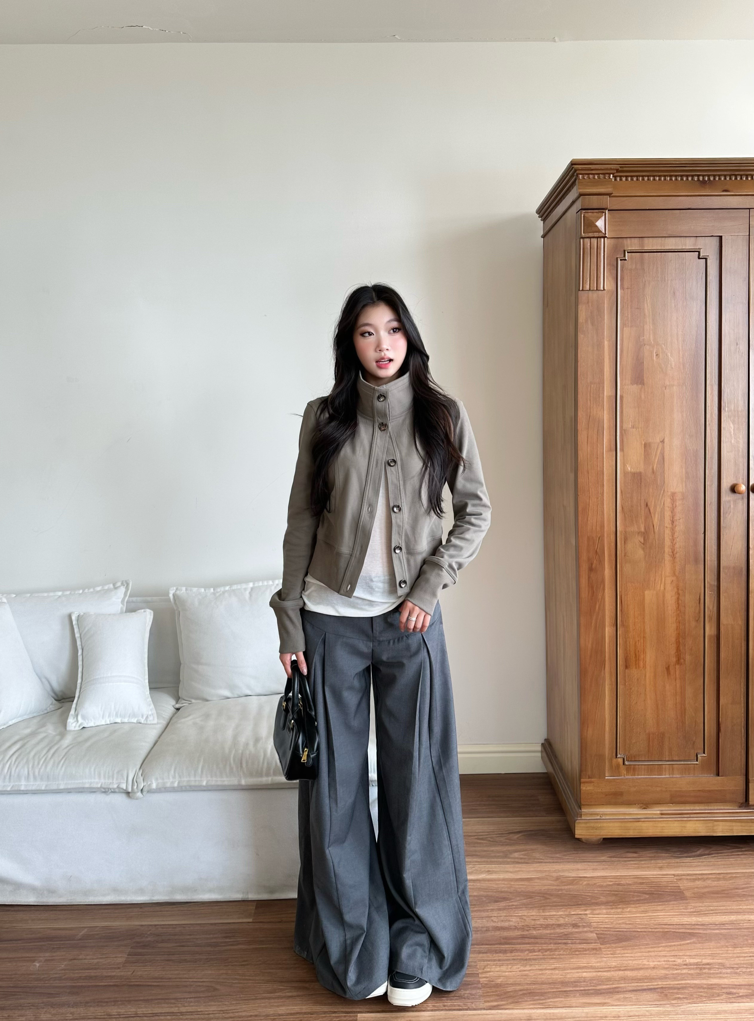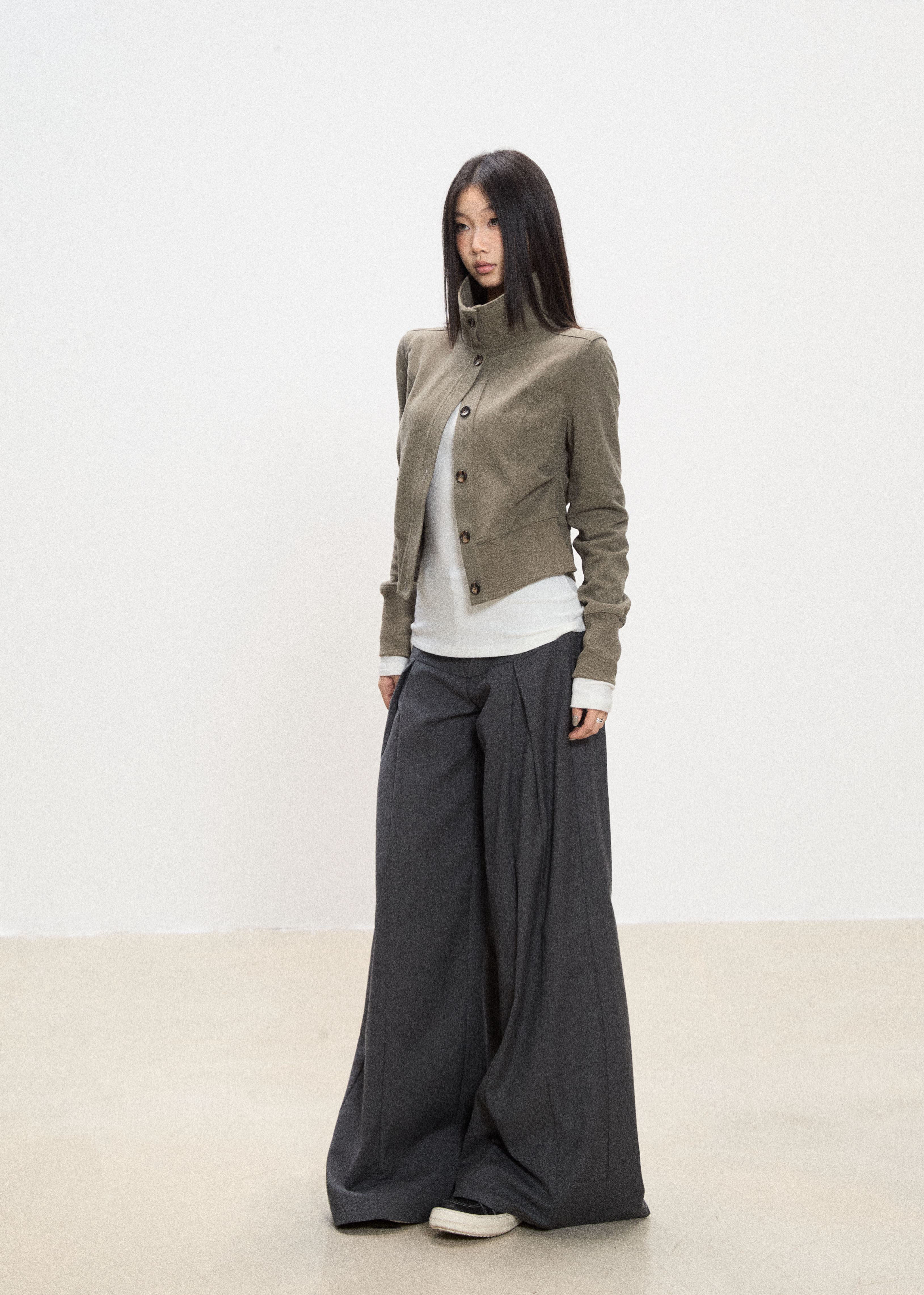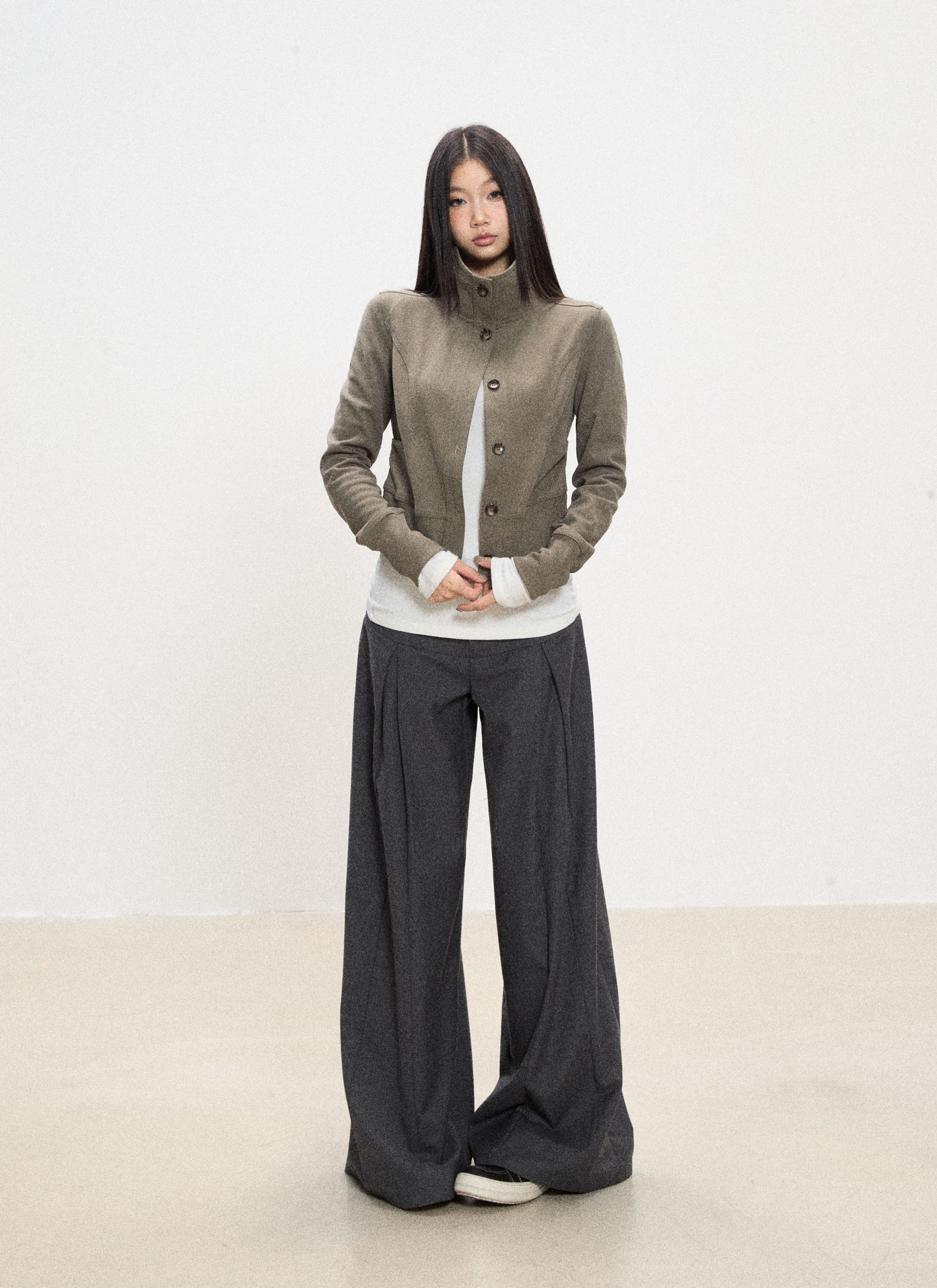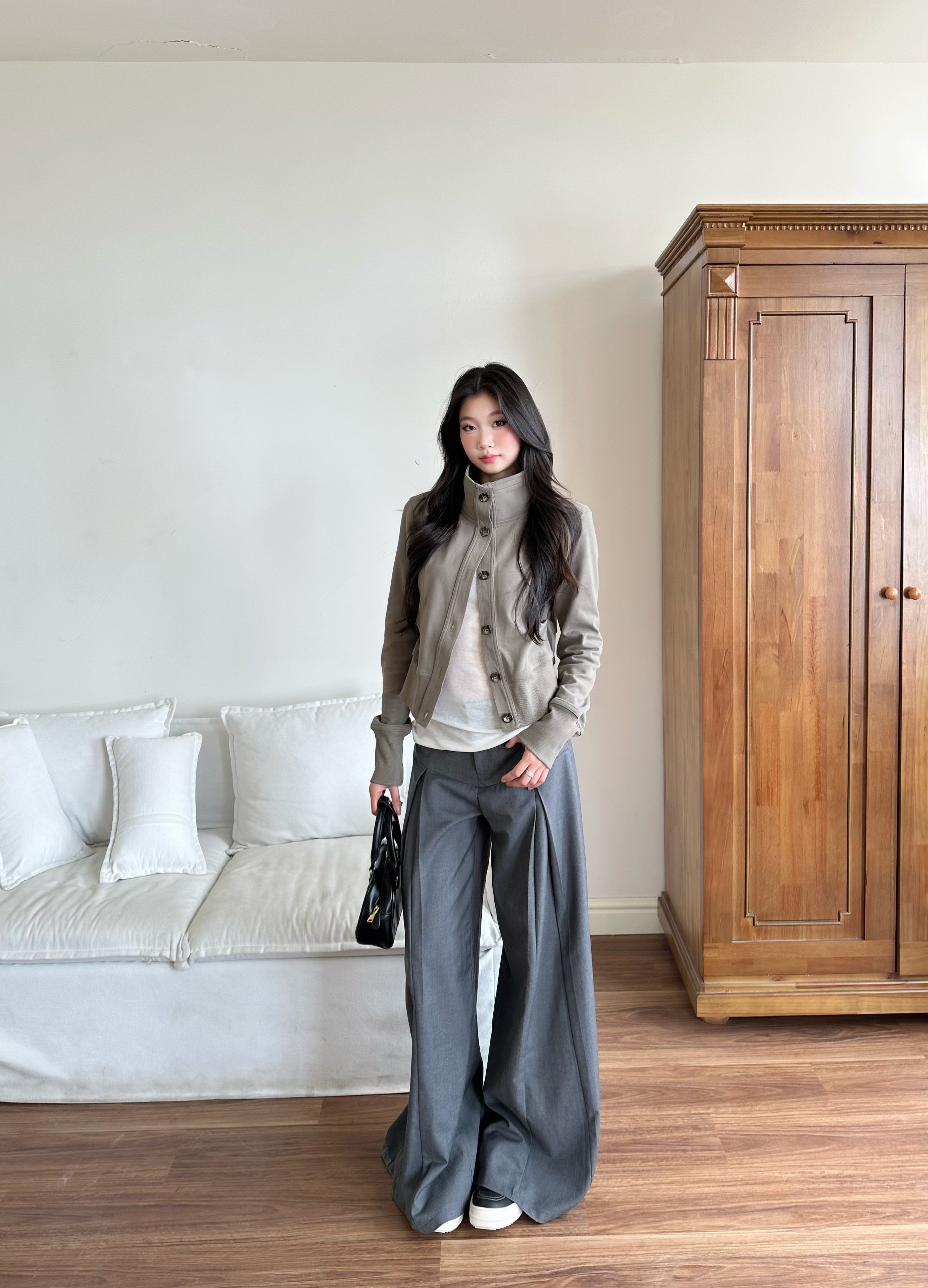 WITHMIN Slim Short Casual Versatile High Neck Long Sleeve