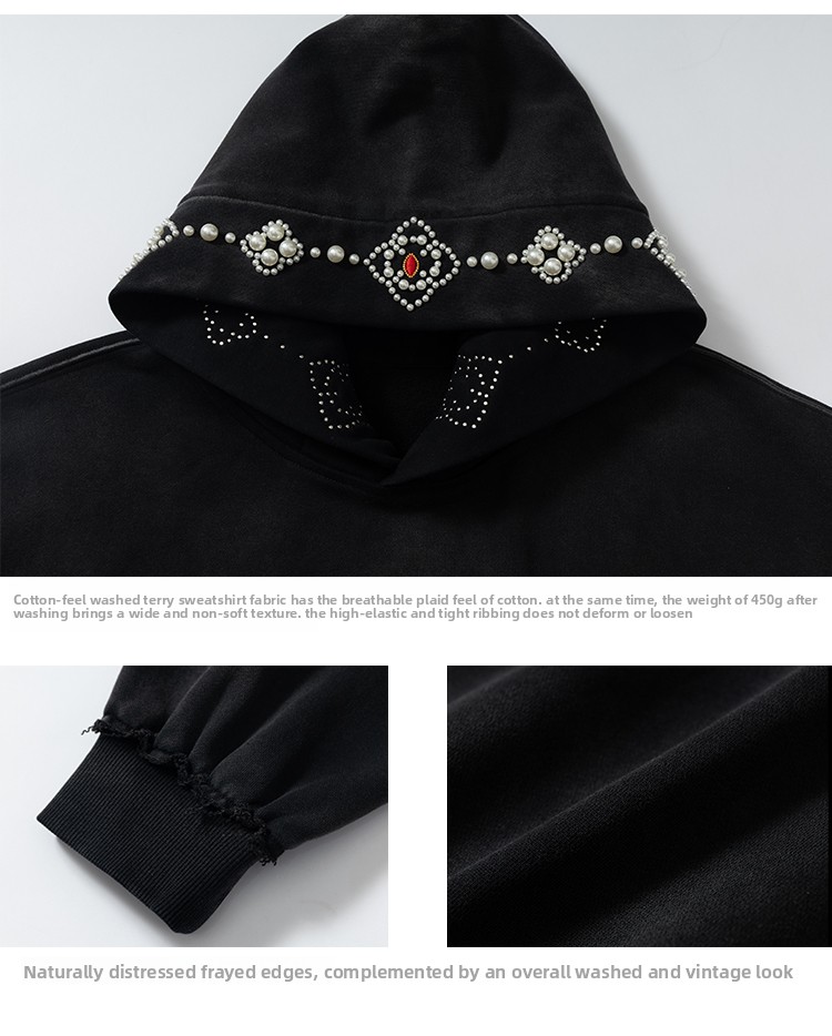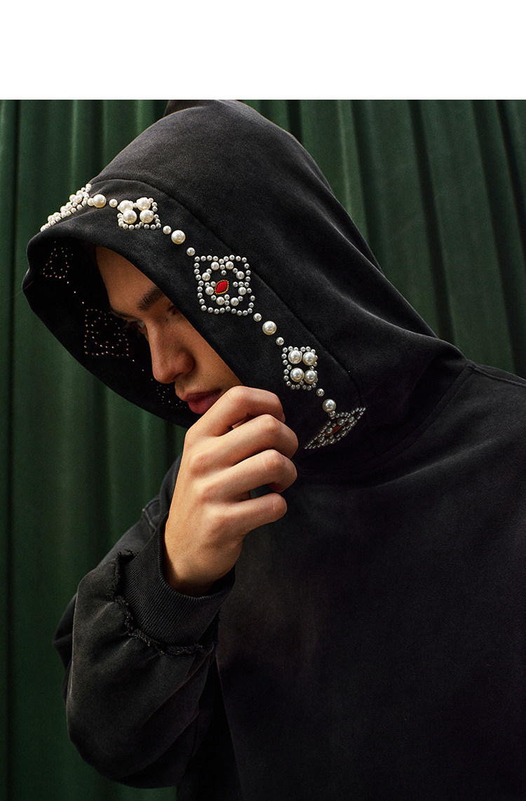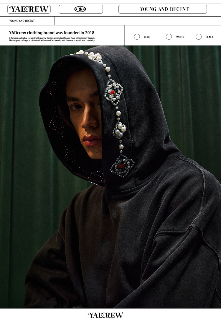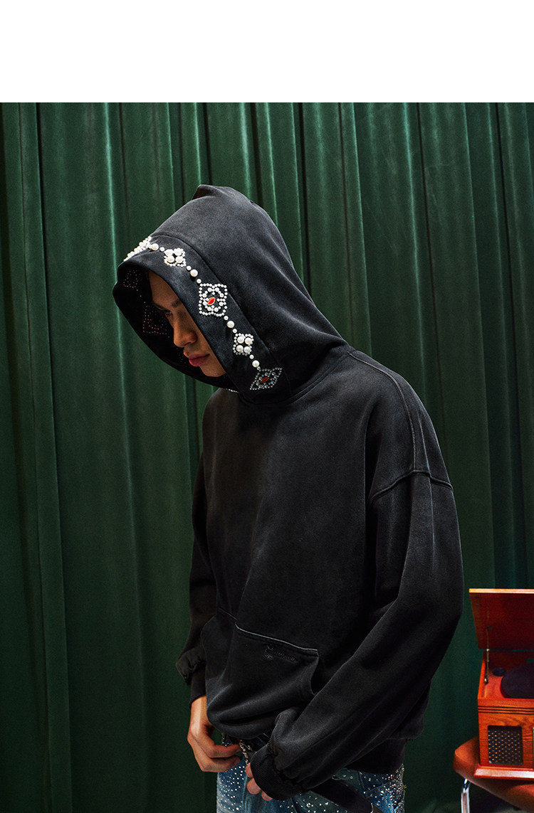 YADcrew Beaded Embroidered Loose Casual Hooded Sweater