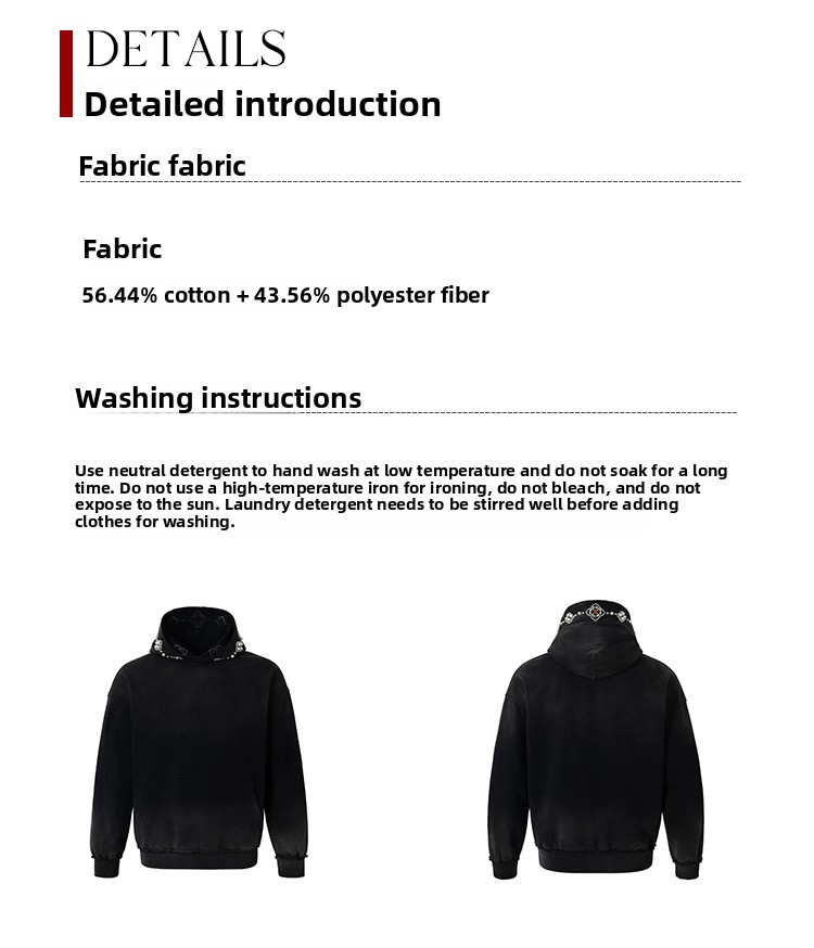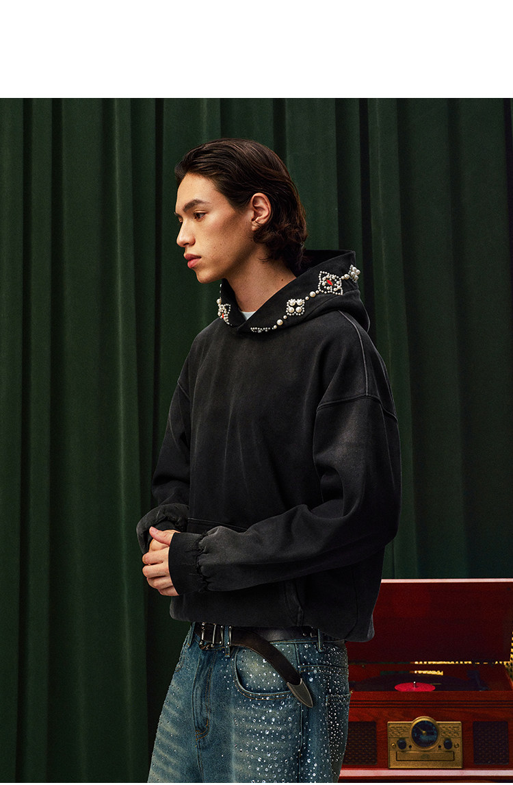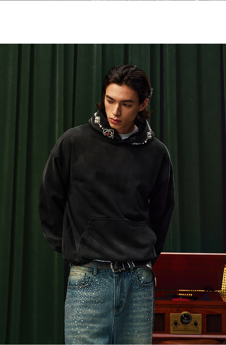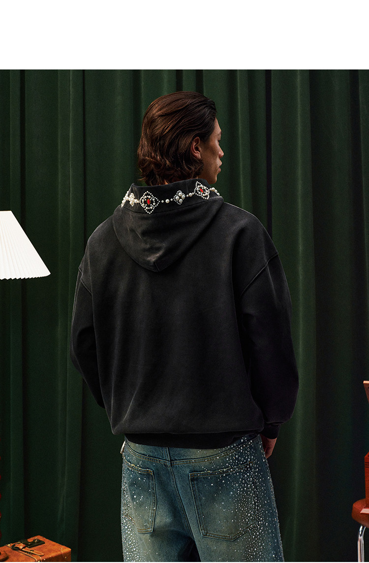YADcrew Beaded Embroidered Loose Casual Hooded Sweater