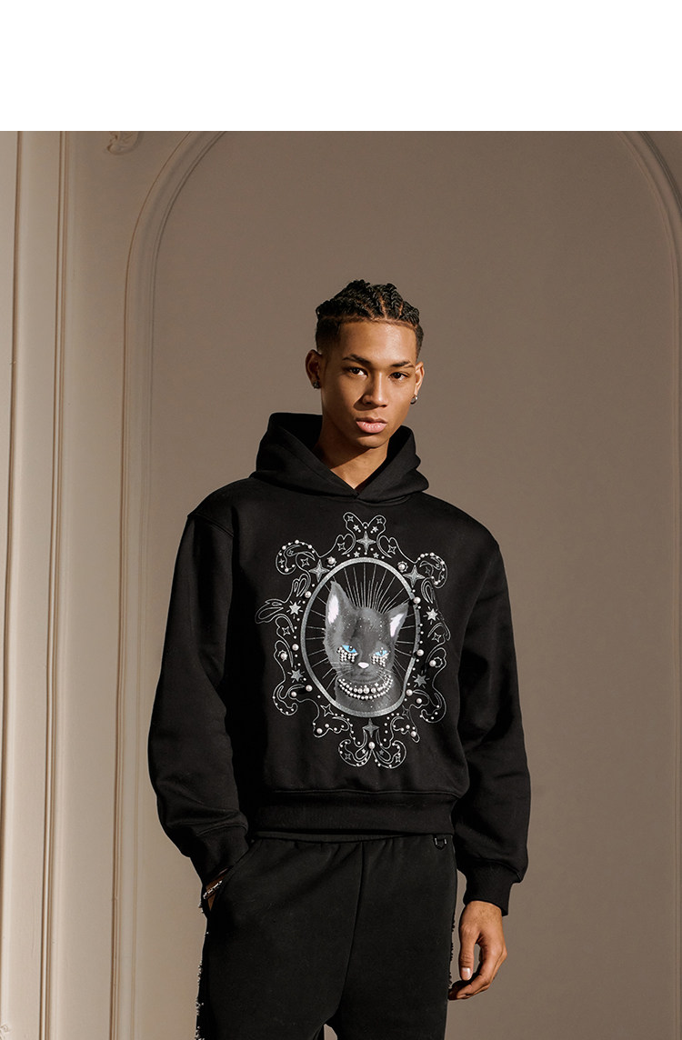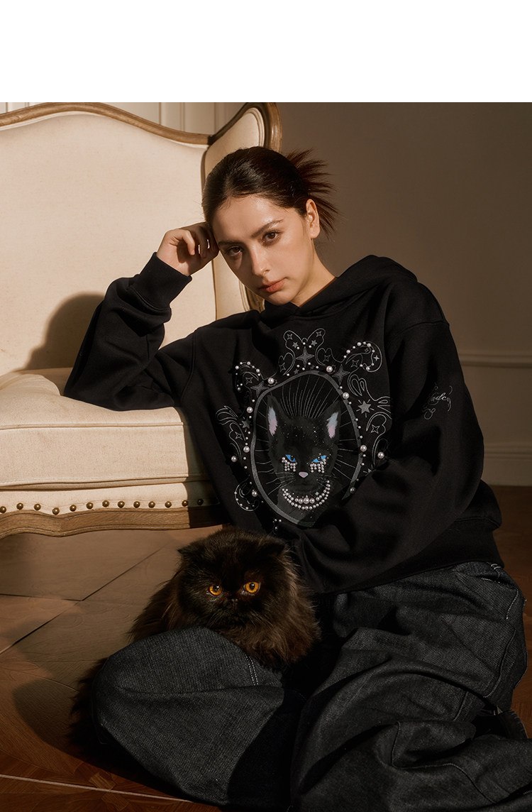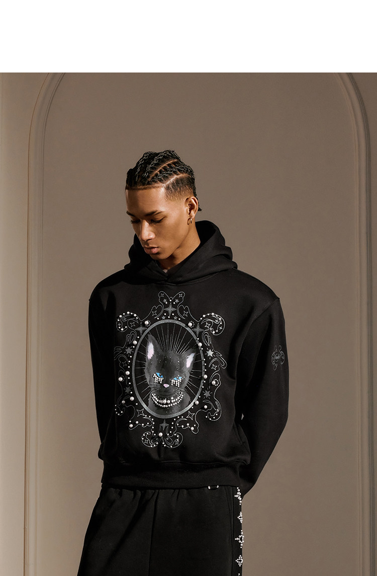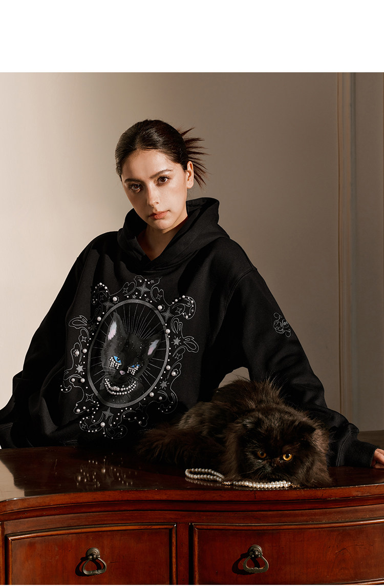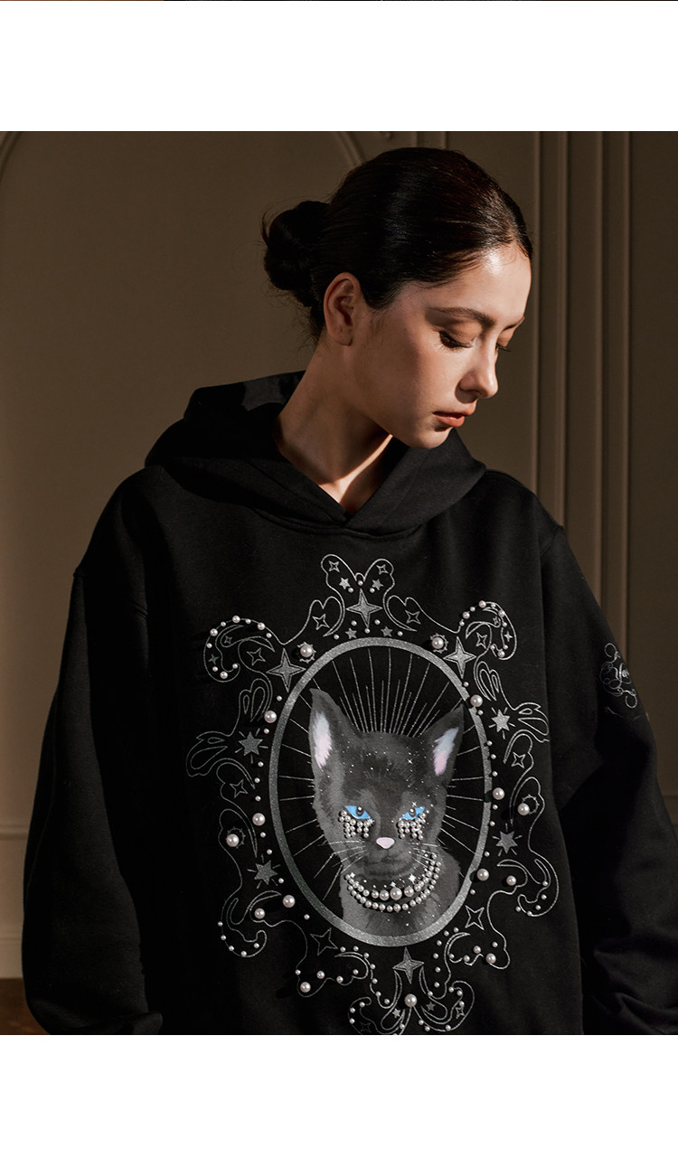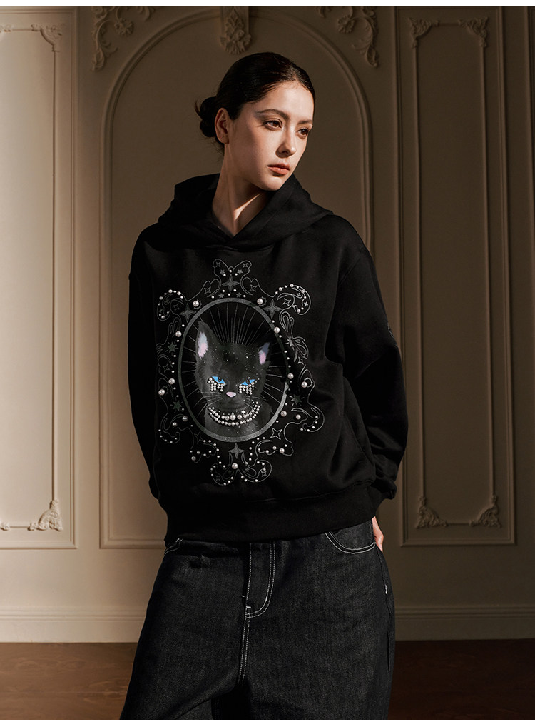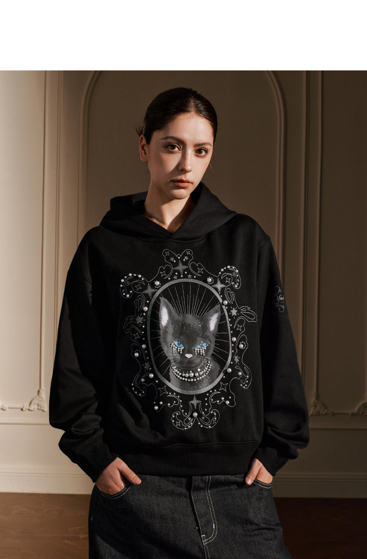 YADcrew Cat Print Hooded Sweater