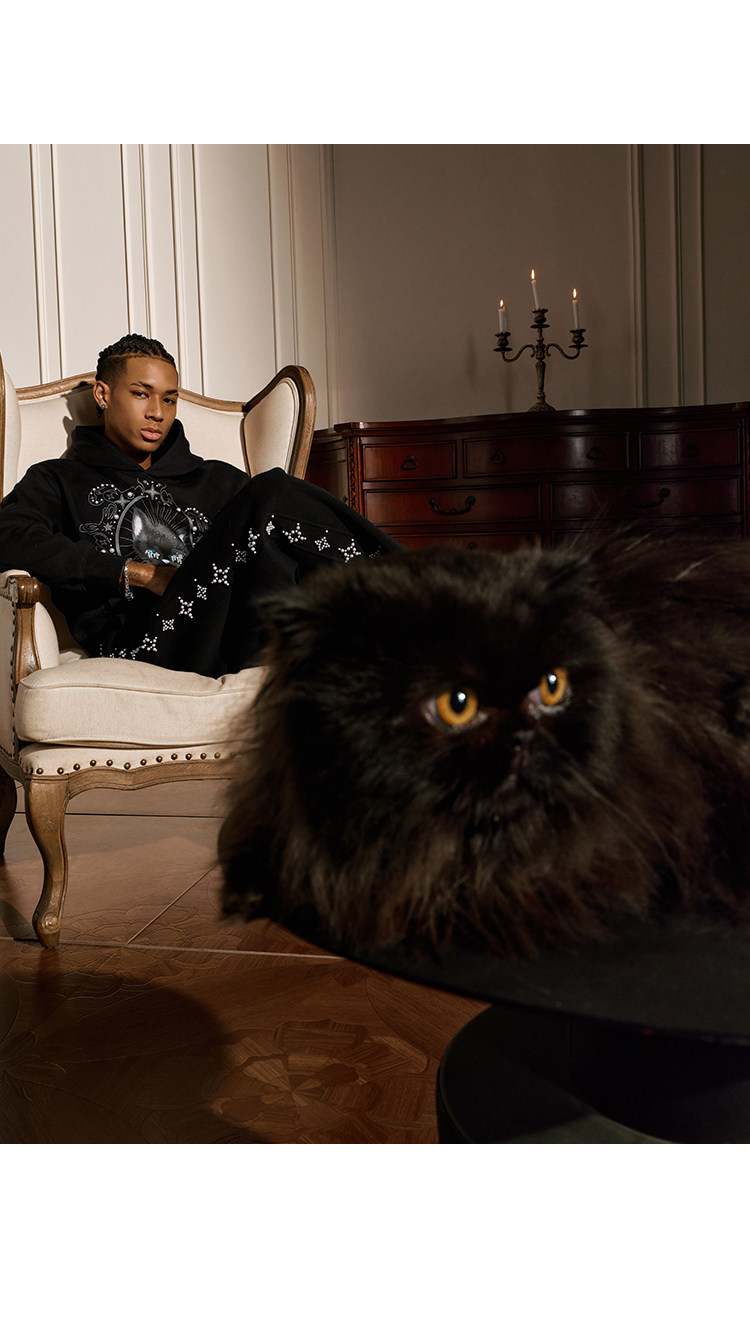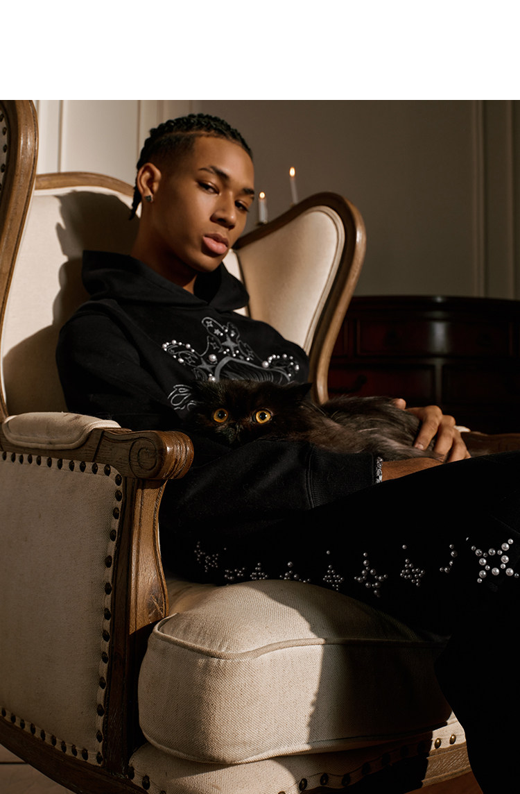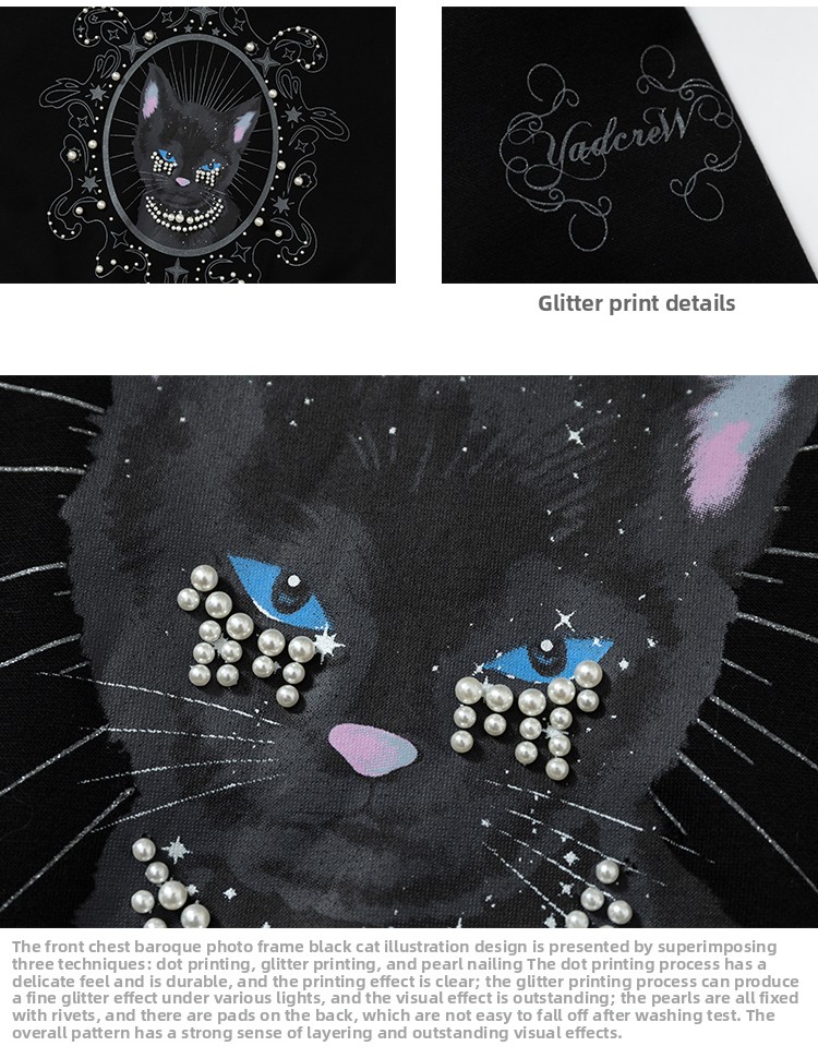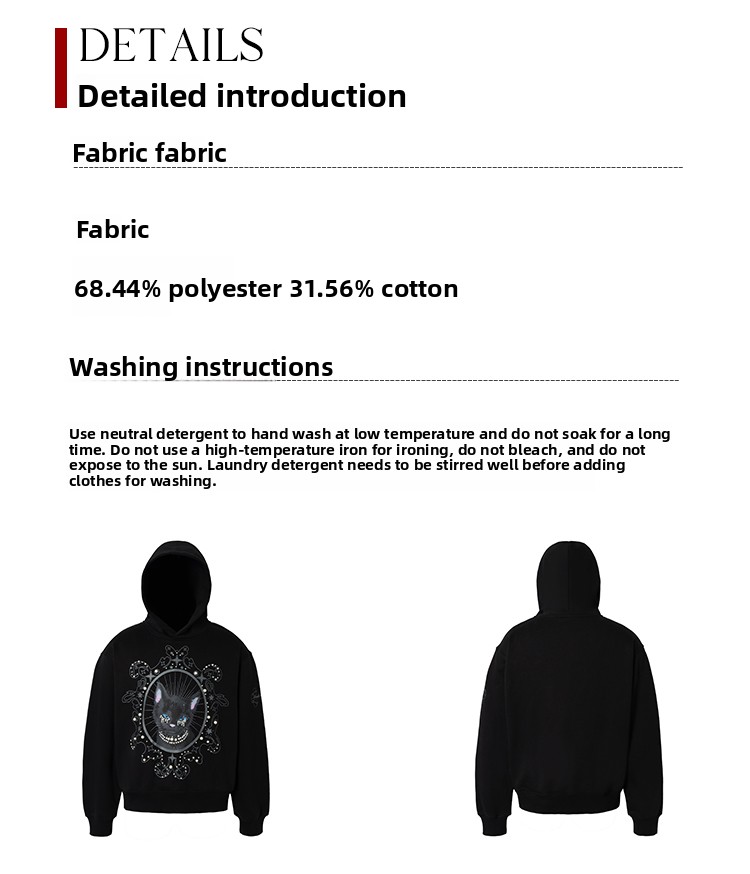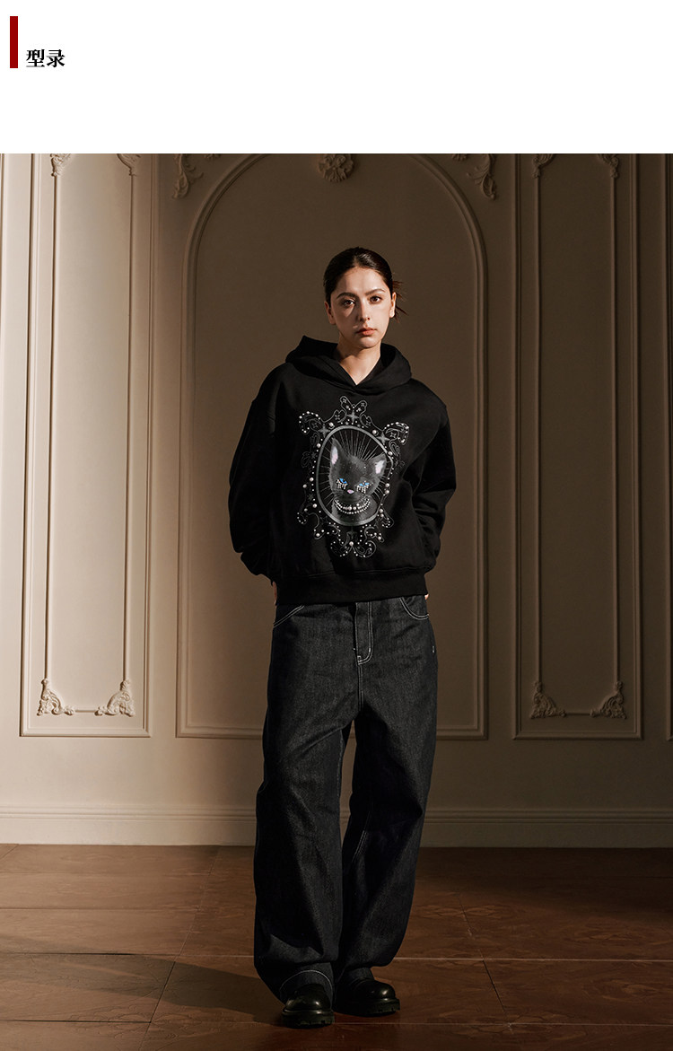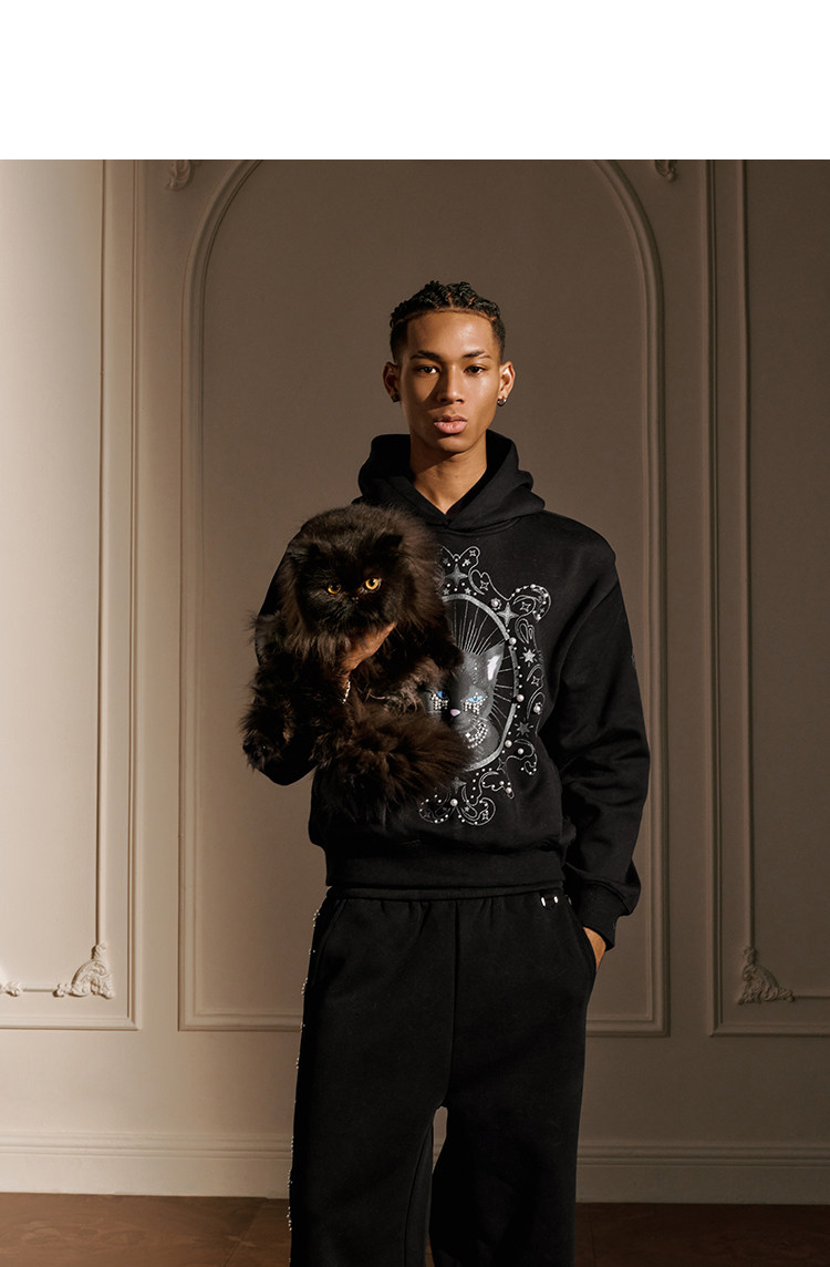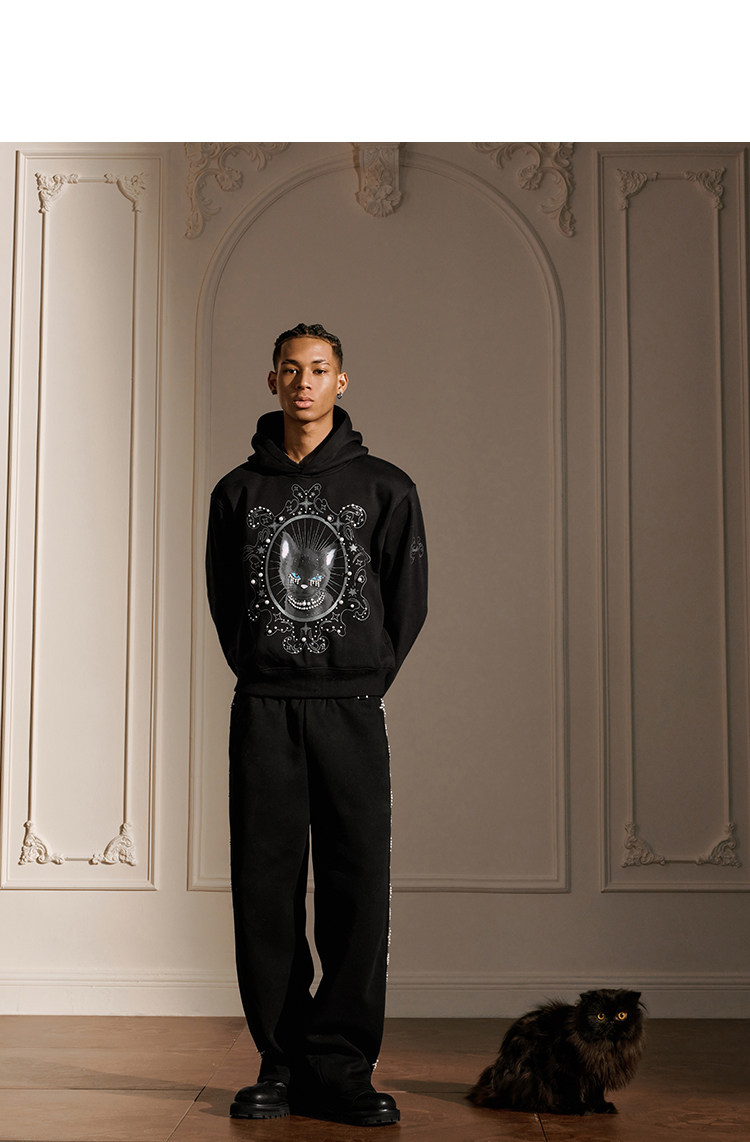 YADcrew Cat Print Hooded Sweater