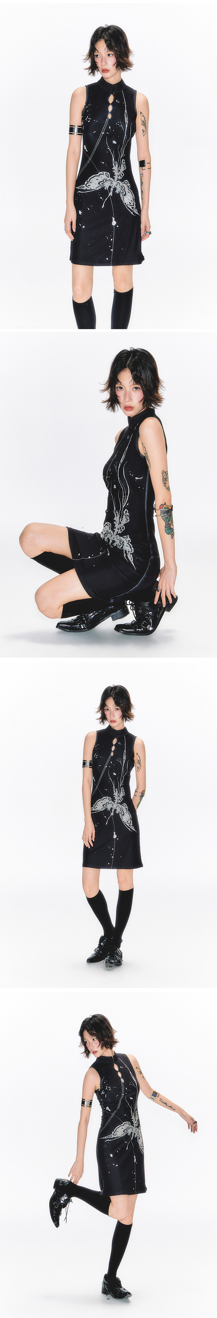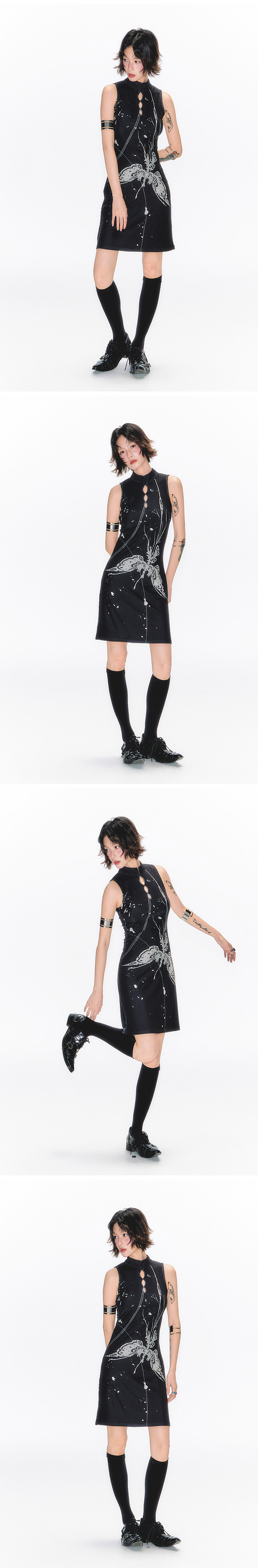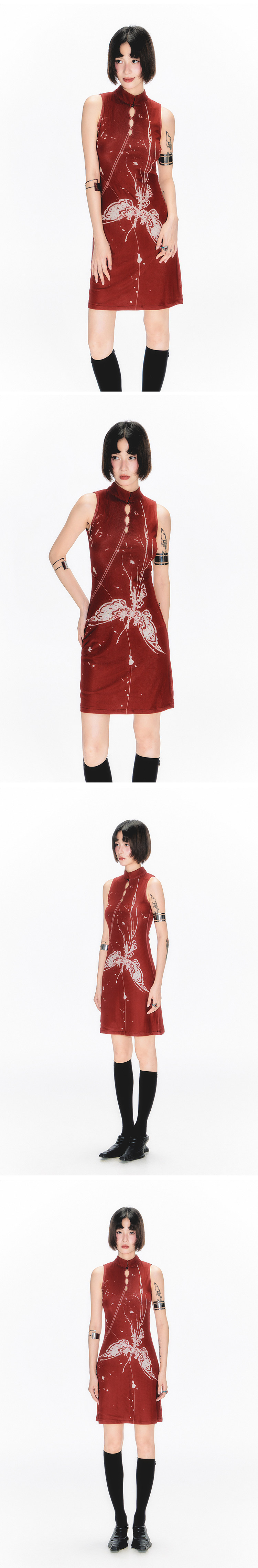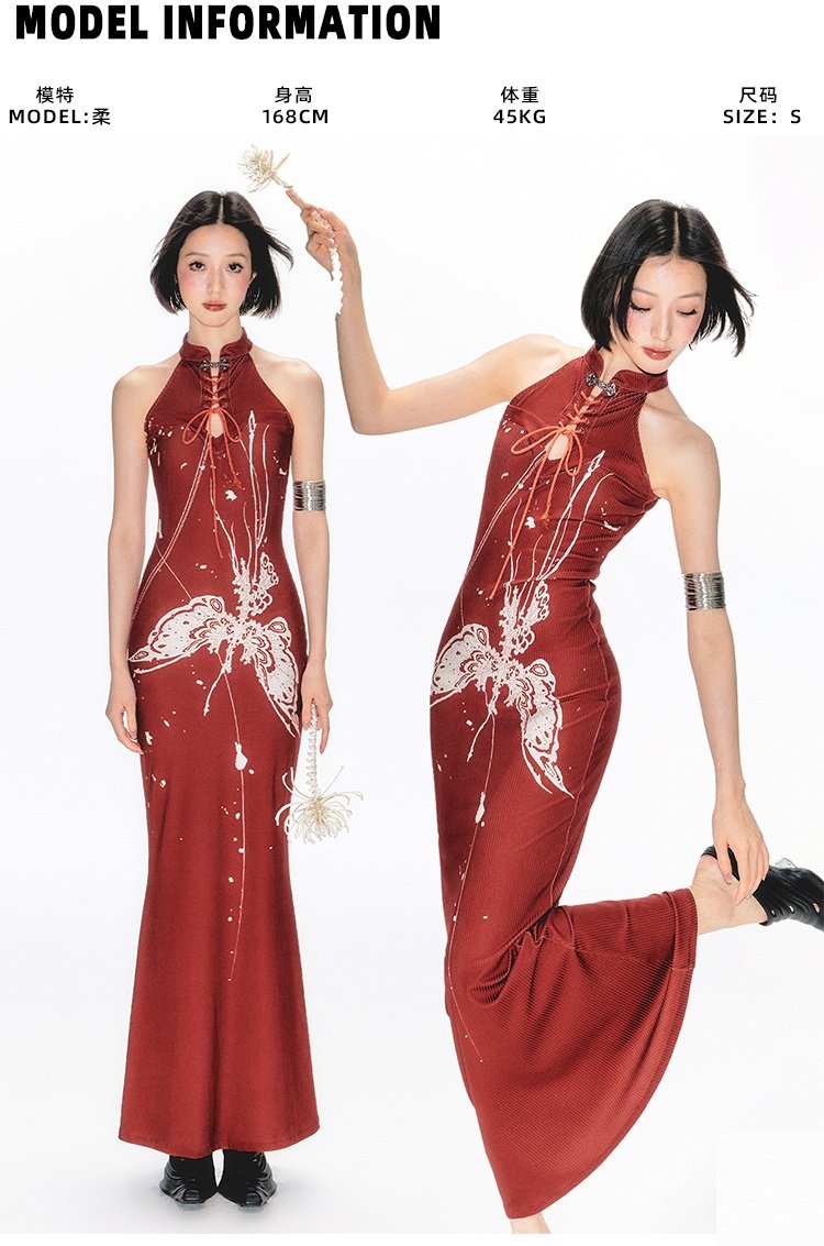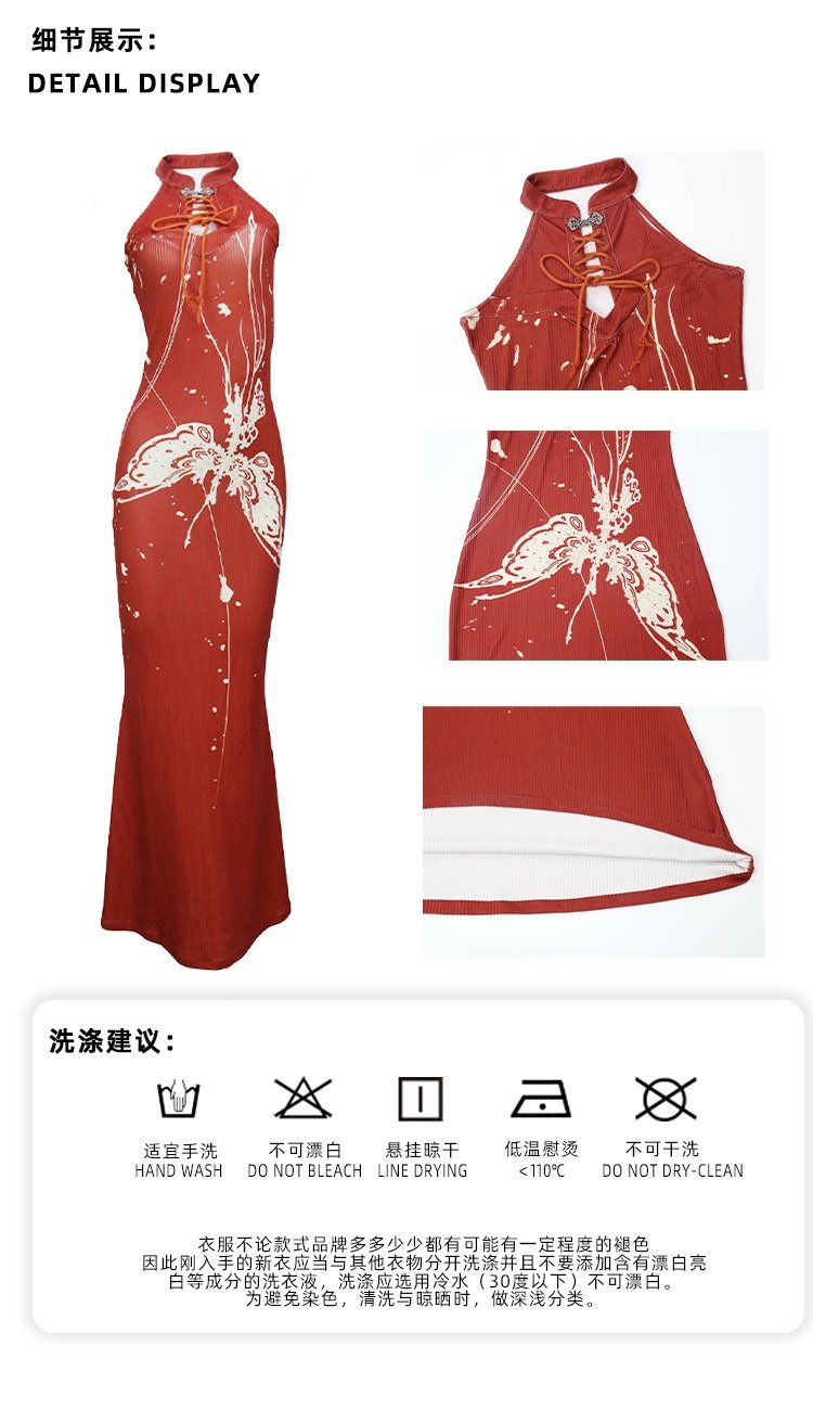YEDM Butterfly Snake Print Cheongsam Skirt Sleeveless Long Skirt