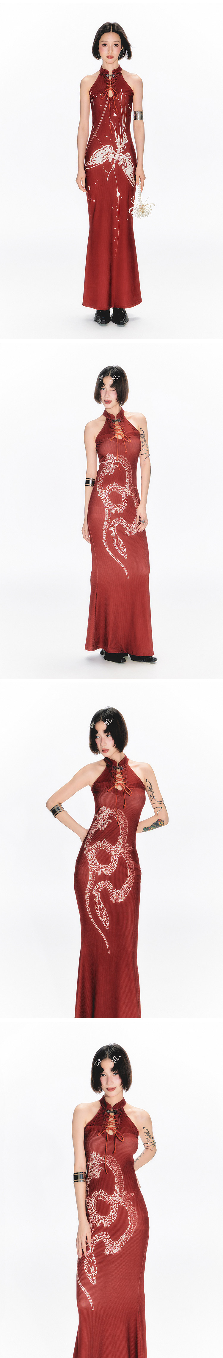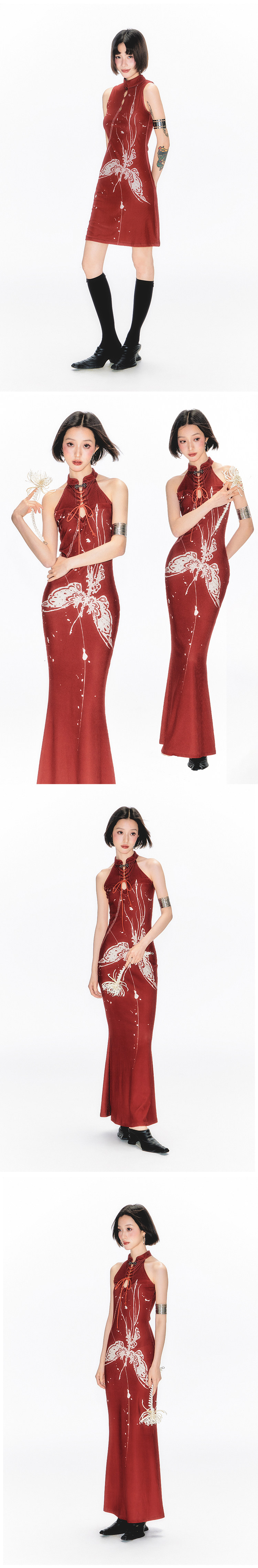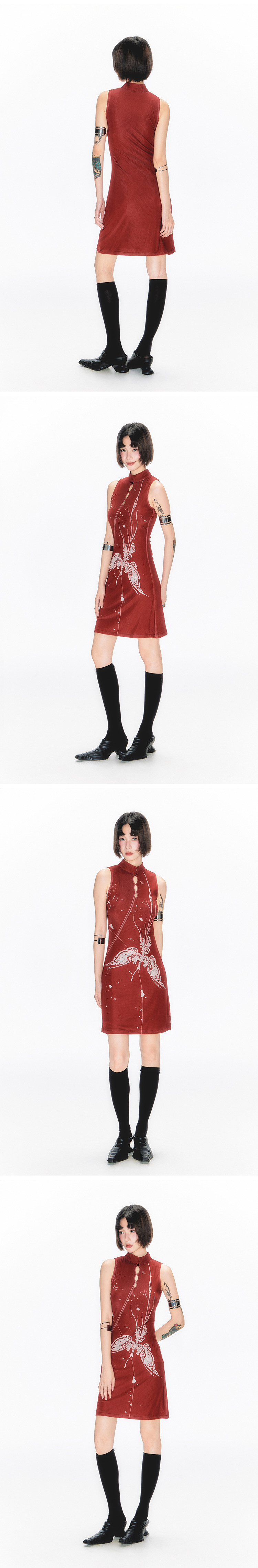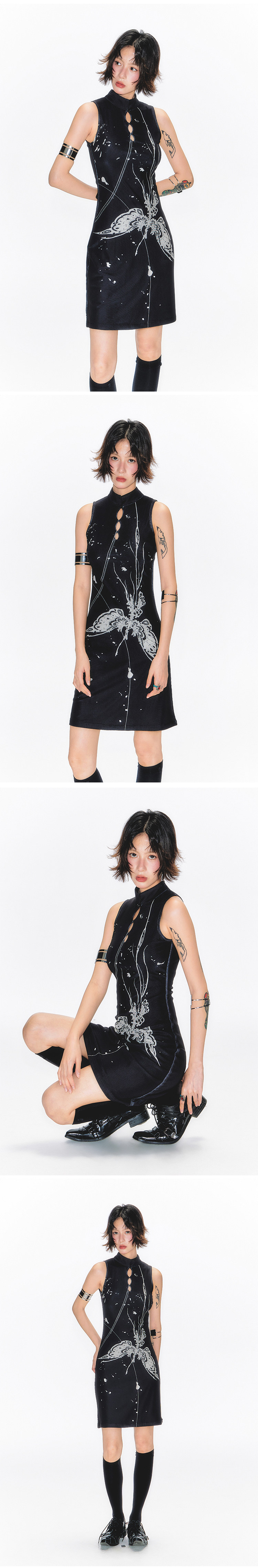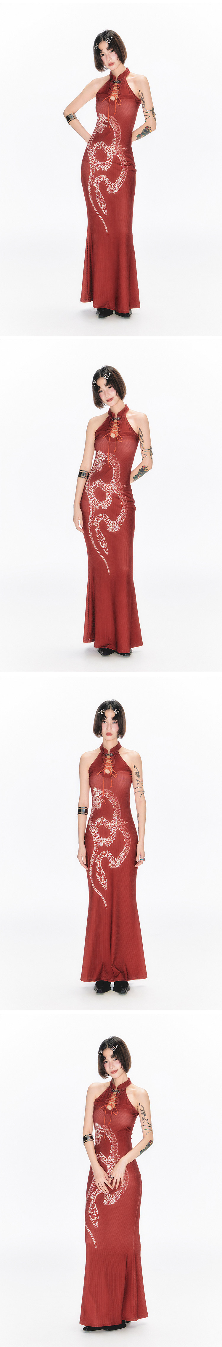 YEDM Butterfly Snake Print Cheongsam Skirt Sleeveless Long Skirt