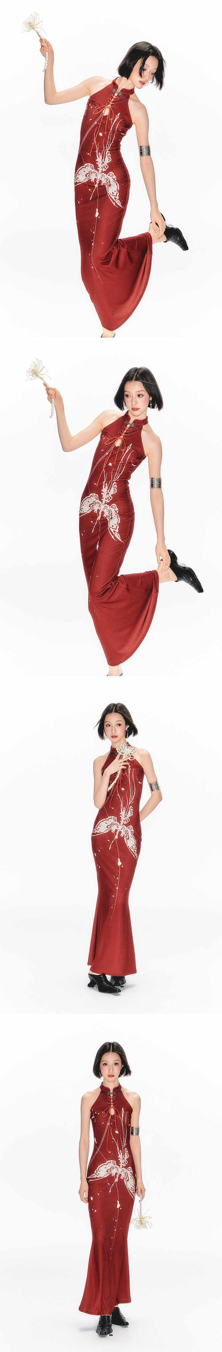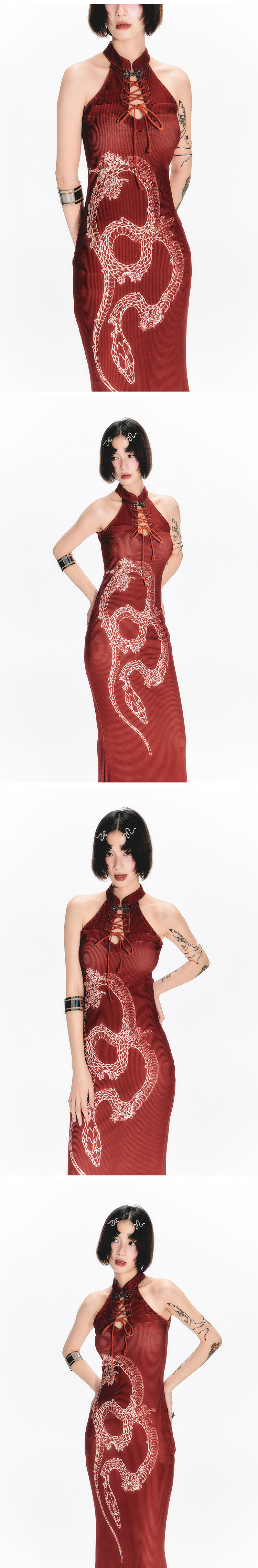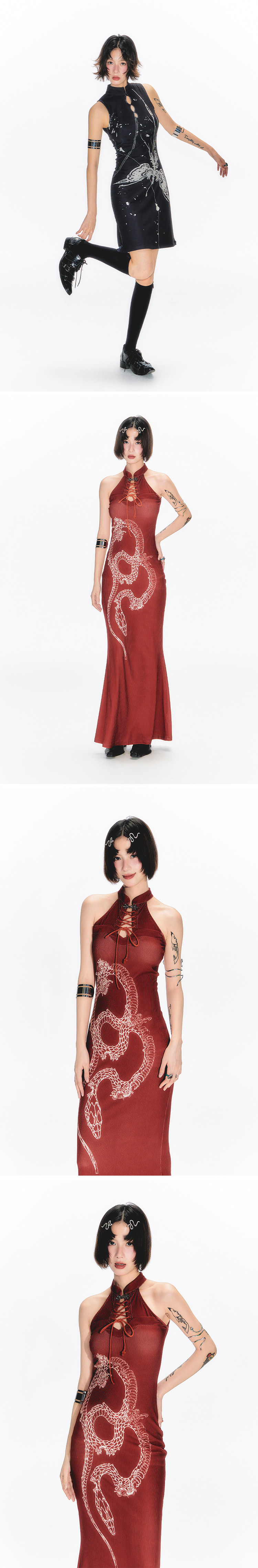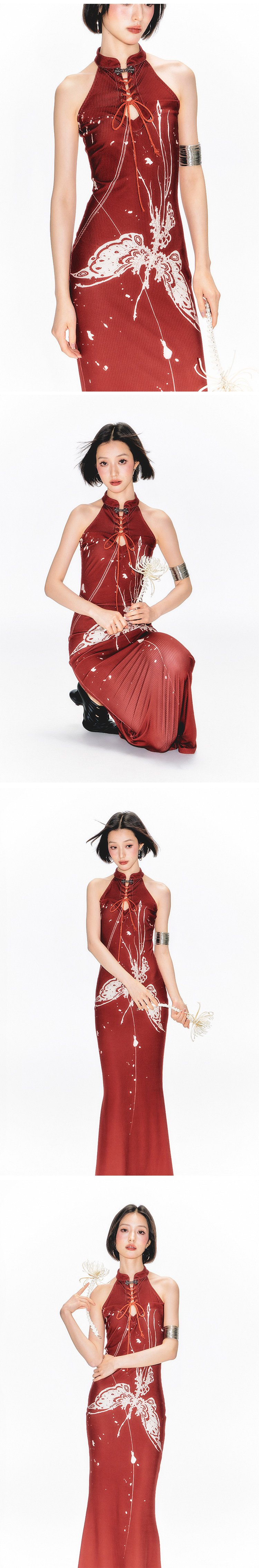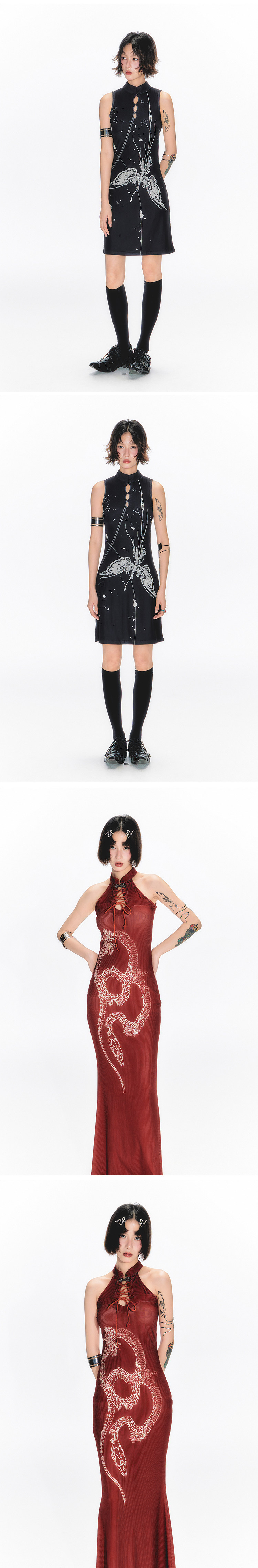 YEDM Butterfly Snake Print Cheongsam Skirt Sleeveless Long Skirt
