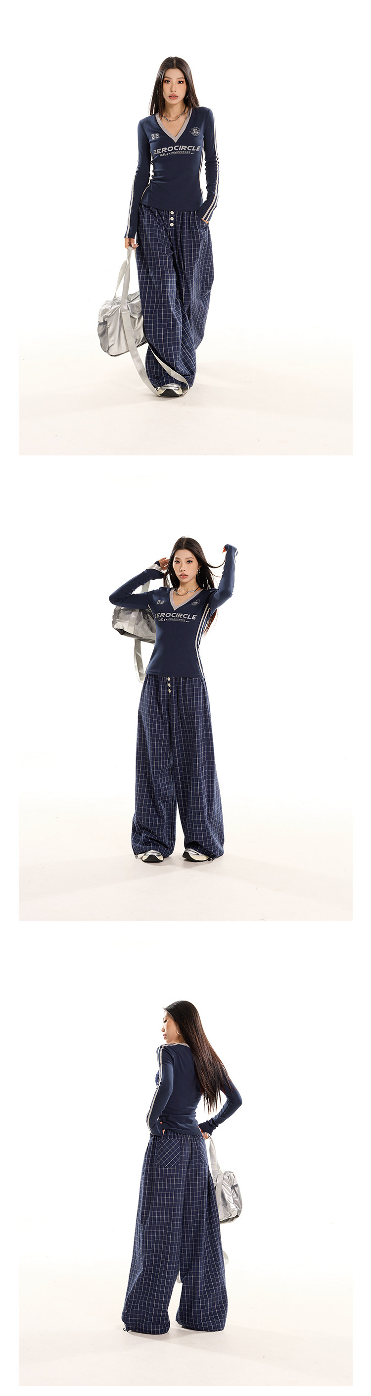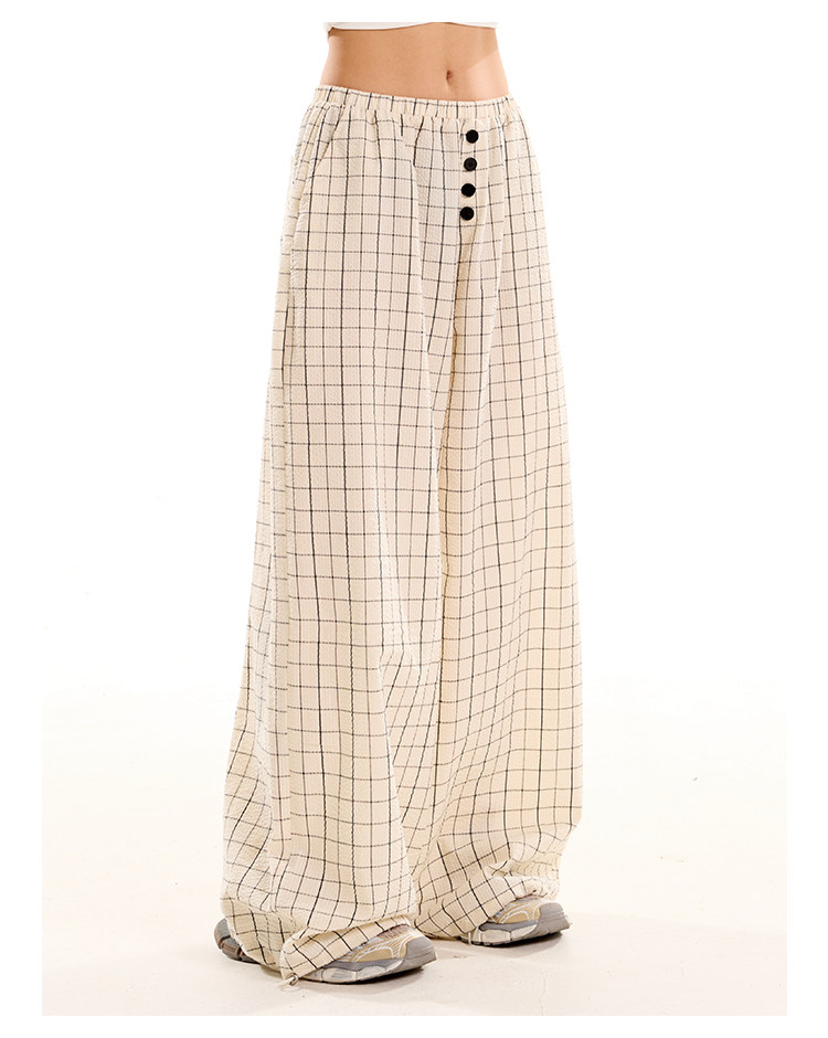 Zero Plaid Loose Lazy Wind Straight Casual Pants