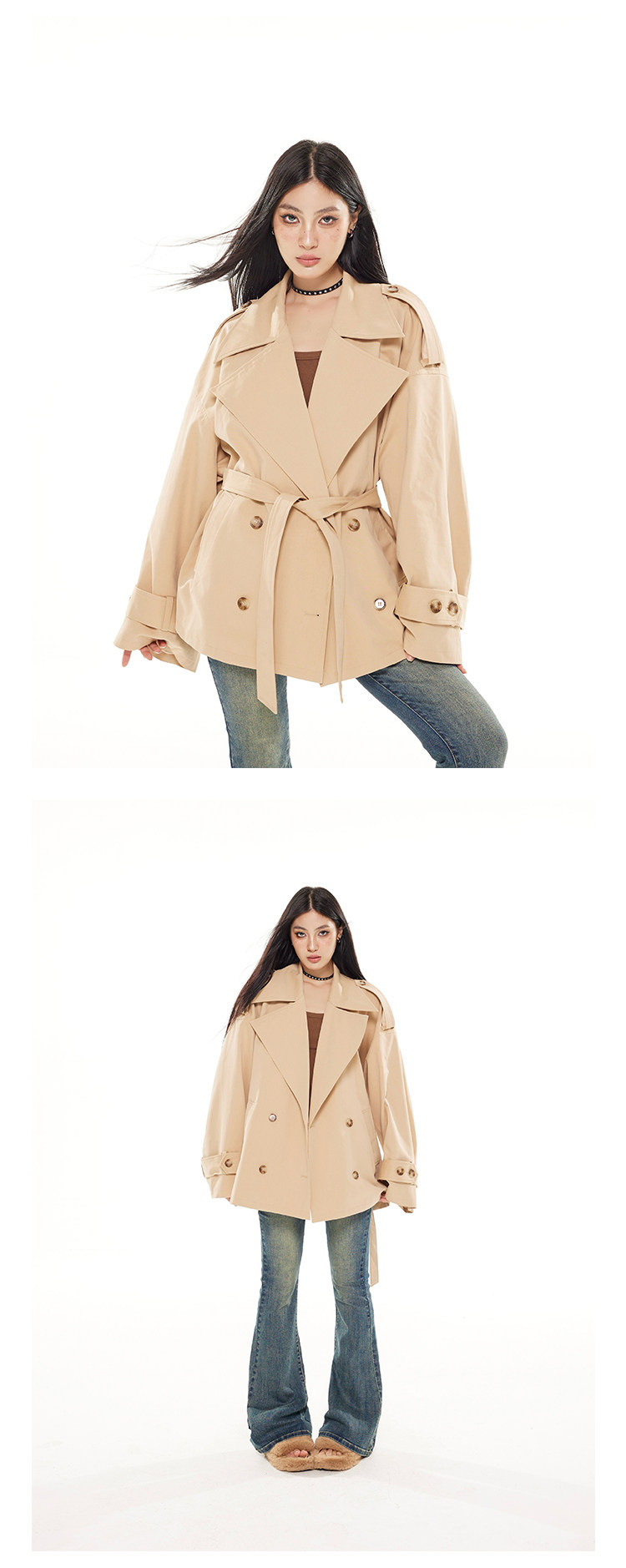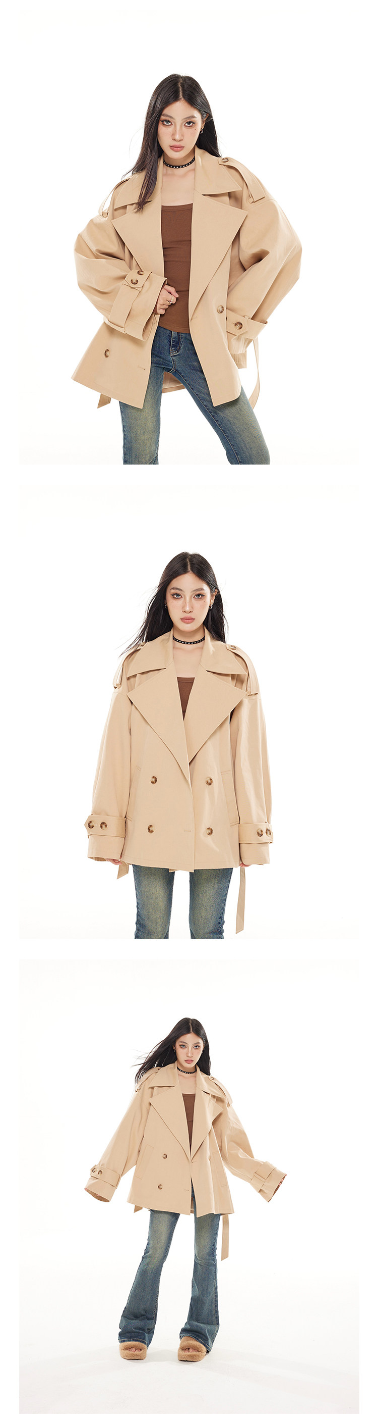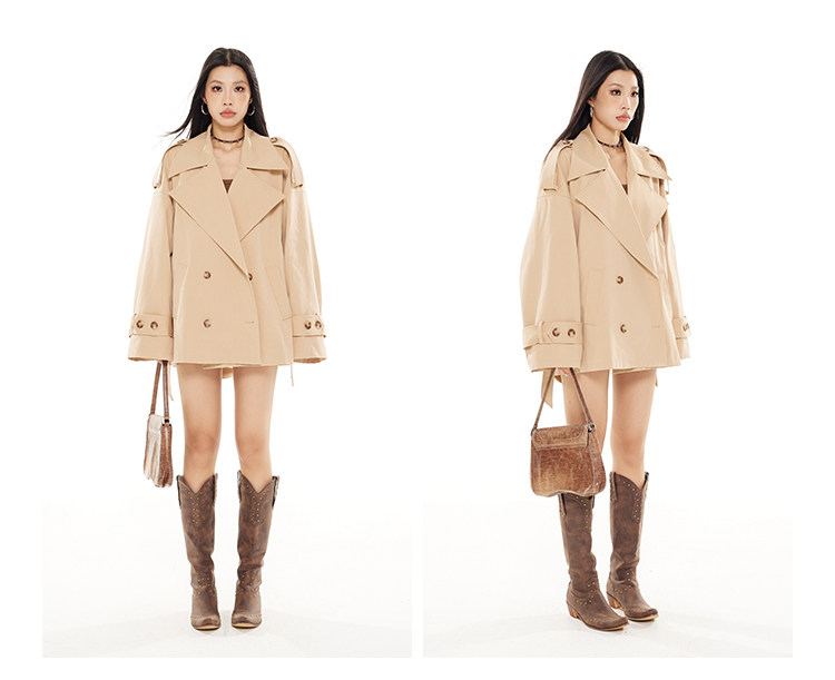 Zero Short Double-breasted Loose British Temperament Trench Coat