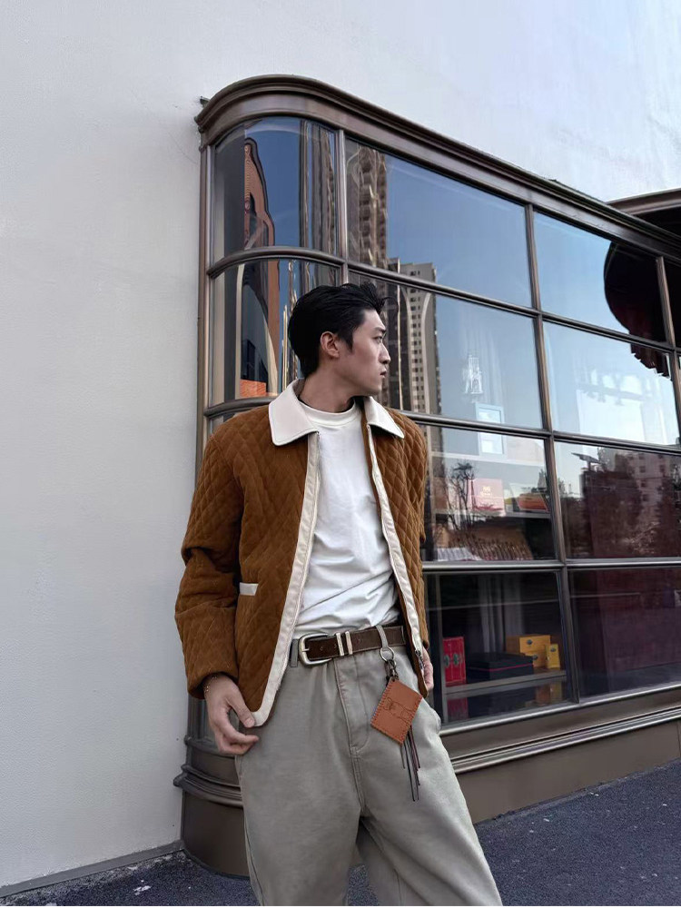 ZOZOFOREST Suede Hand-stitched Leather Jacket