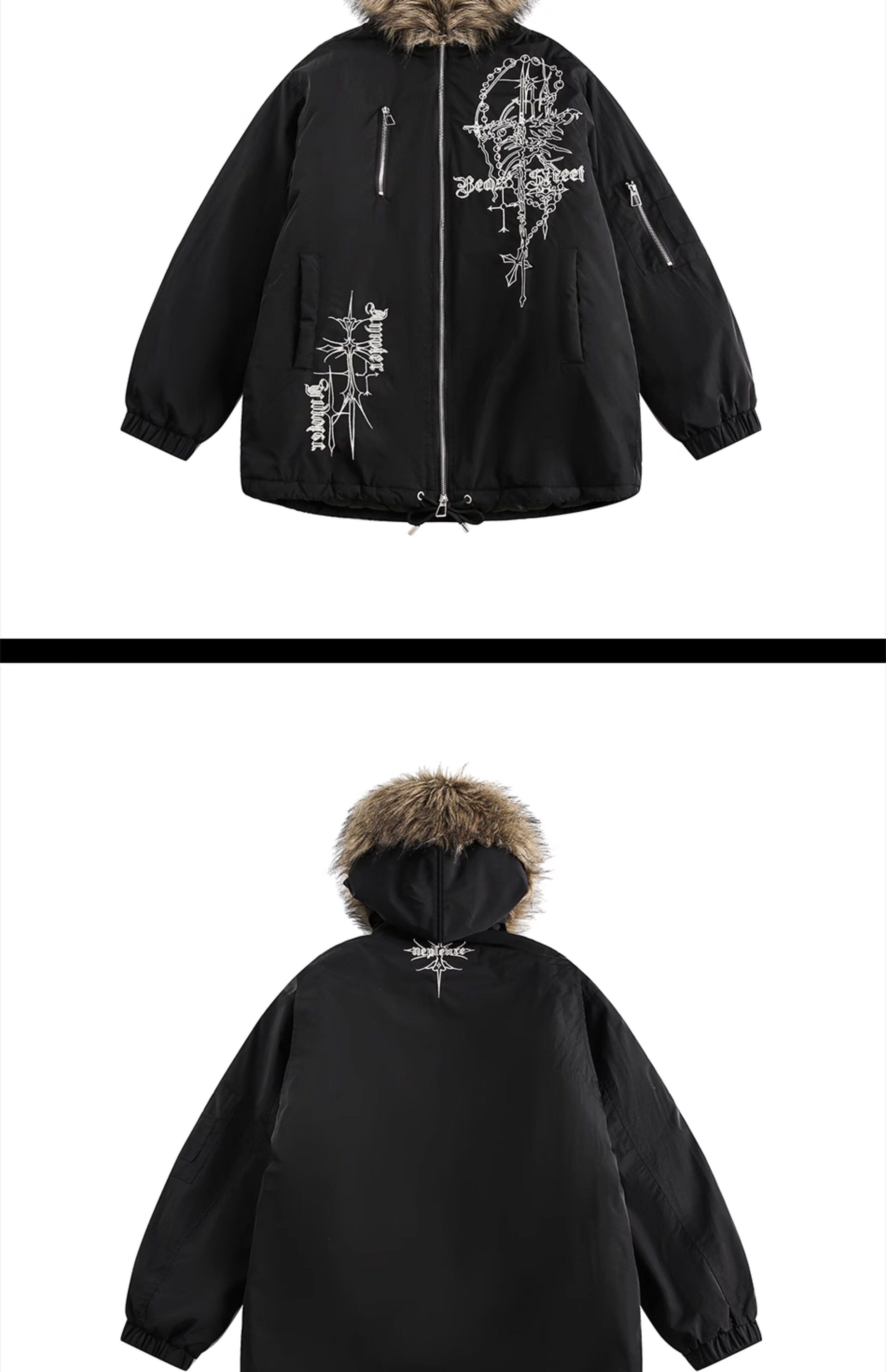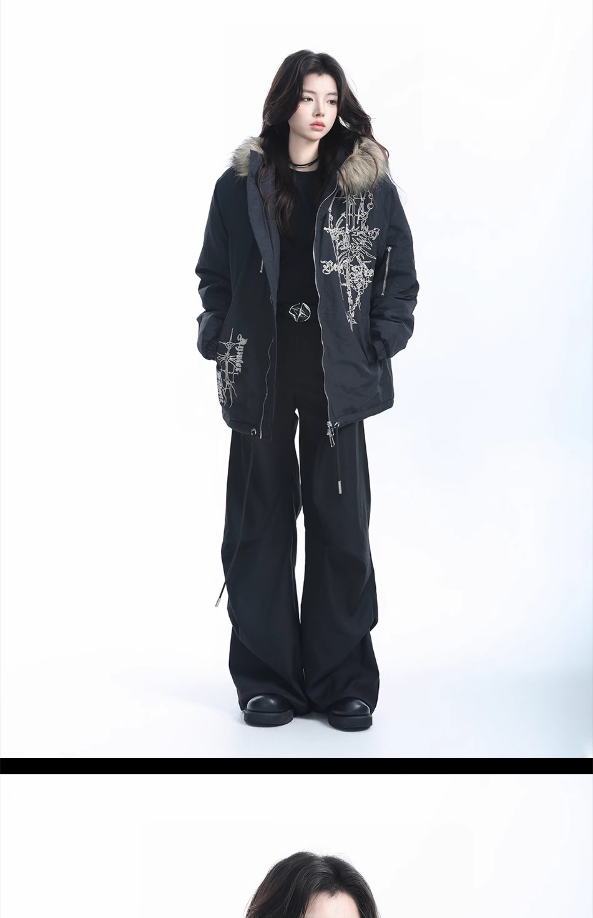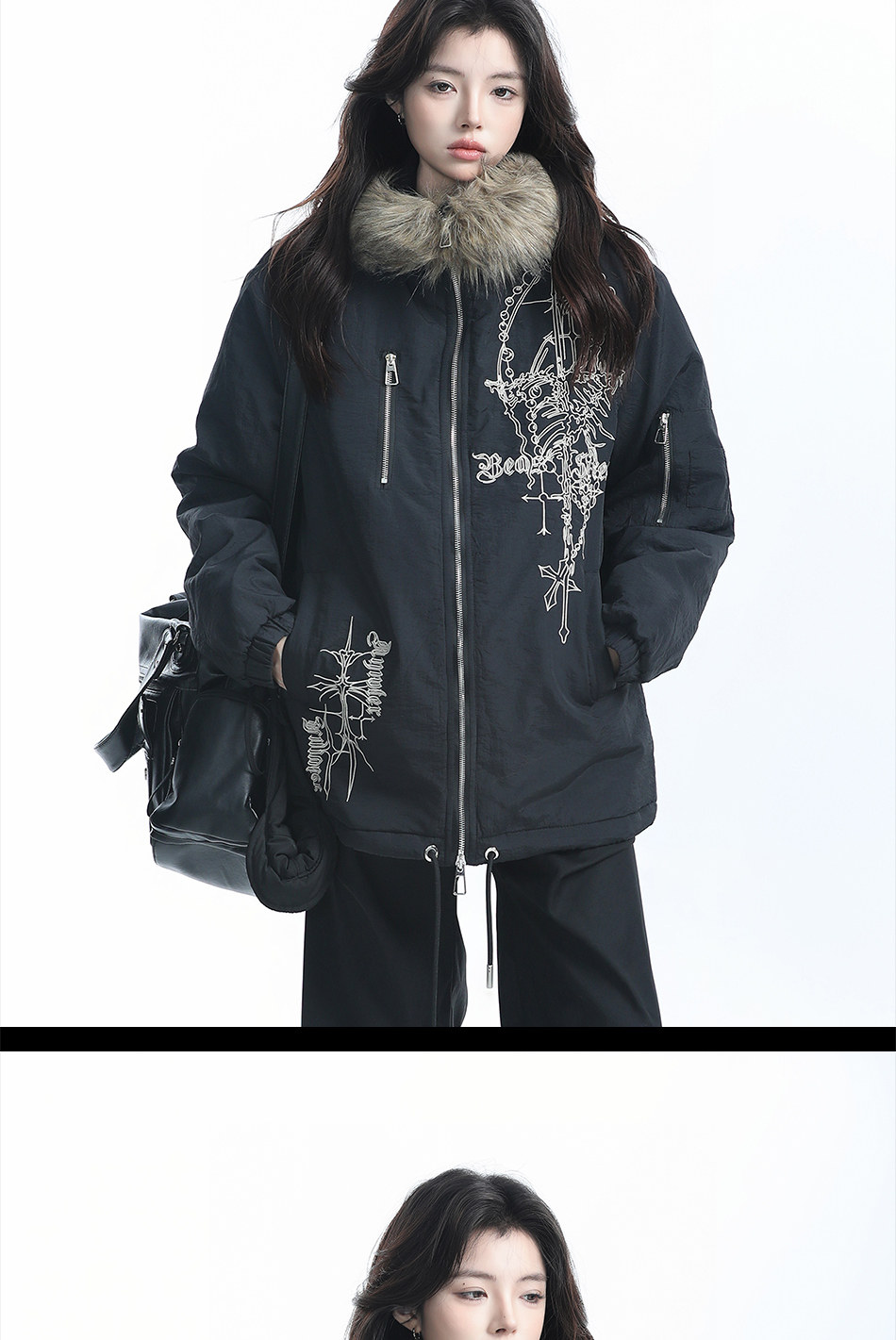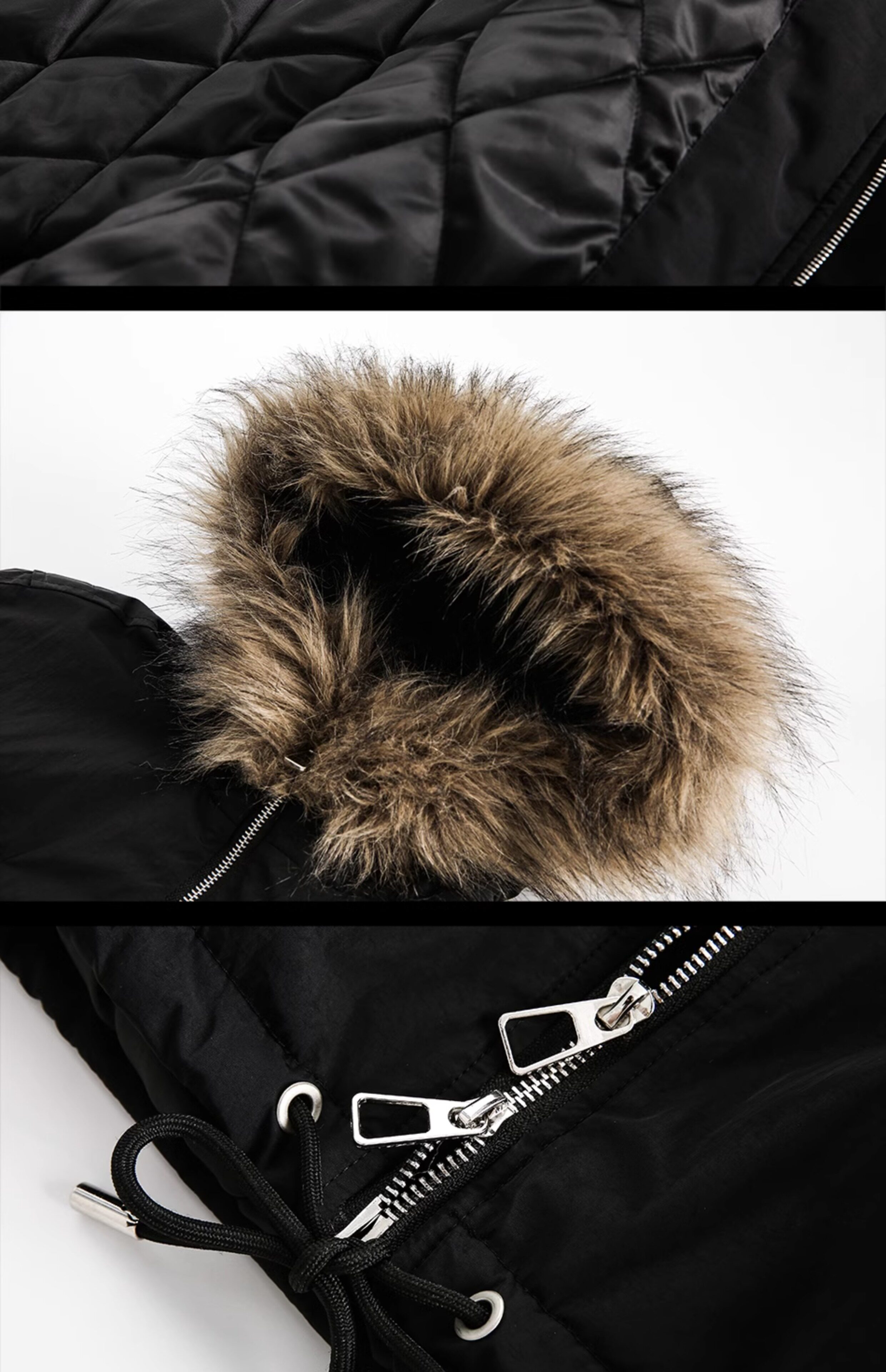 Zuocisankon Vintage Fur Collar Hooded Cotton Dress