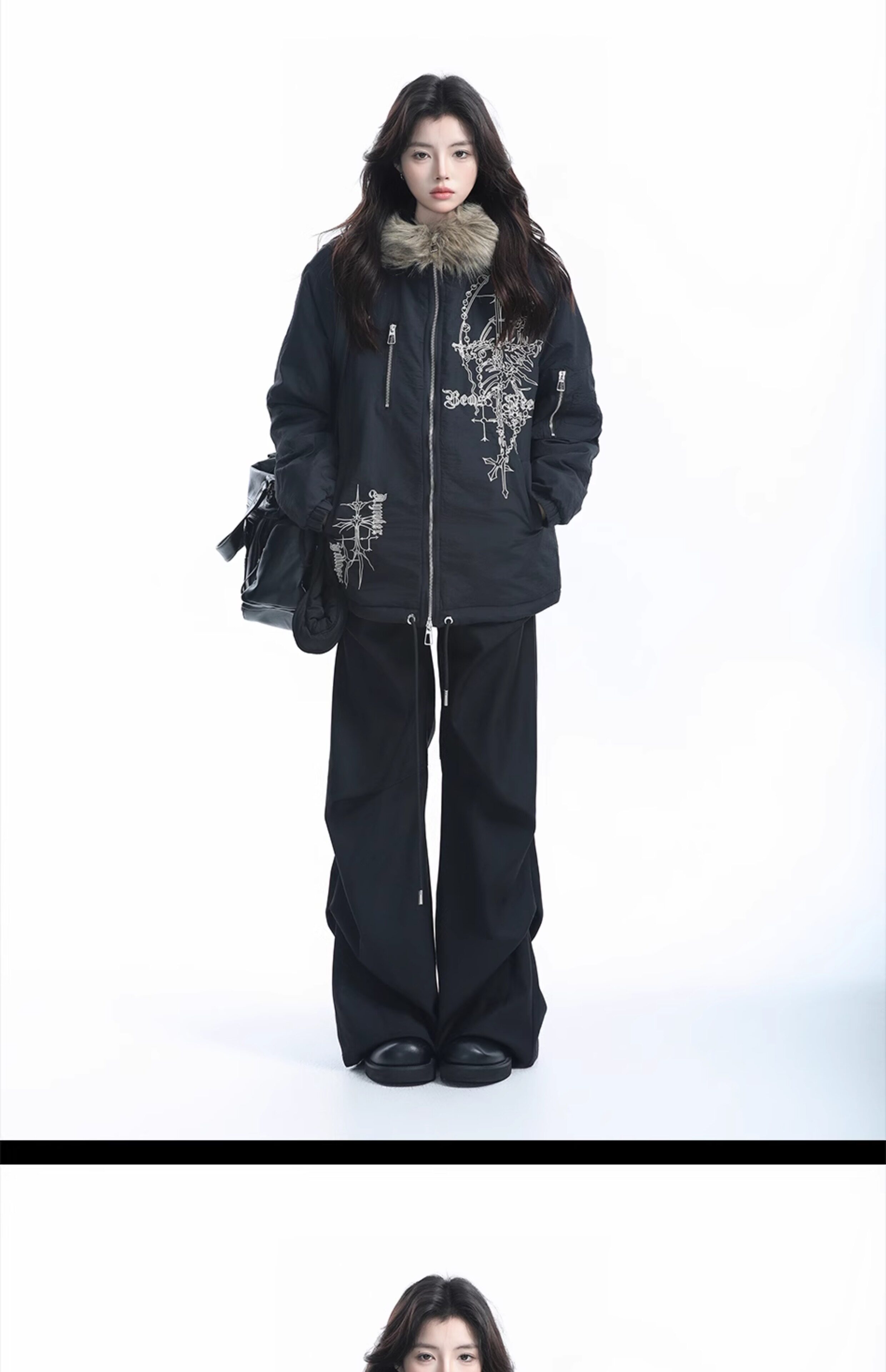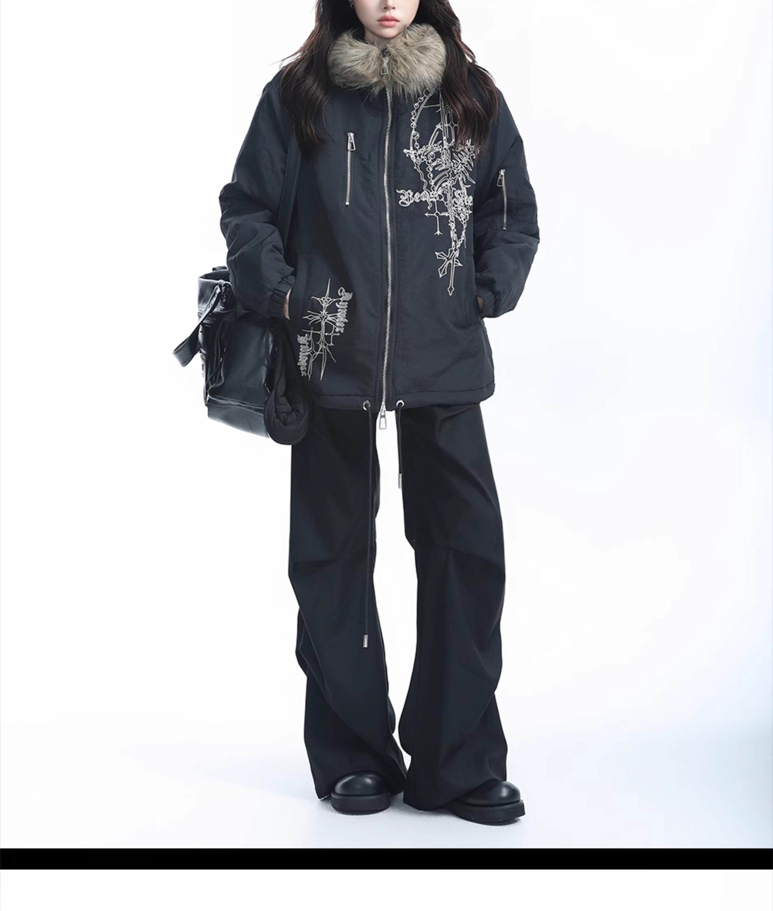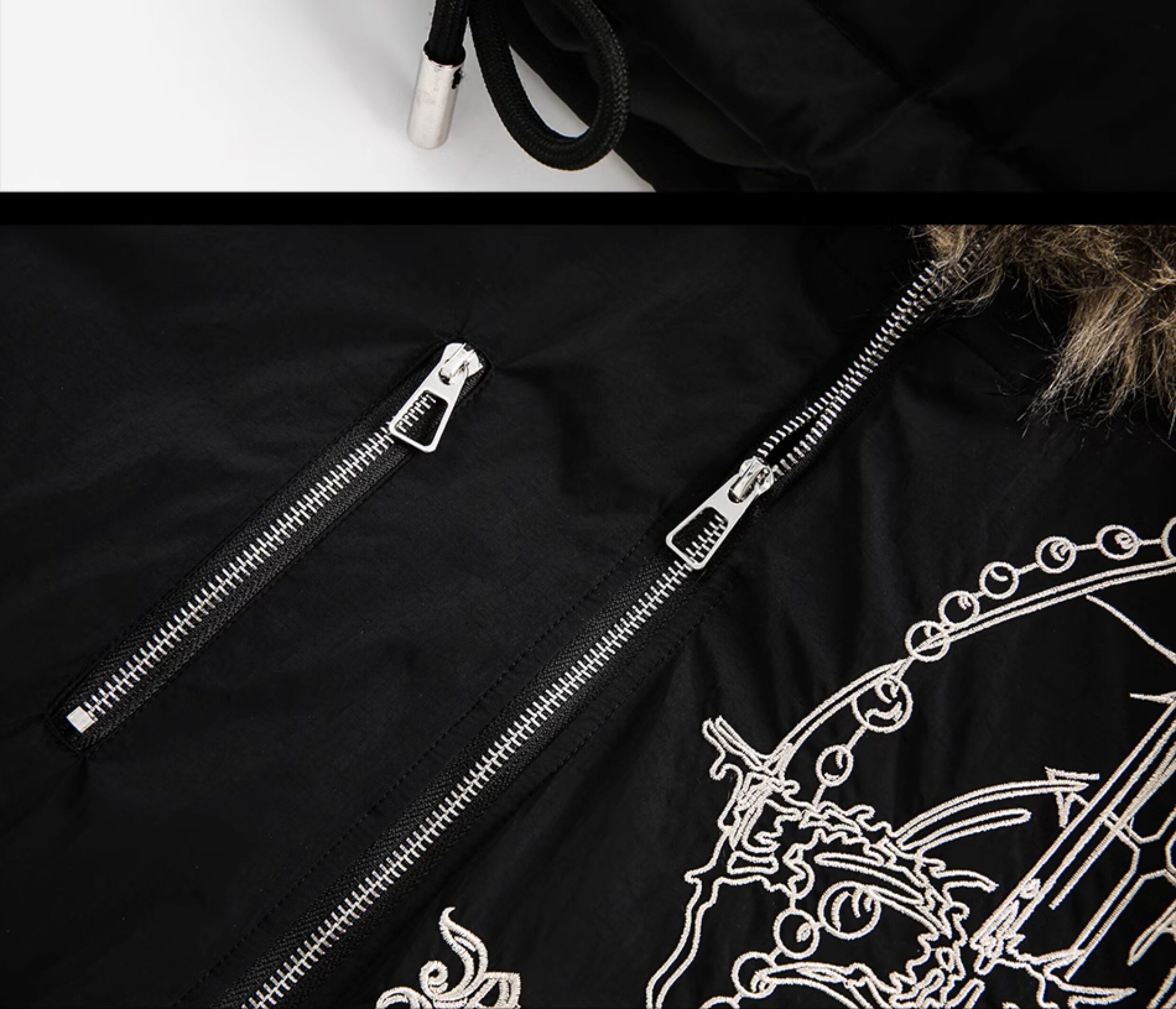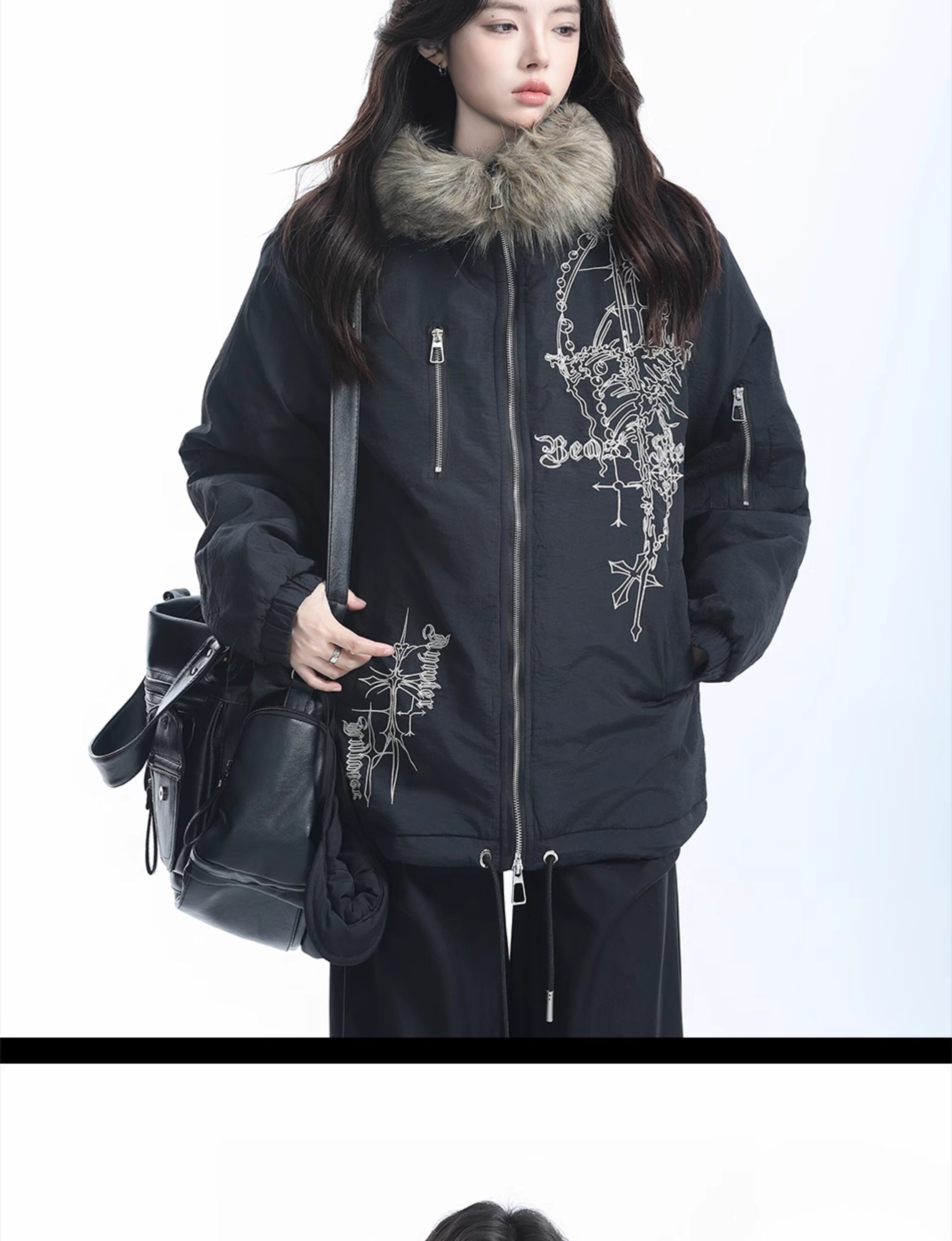 Zuocisankon Vintage Fur Collar Hooded Cotton Dress
